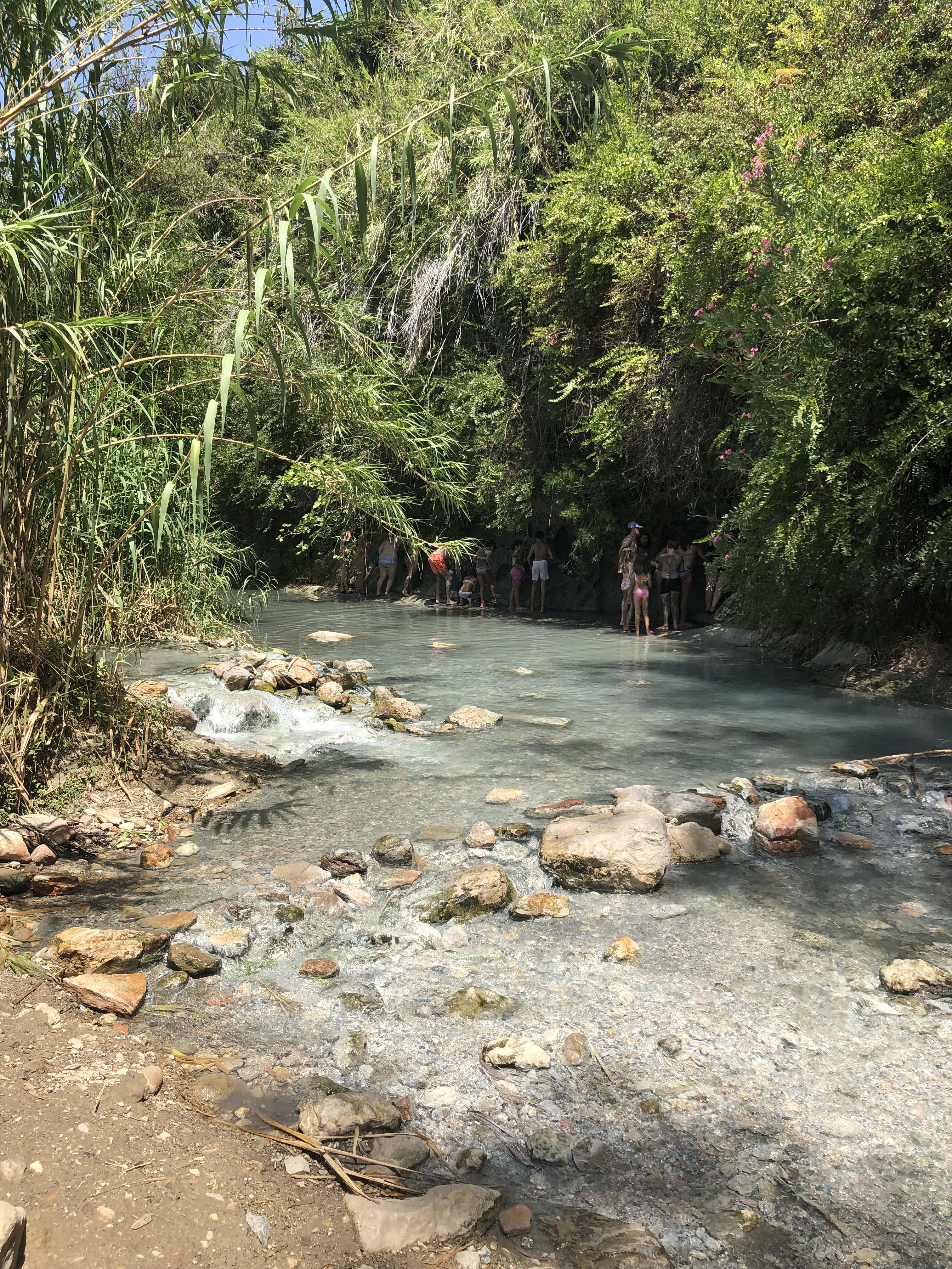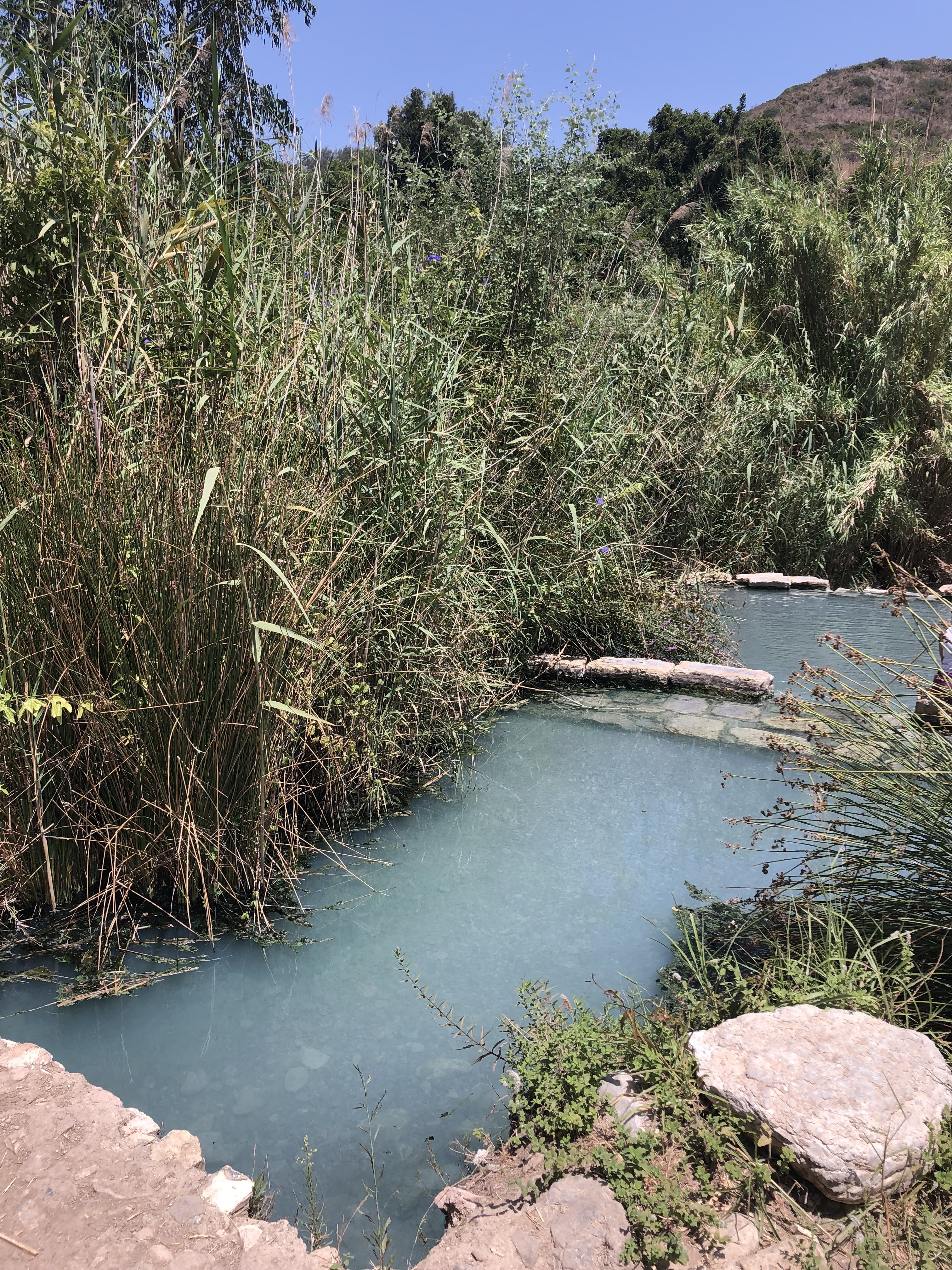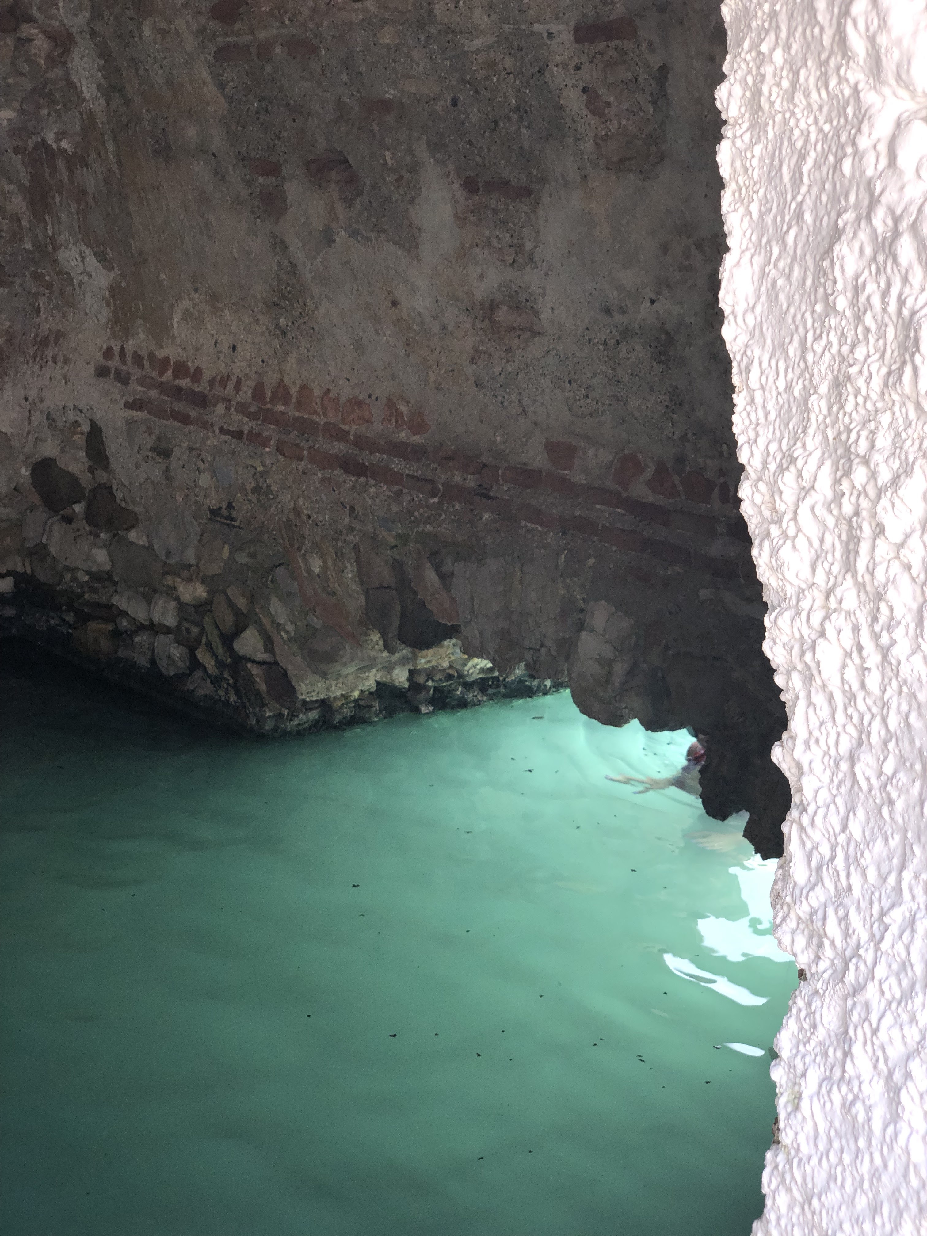 C’est la découverte de cette région, le petit plus qui rend un voyage inoubliable …. c’est simple, naturel et ludique et surtout c’est pas très connus, nous devions être les seuls touristes . Ce sont des bains romains sulfureux, vous le sentirez en arrivant, à ciel ouvert et piscines naturelles, après la chaleur de Casares et une petit balade, nous arrivons dans un endroit idyllique. Nous posons nos affaires et observons le rituel…. soit aller contre la paroi de roche et s’enduire d’argile sur tout le corps…. lorsque l’argile est sec vous pouvez vous baignez dans les différentes piscines ou le ruisseau…. cet argile et cette eau remplie de souffre aurait des vertus soignantes sur les maladies de la peau.