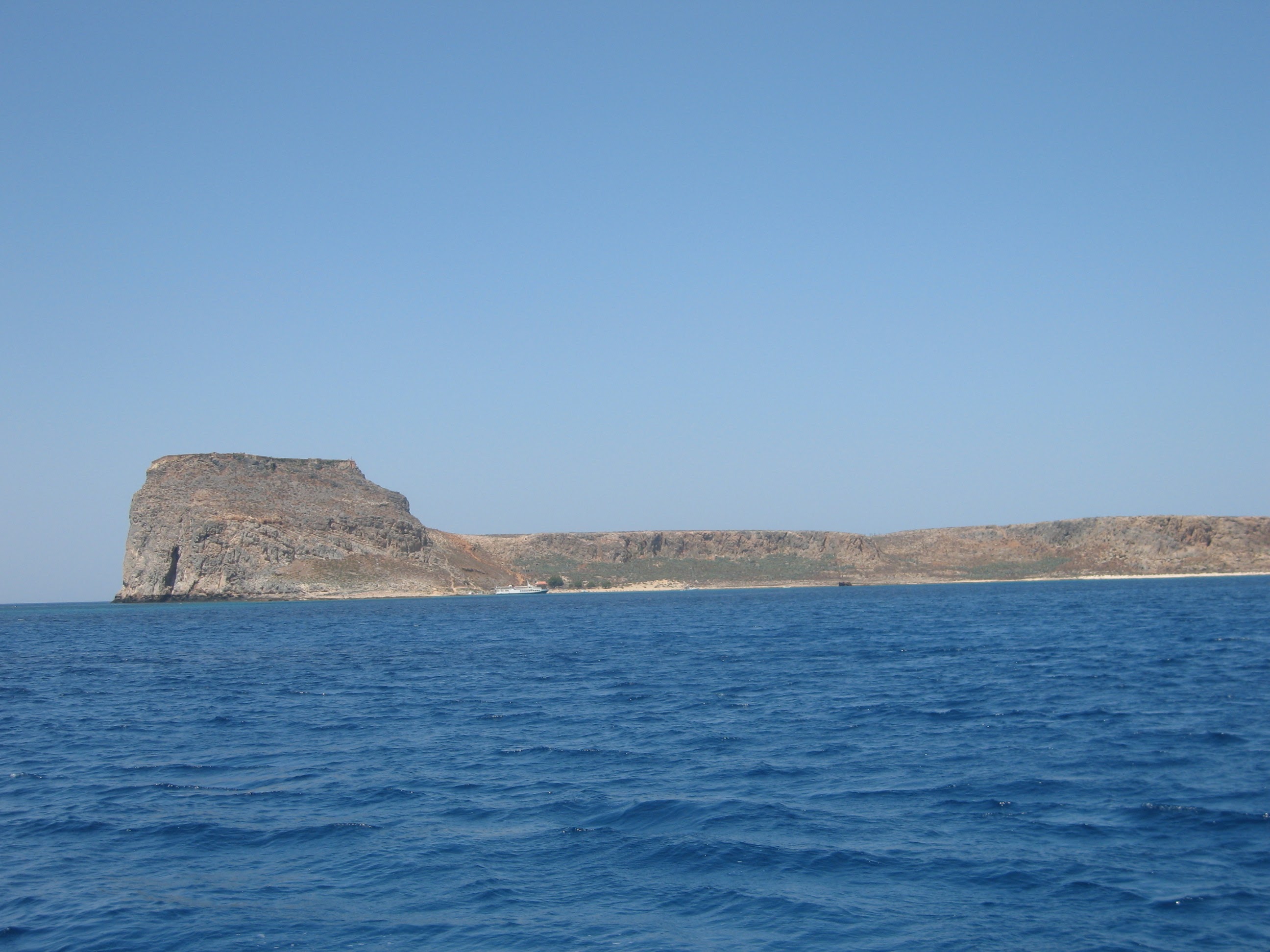 En fin d’après-midi on repart et fait un stop sur l’île de **Gramvousa**, comme les gros bateaux sont déjà loin, nous y étions seuls…. certains sont restés à la plage et d’autres sont montés jusqu’à la forteresse du XVI ème siècle, d’où la vue sur Balos est imprenable.