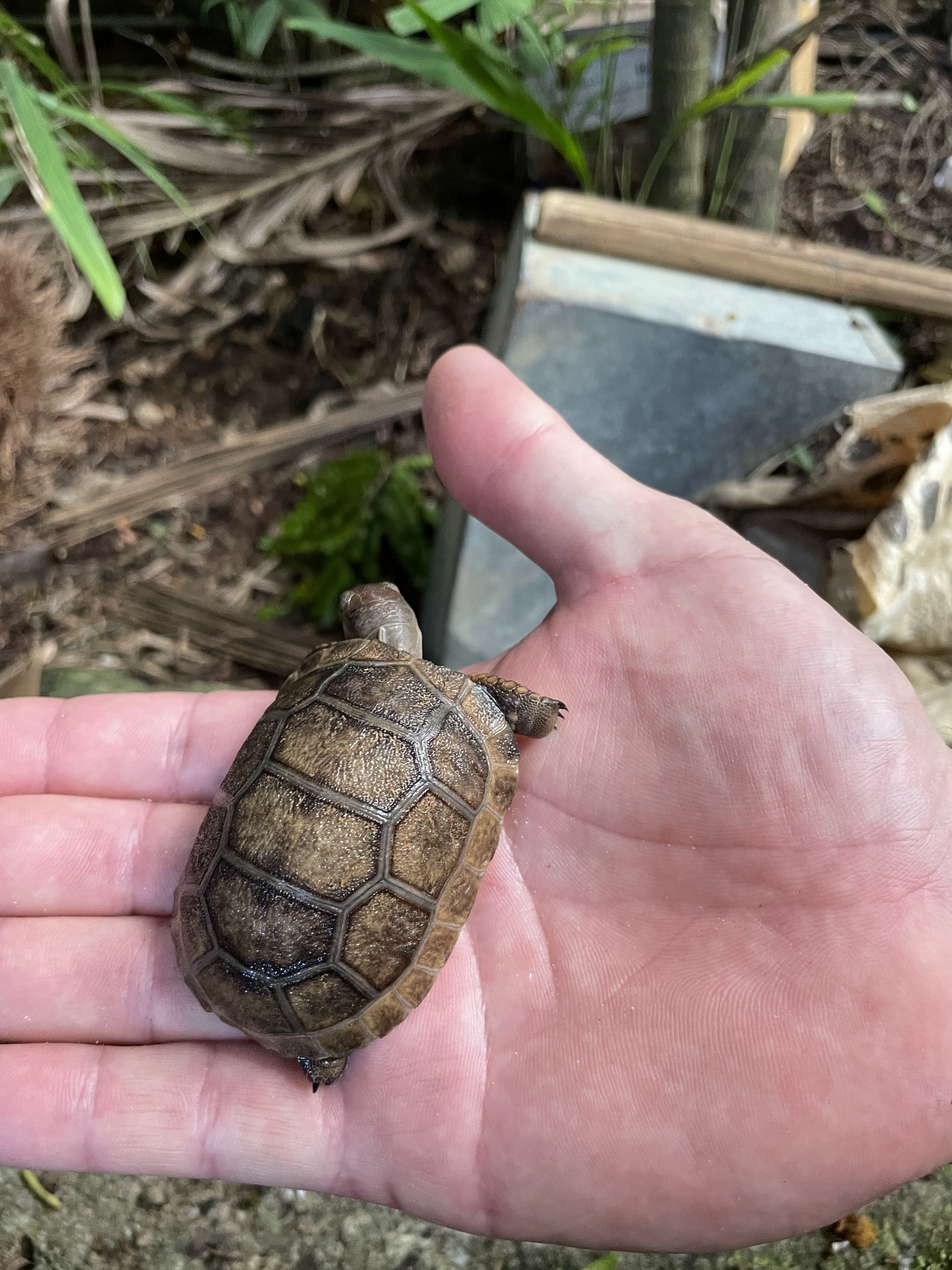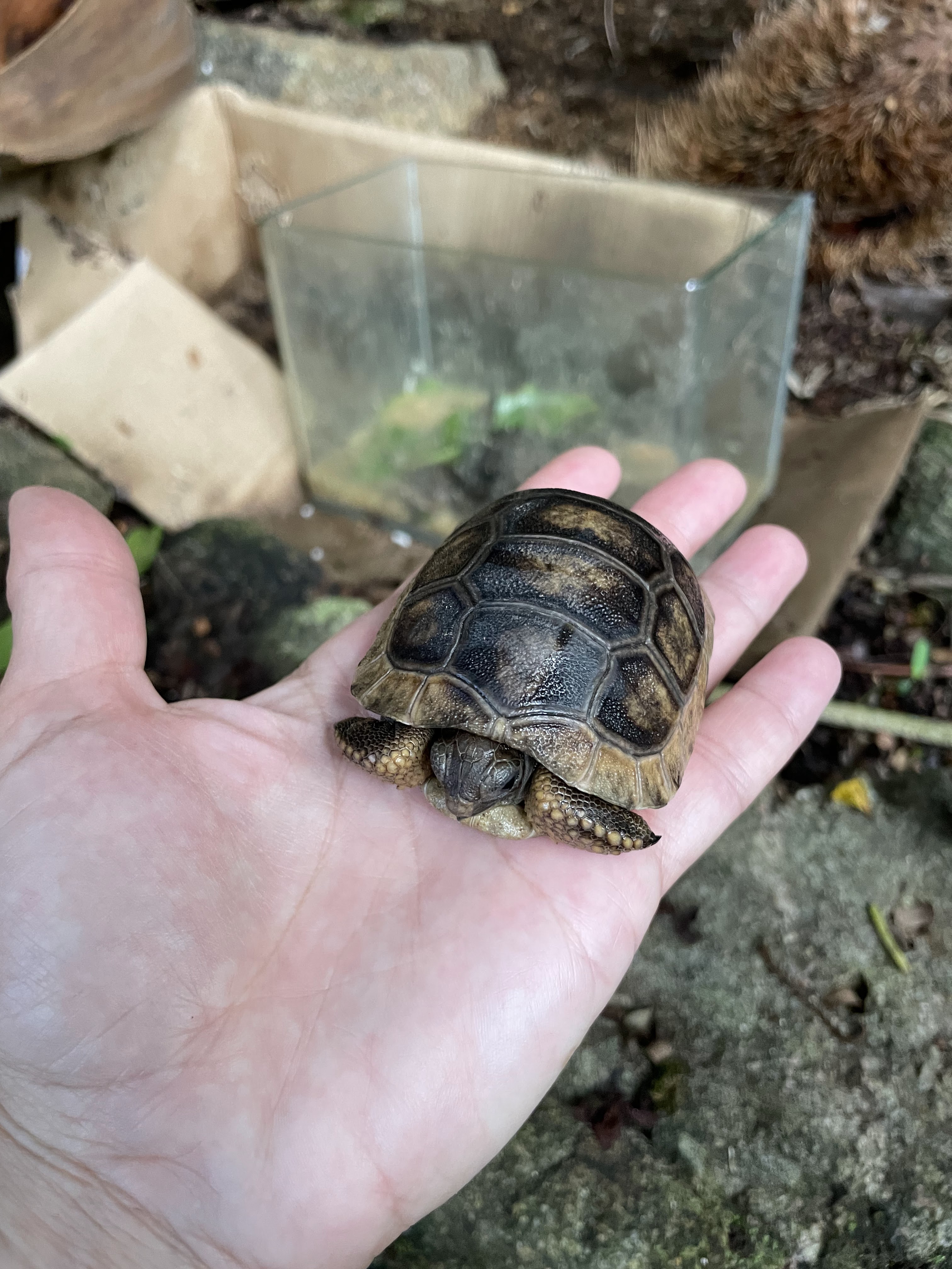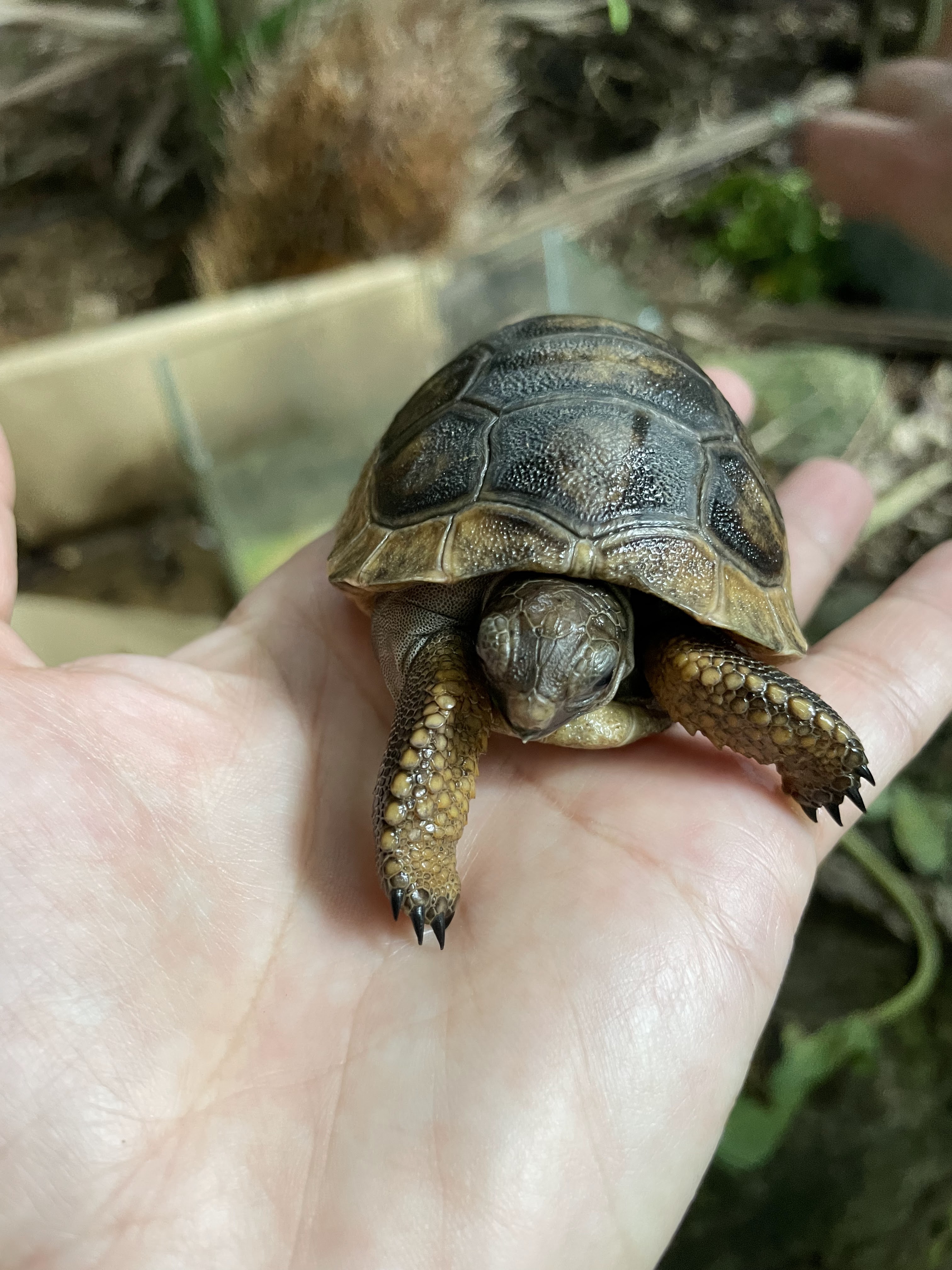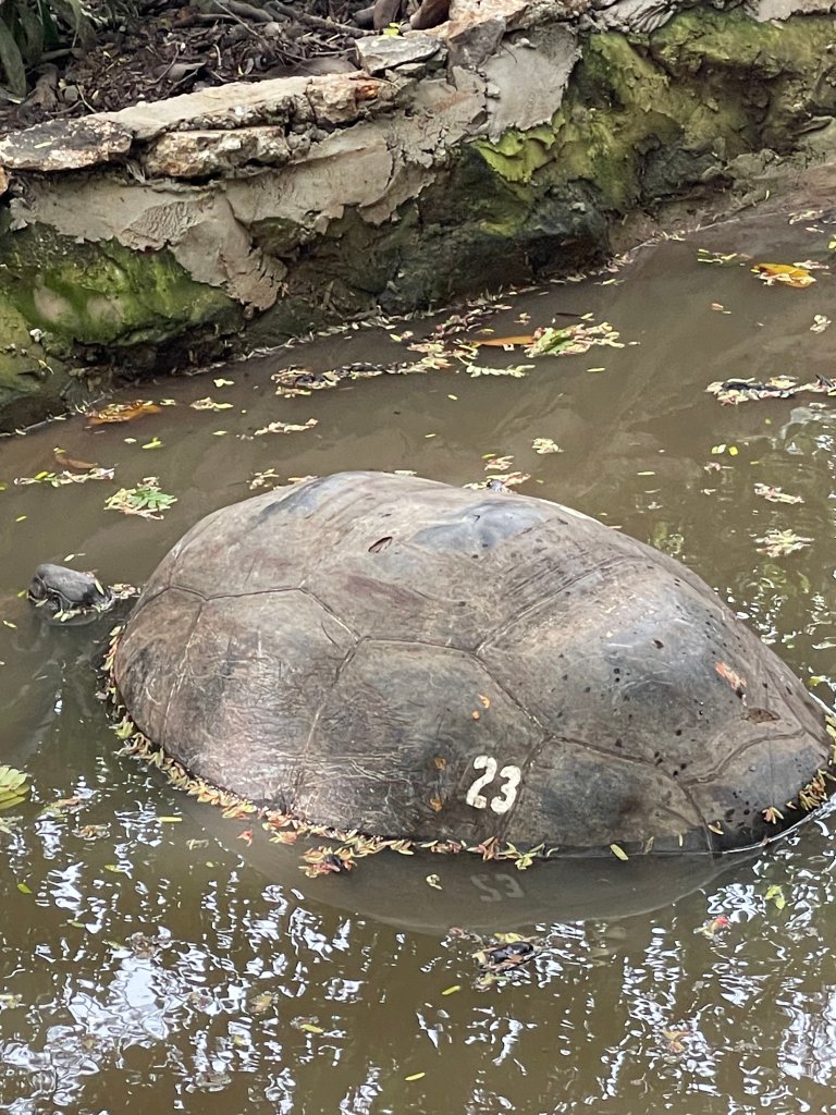 Il faisait super chaud et nous n’étions plus très réceptifs quand un employé et venu vers nous et nous a proposé de nous montres des surprises …. bon ok on vous suit. Il nous emmène vers une palissade qui une fois franchie nous laisse devant l’infirmerie et nurserie du jardin. Nous avons pu porter des bébés tortues de terre et marines ayant que 4 jours. Puis une torture terrestre de 10 ans …. une petite explication pour caresser une torture géante, il faut tapoter gentiment sur l’arrière de sa carapace, de ce fait elle va sortir sa tête et vous pourrez la caresser sous le cou, elle adore ça ….