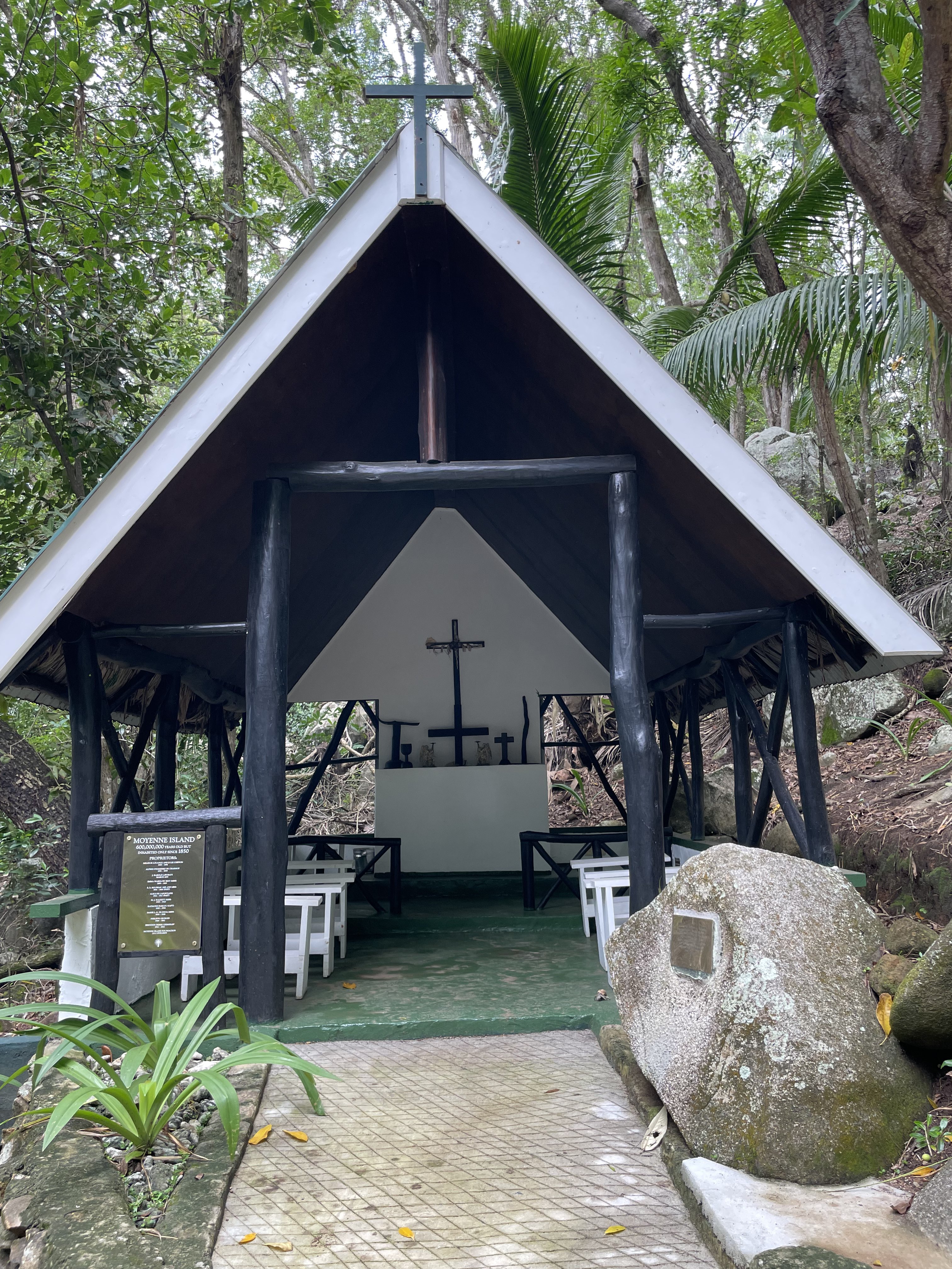 C’est un peu le royaume de la contemplation, sur le haut de la colline vous avez un helipad et une vue incroyable sur les 4 autres îles du Parc National de Sainte- Anne.
