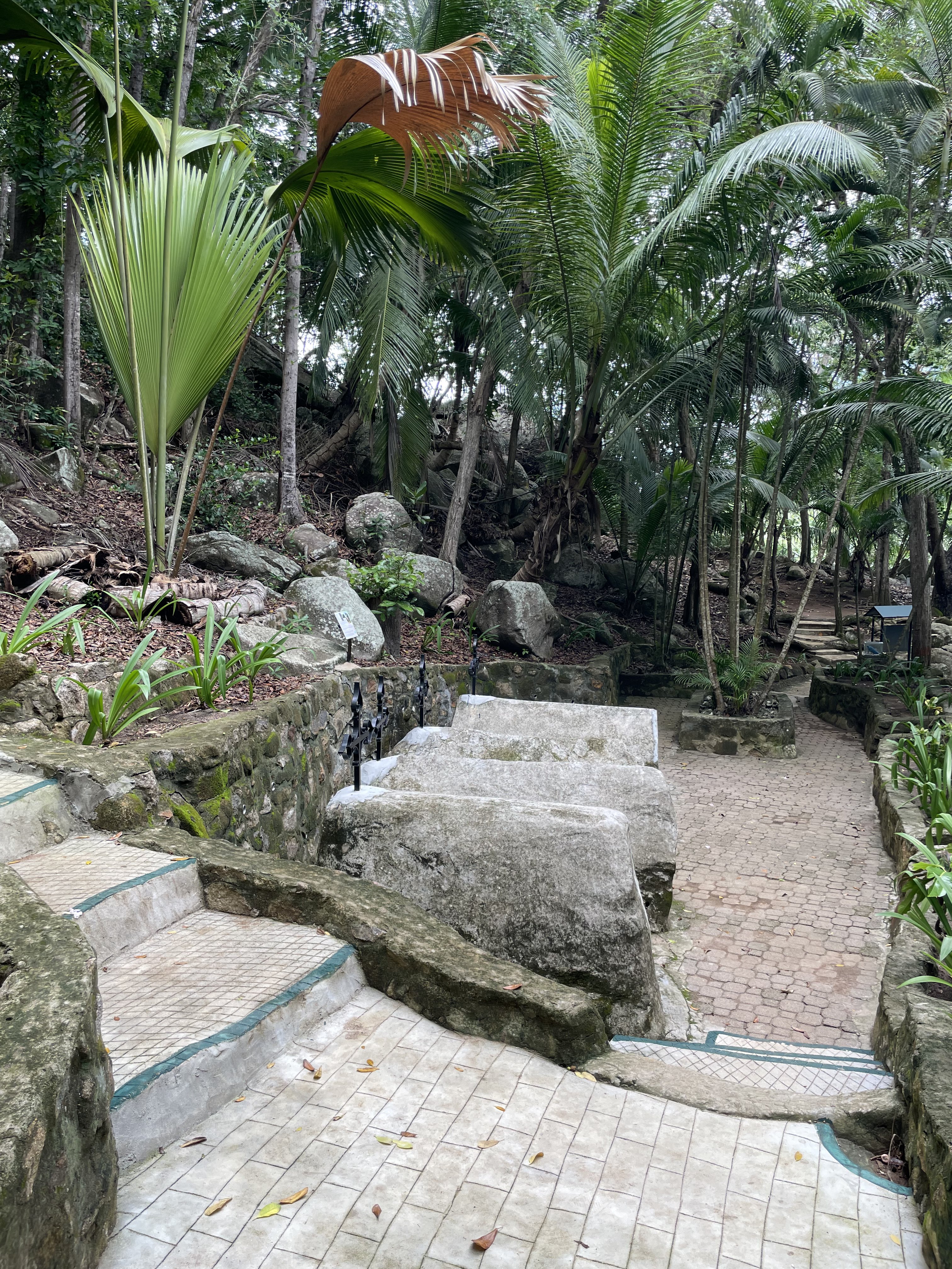 Ce jardin est bien entretenu, quand aux espèces de plantes, malheureusement nous ne sommes pas des spécialistes et je me suis plutôt rabattue sur les tortues géantes que vous pouvez même nourrir.