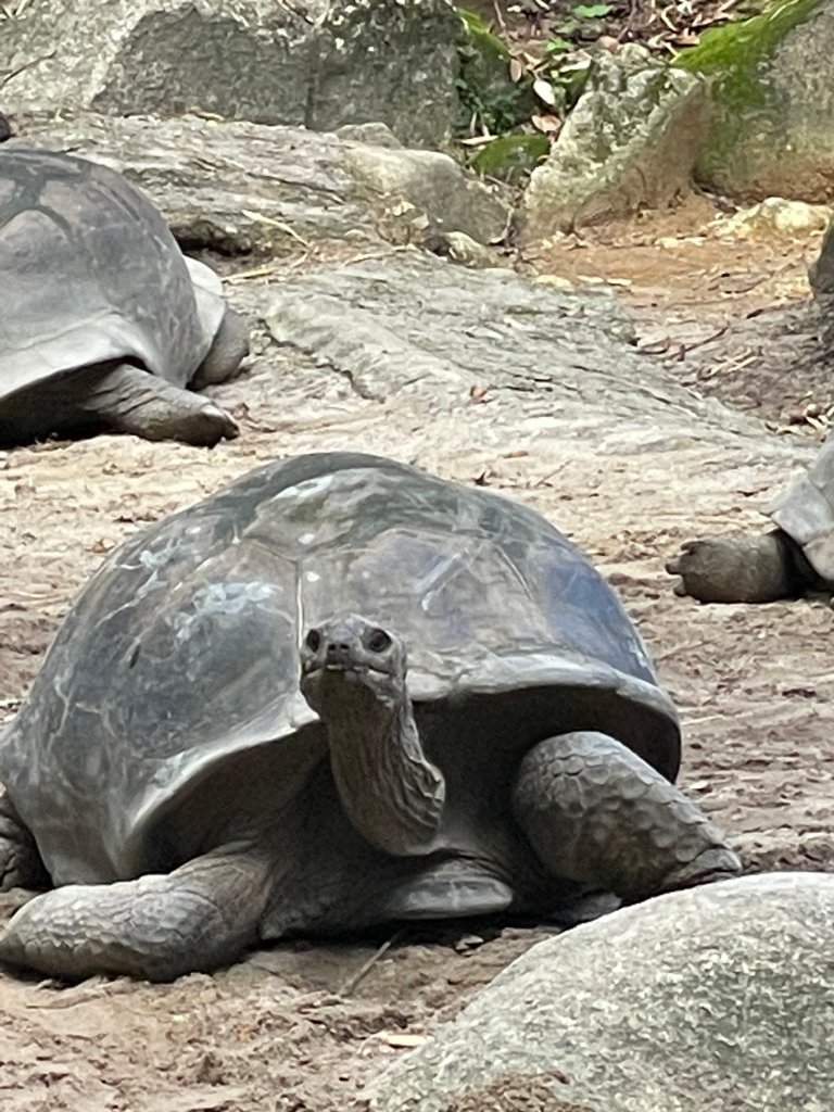 Nous avions deux tortues sur notre île mais toute une colonie sur île Moyenne, nous en avons aussi vu une à la Digue, puis au Jardin Botanique de Mahé où nous avons pu visiter la pouponnière, grâce à al gentillesse du soigneur.
