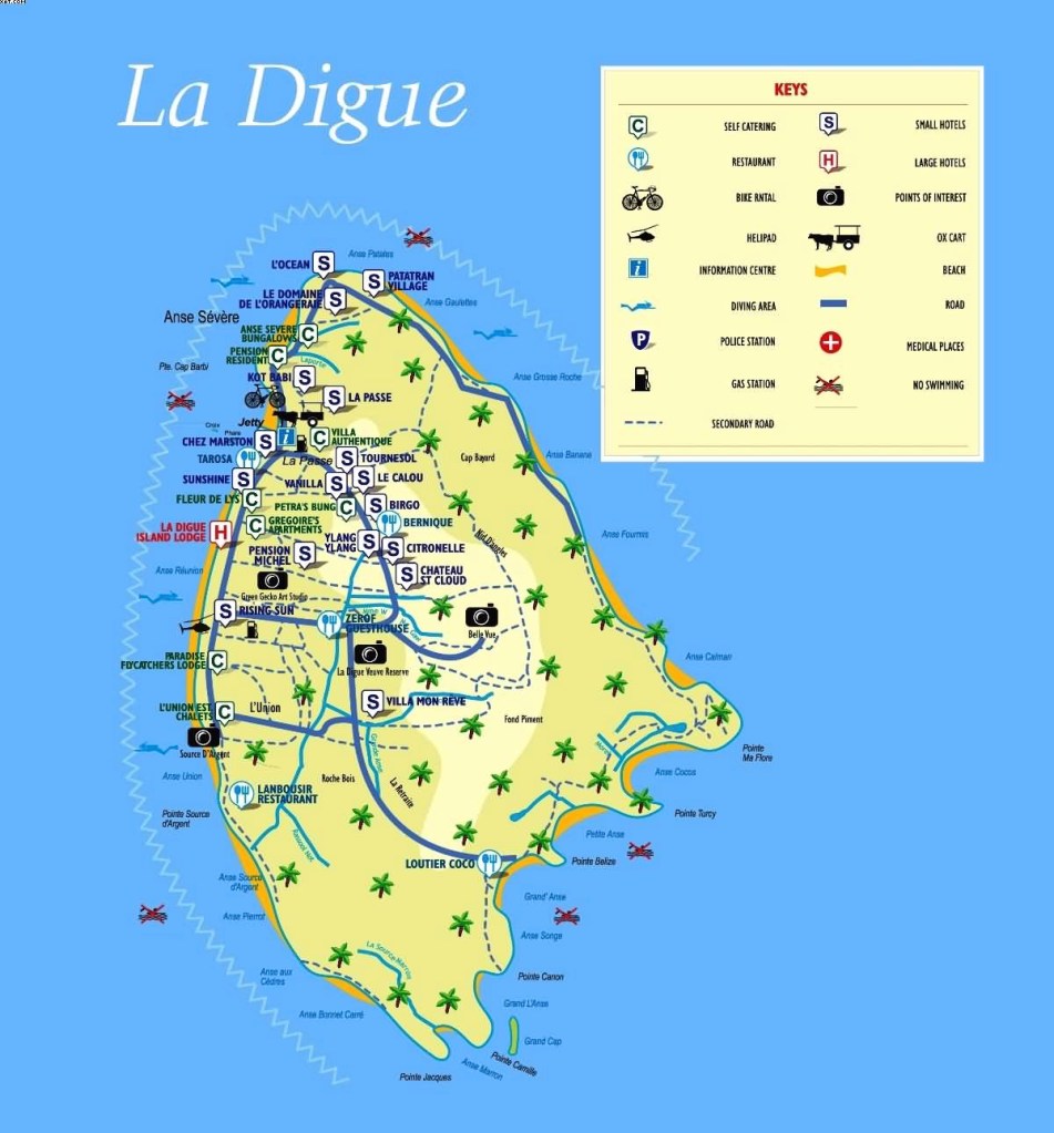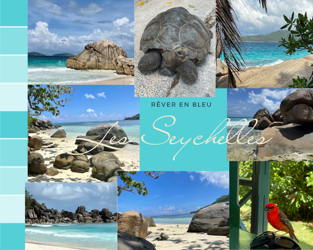 Je vais devoir retourner aux Seychelles, car je n’ai visité "que" 5 îles ….que je vous ai mises sur cette carte schématisée. Evidemment, que c’est déjà fabuleux.