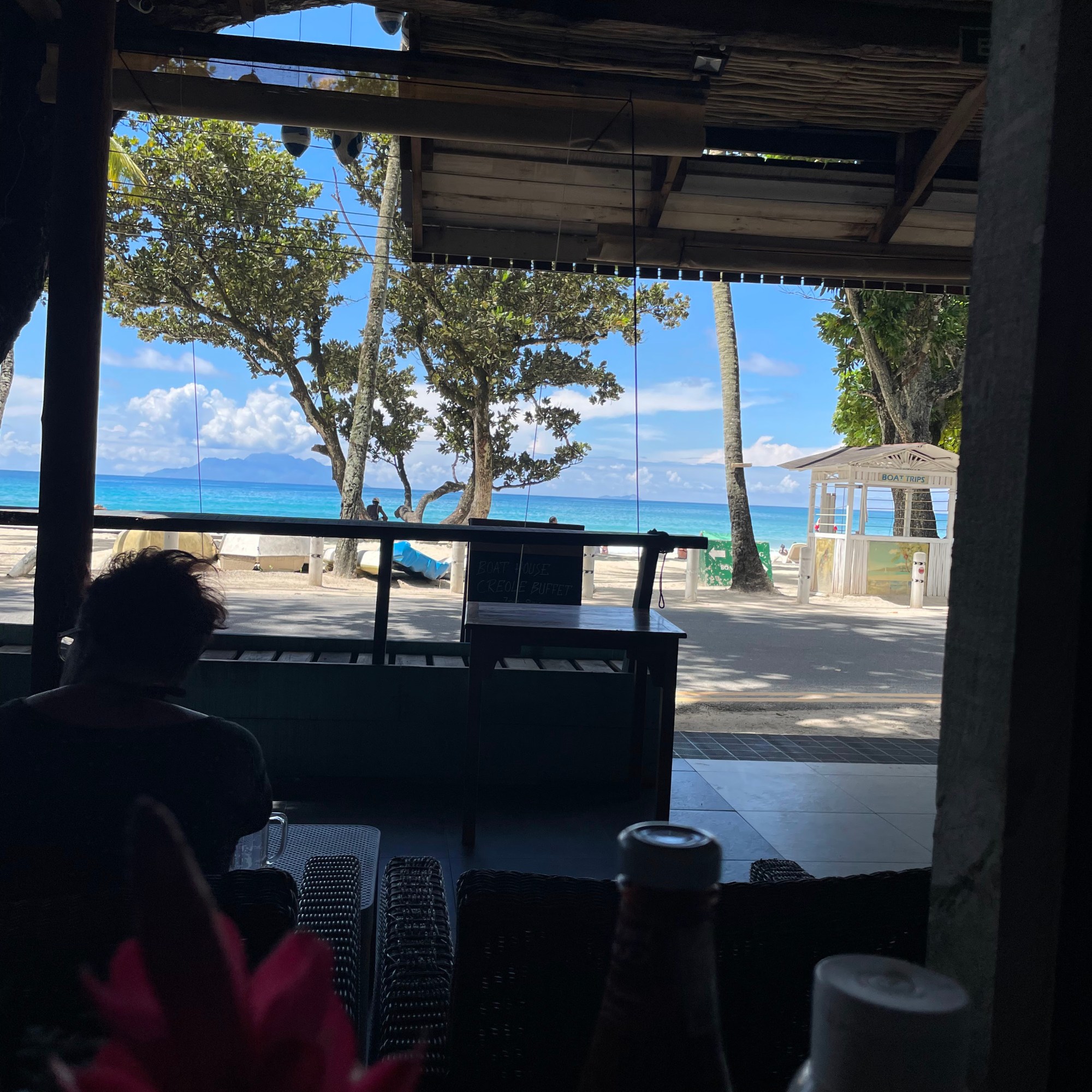 Commençons par un petit curry poulet PAR CE QUE L’ON SE DIT TOUT, le curry était pas des meilleurs mais en même temps, c’est le seul restaurant de l’île et de ce fait le prix est est à la hauteur de l’offre, soit environ 50 Euros pour 2 curry poulet de l’eau et une bière , bon la vue en valait la peine…