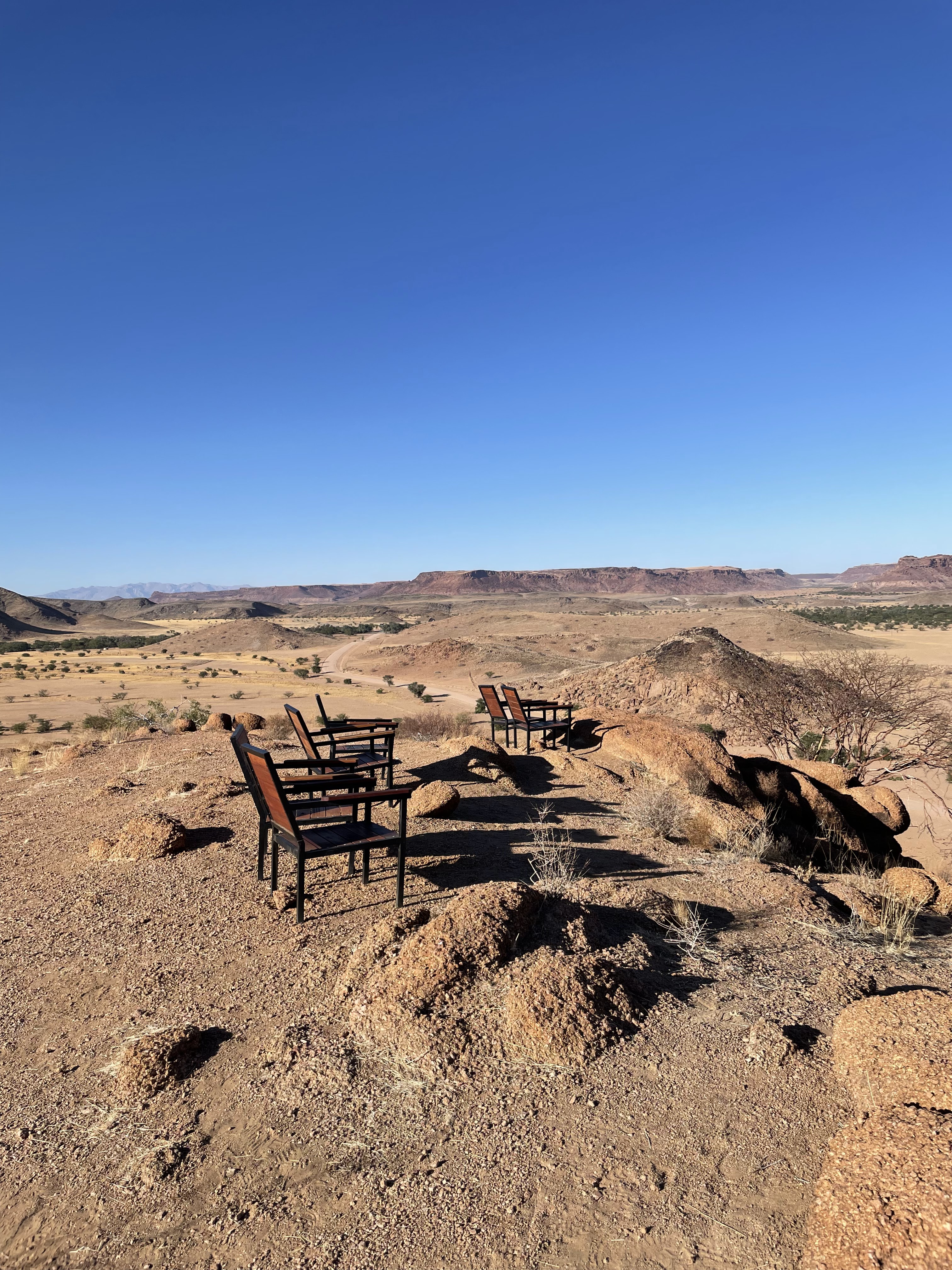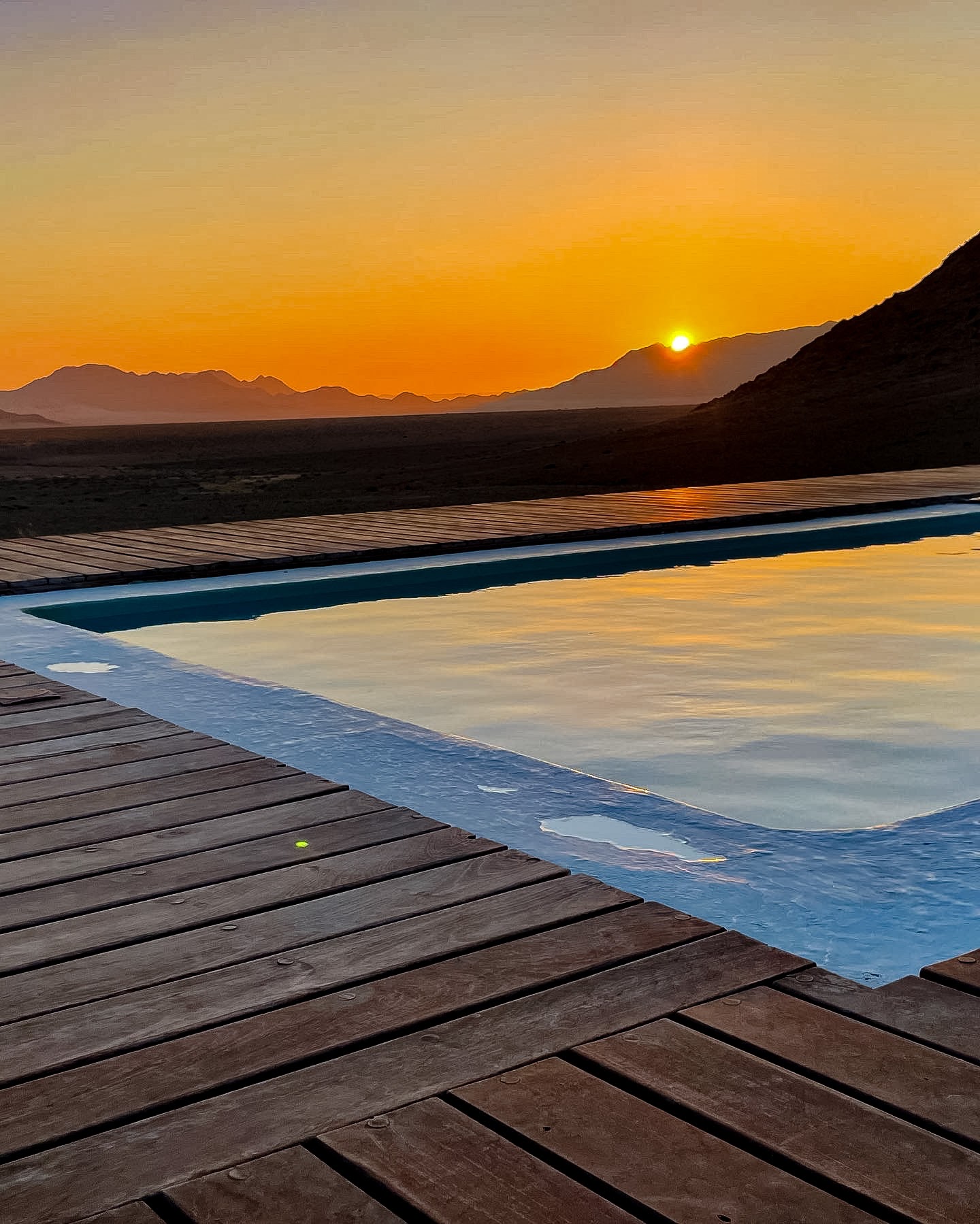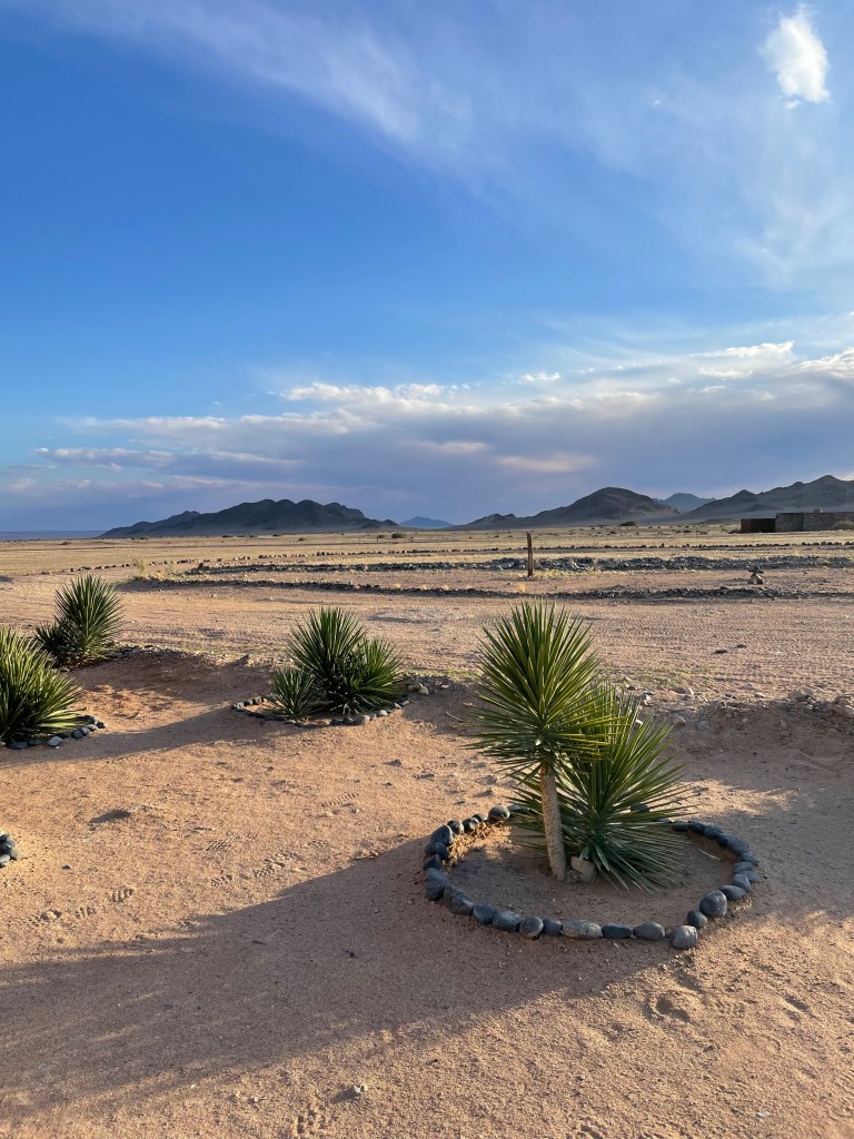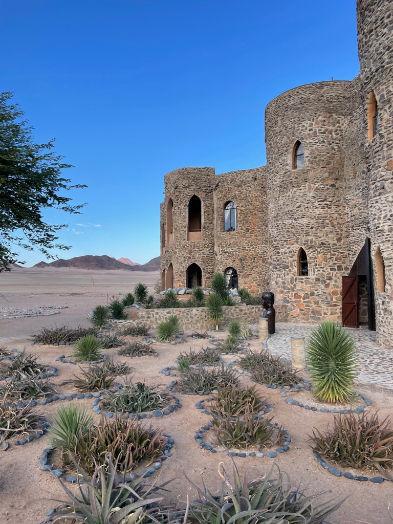 L’émerveillement tout au long du séjour, les lodges, le repas mais aussi le paysage grandiose avec un spectaculaire coucher de soleil sur le Namib. A noter qu’il y a une piscine mais qu’elle n’est pas chauffée ( et heureusement….) donc au mois de mai, ce sont uniquement les courageux qui s’y risquent.