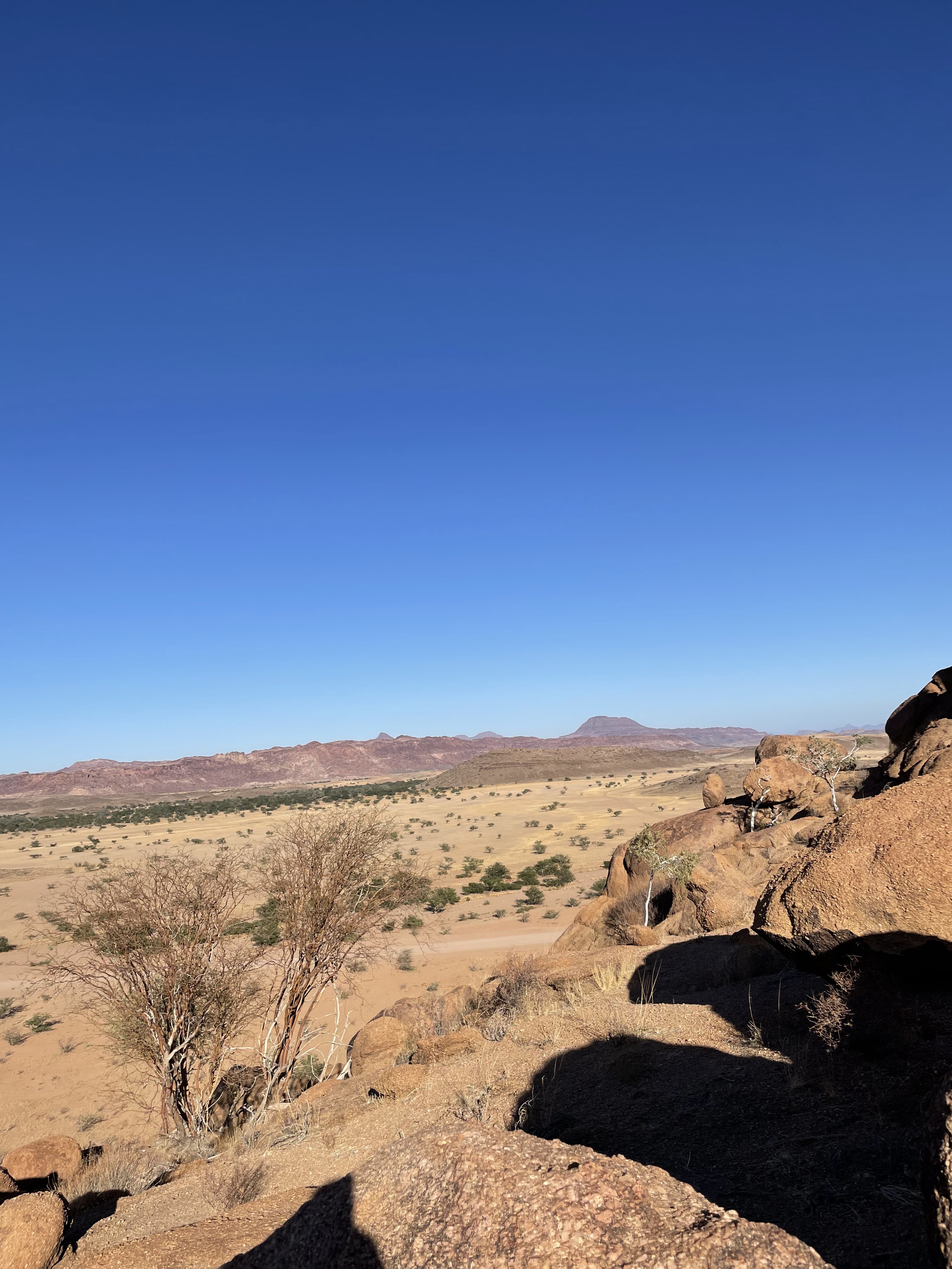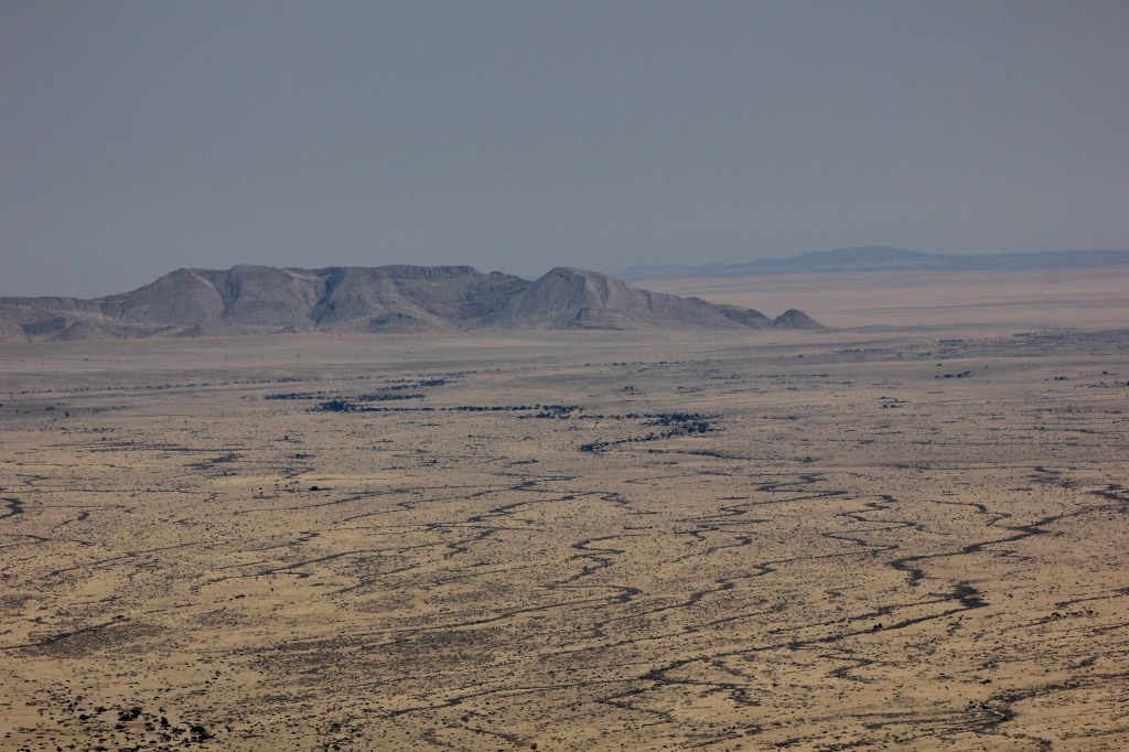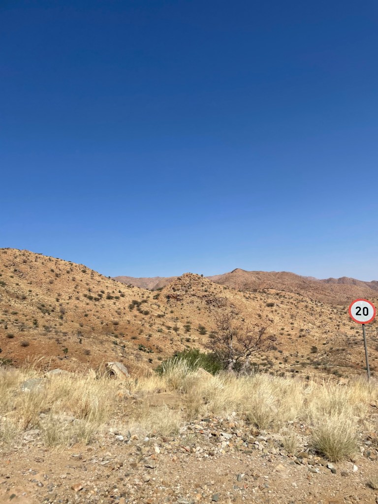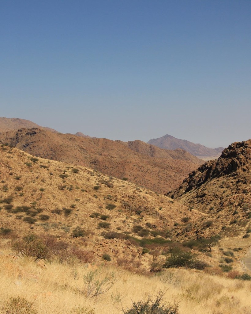 Après les longues pistes droites au milieu de la savane, nous prenons la C14 puis le Spreetshoogde pass qui à son sommet soit à plus de 1’000 m d’altitude vous laisse face à une vue à couper le souffle sur le Namib. C’est le premier whaow du voyage mais de loin pas le denrier. J’ai entendu plusieurs personnes qui avait peur de la descente , mais vraiment aucun souci avec le frein moteur aucune crainte à avoir.