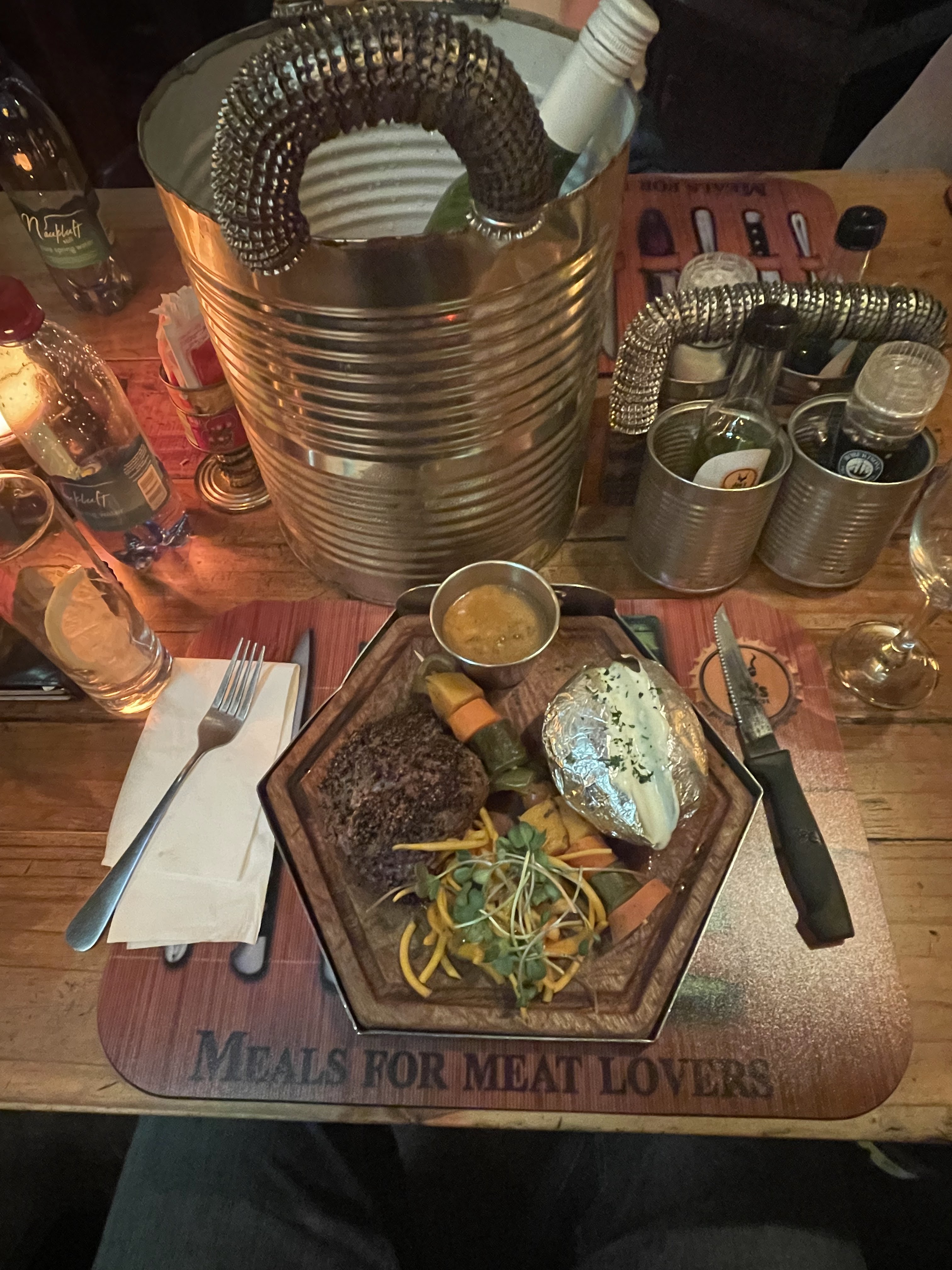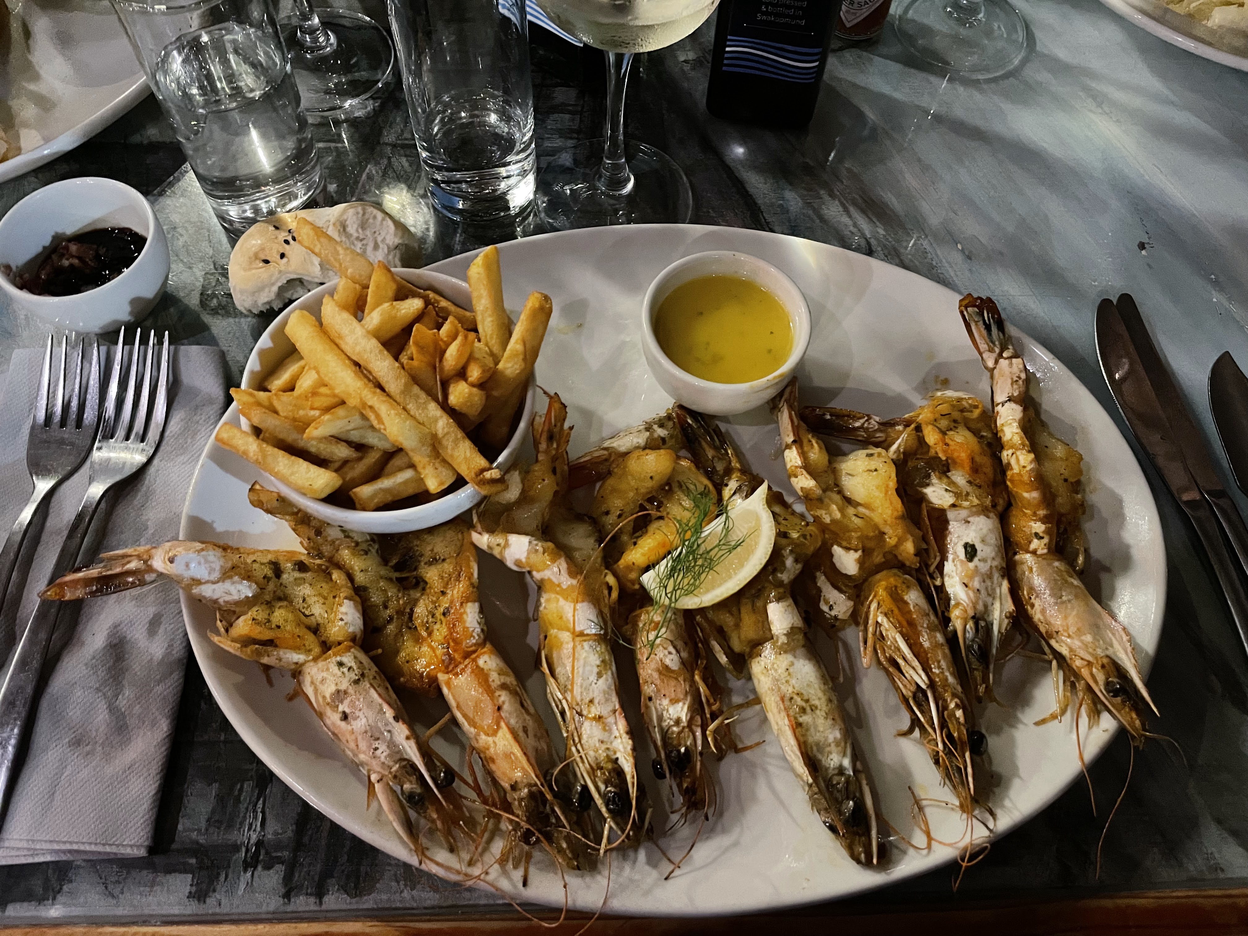 Bien que ce soit le restaurant touristique par excellence, nous avons bien aimé le décor et la nourriture était parfaite , pour notre premier soir en Namibie , c’était réussi !!