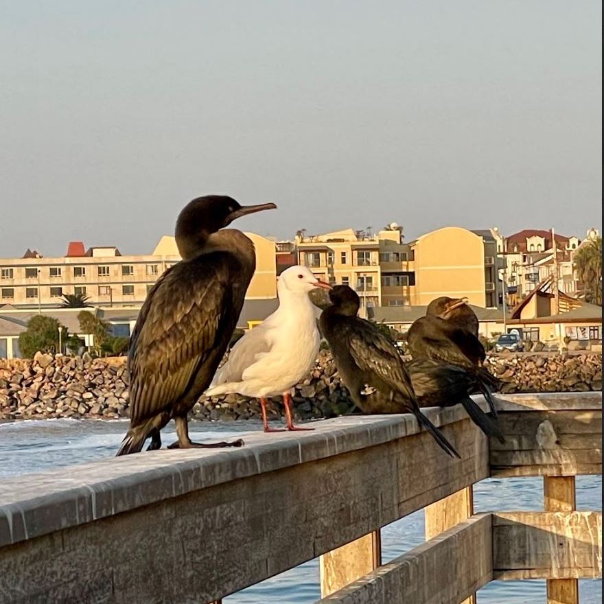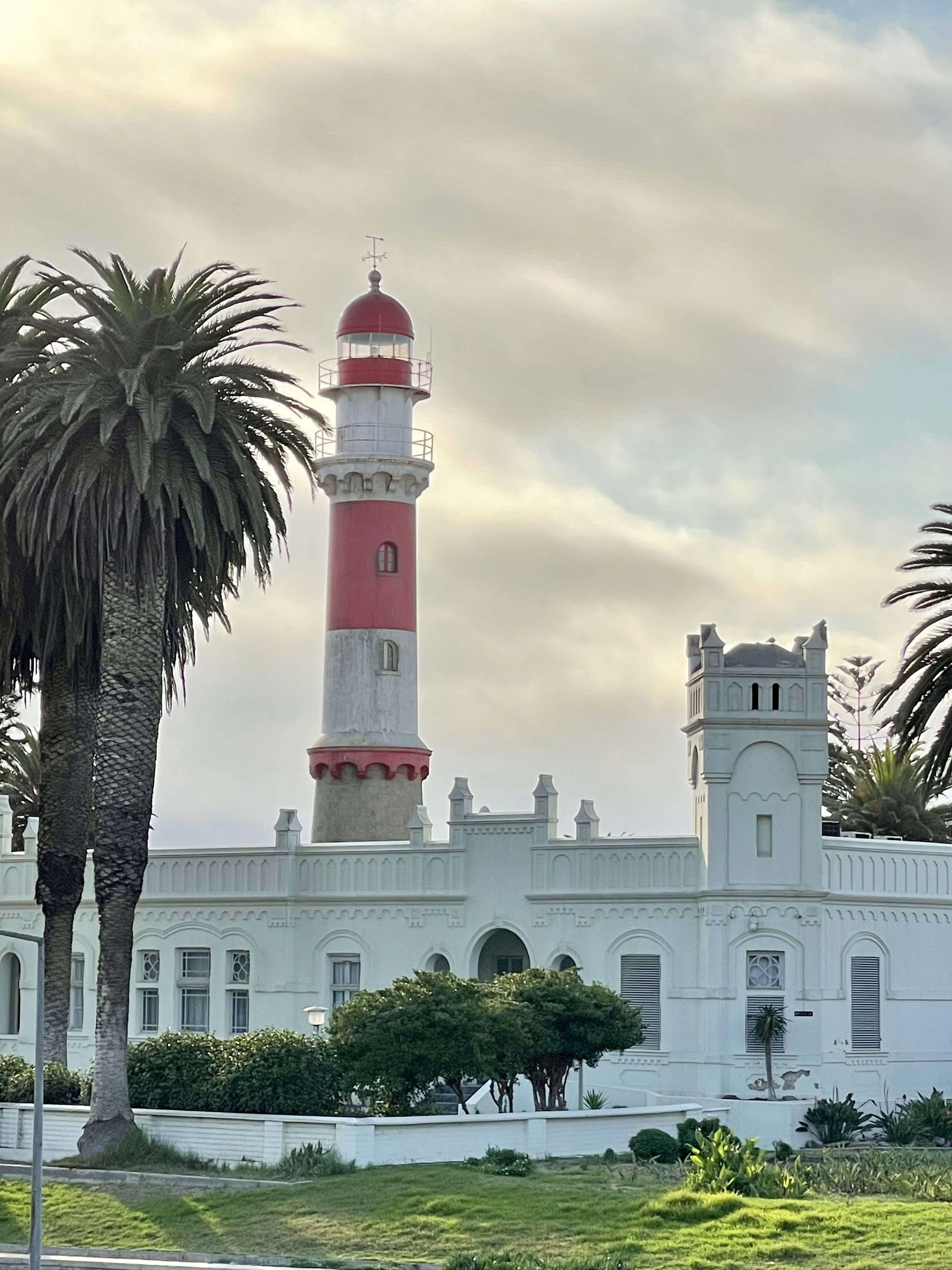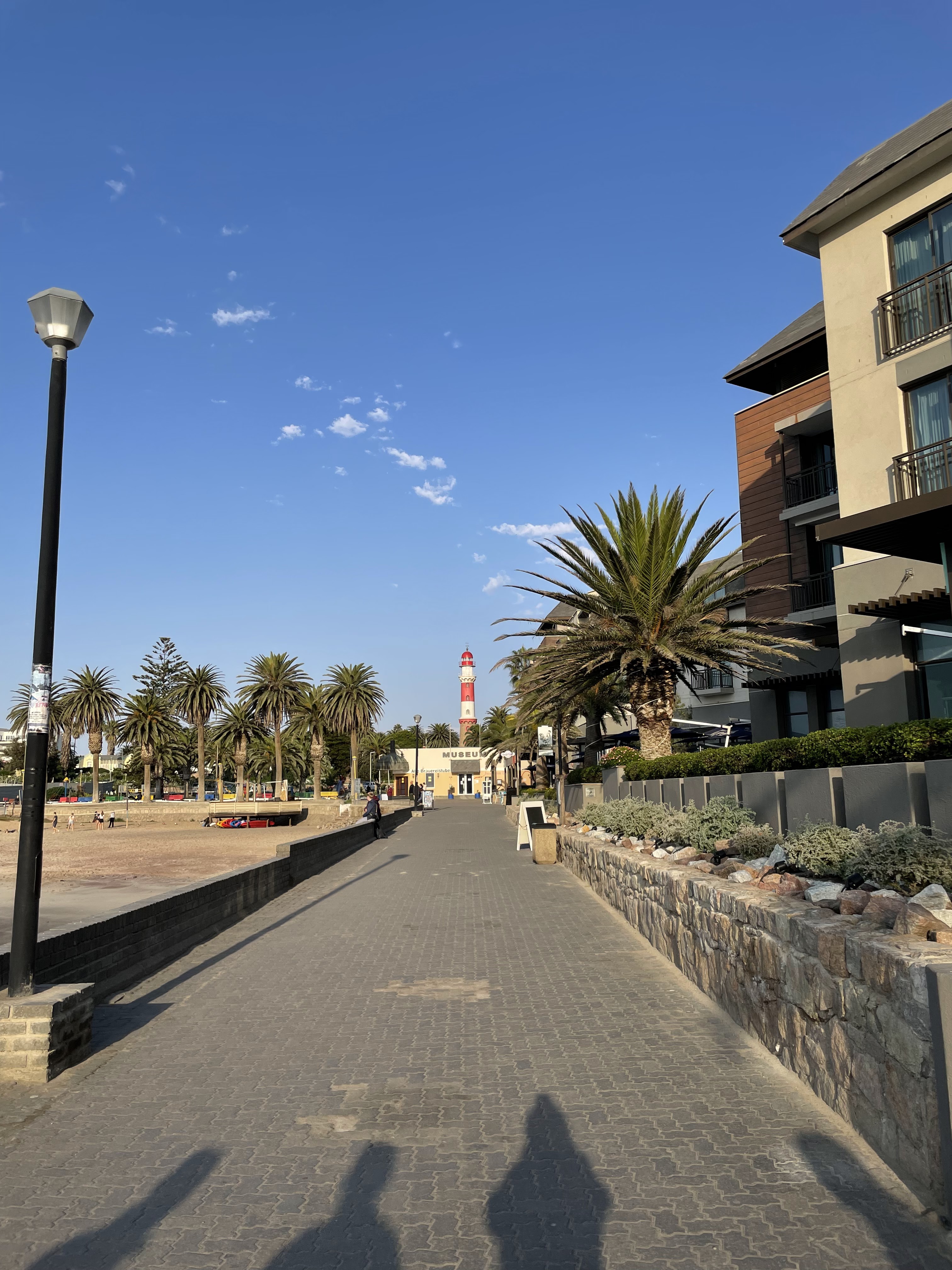 Les températures chutent au fil du trajet pour atteindre les 15-16 degrés à notre arrivée à Swakopmund en début d’après-midi. Nous laissons notre voiture au Guest house et partons à pied jusqu’au centre ville.