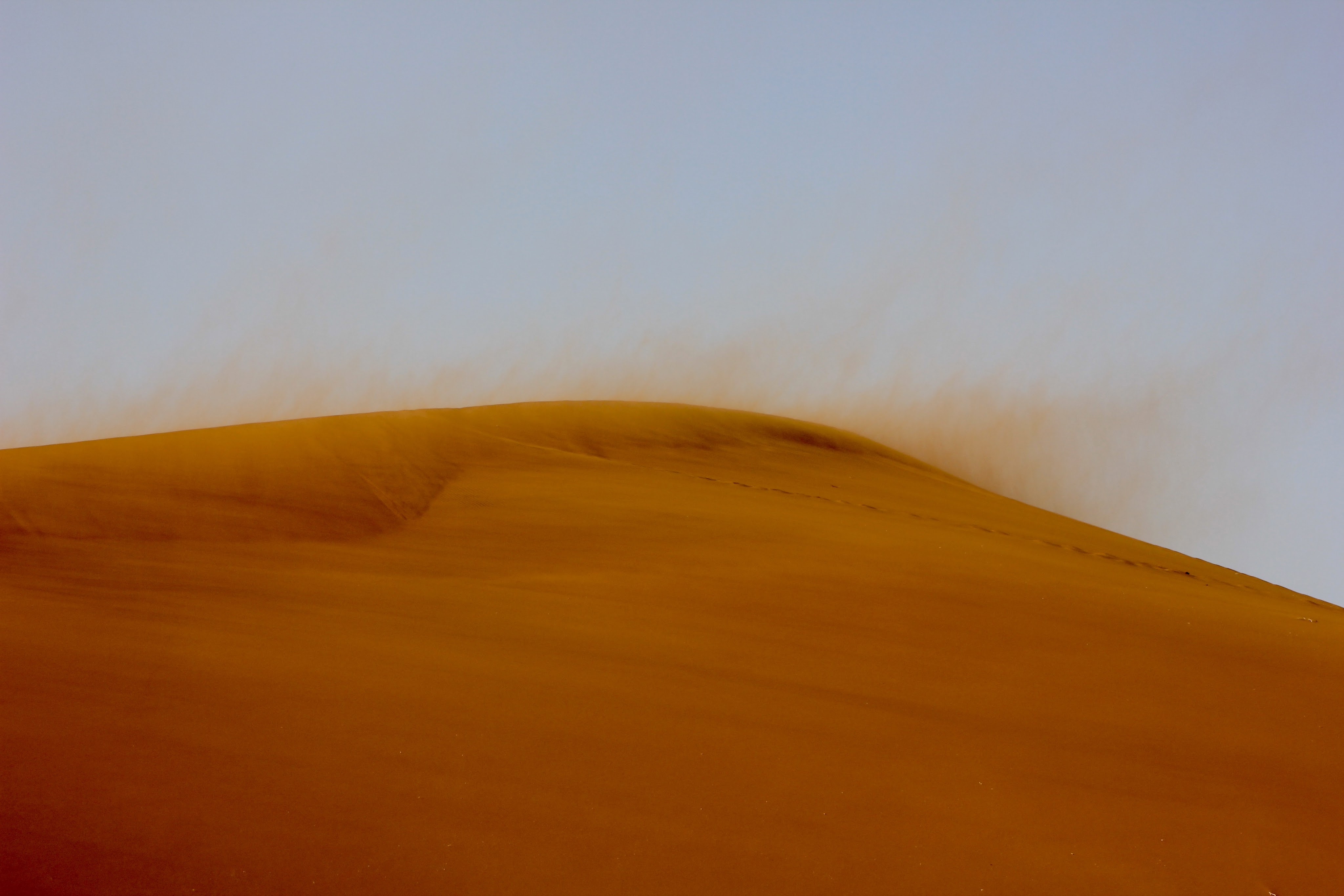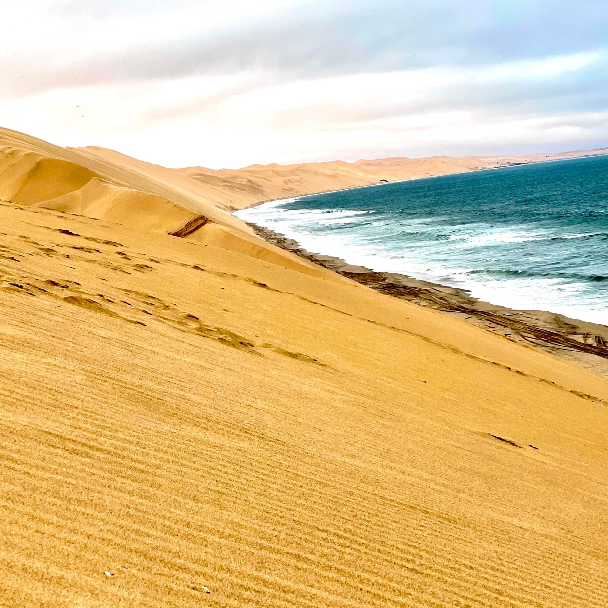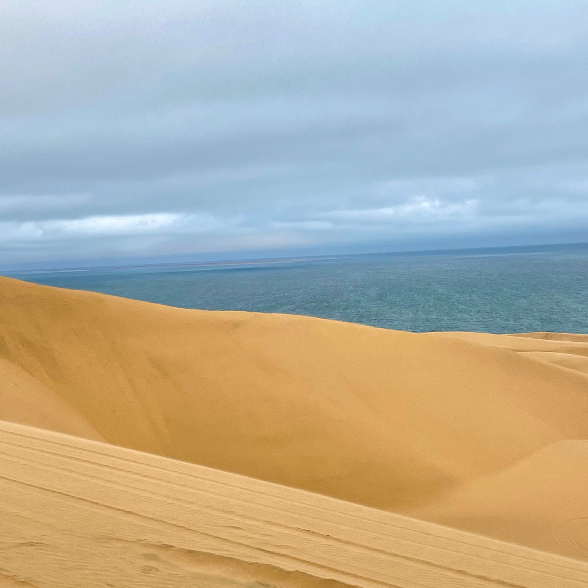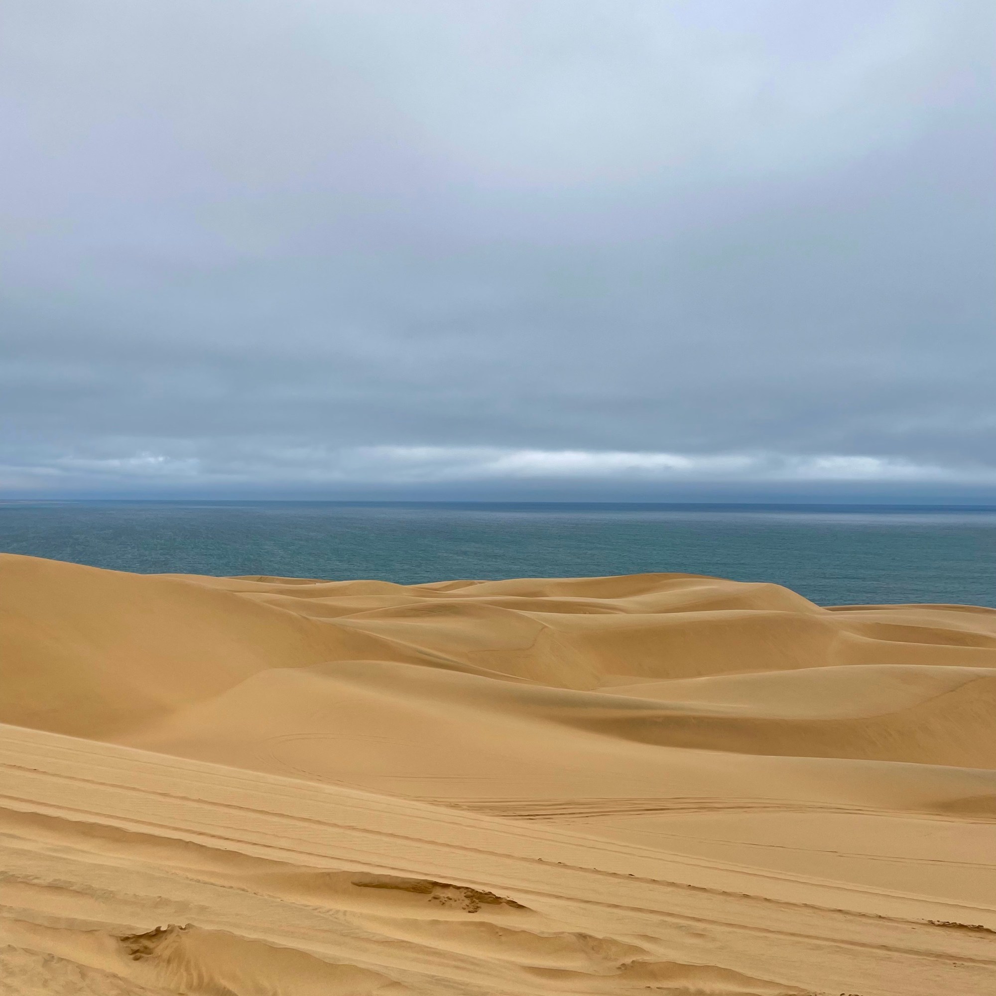 Au delà des dunes, une espèce de brume au loin nous indique que nous arrivons proche de l’océan.