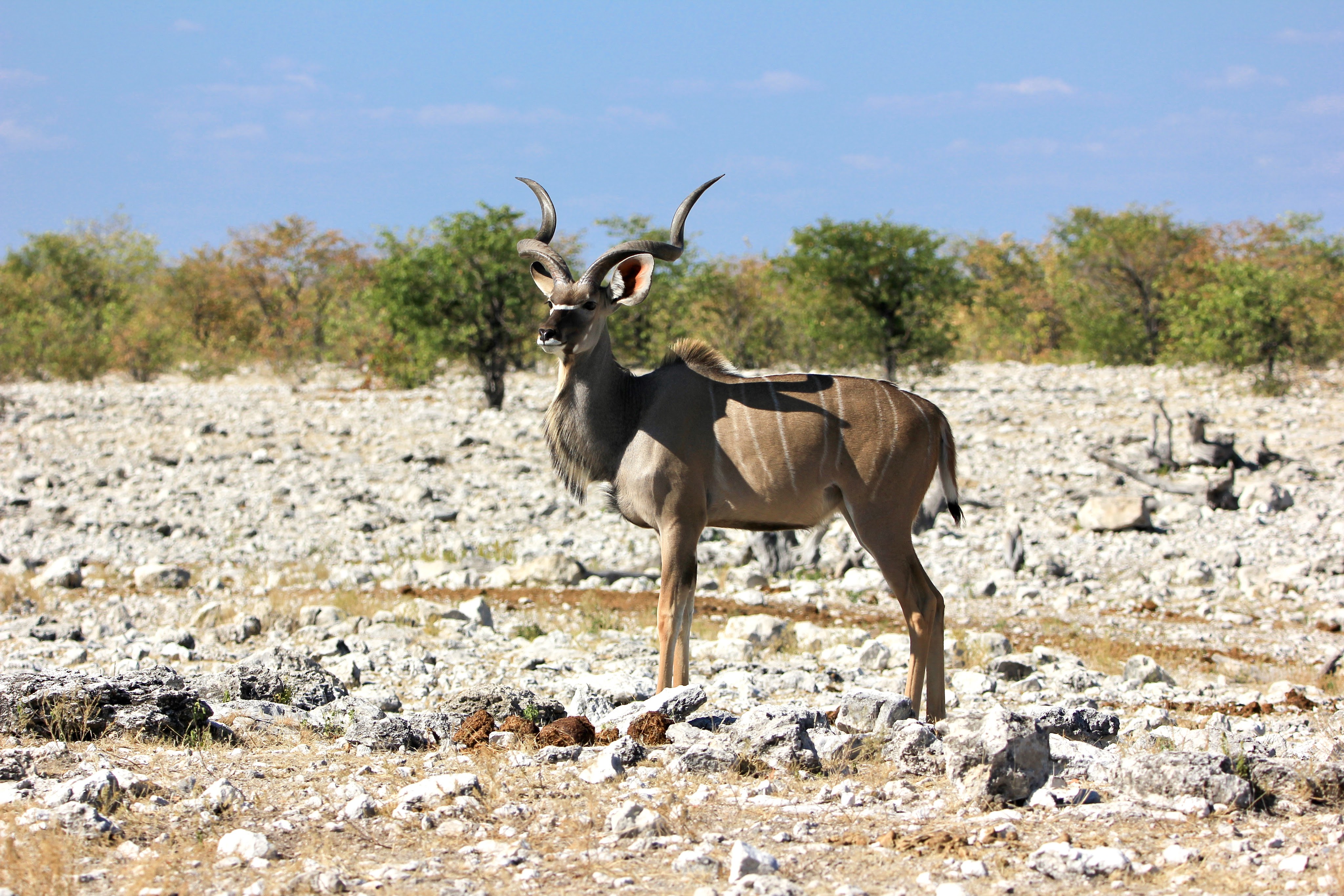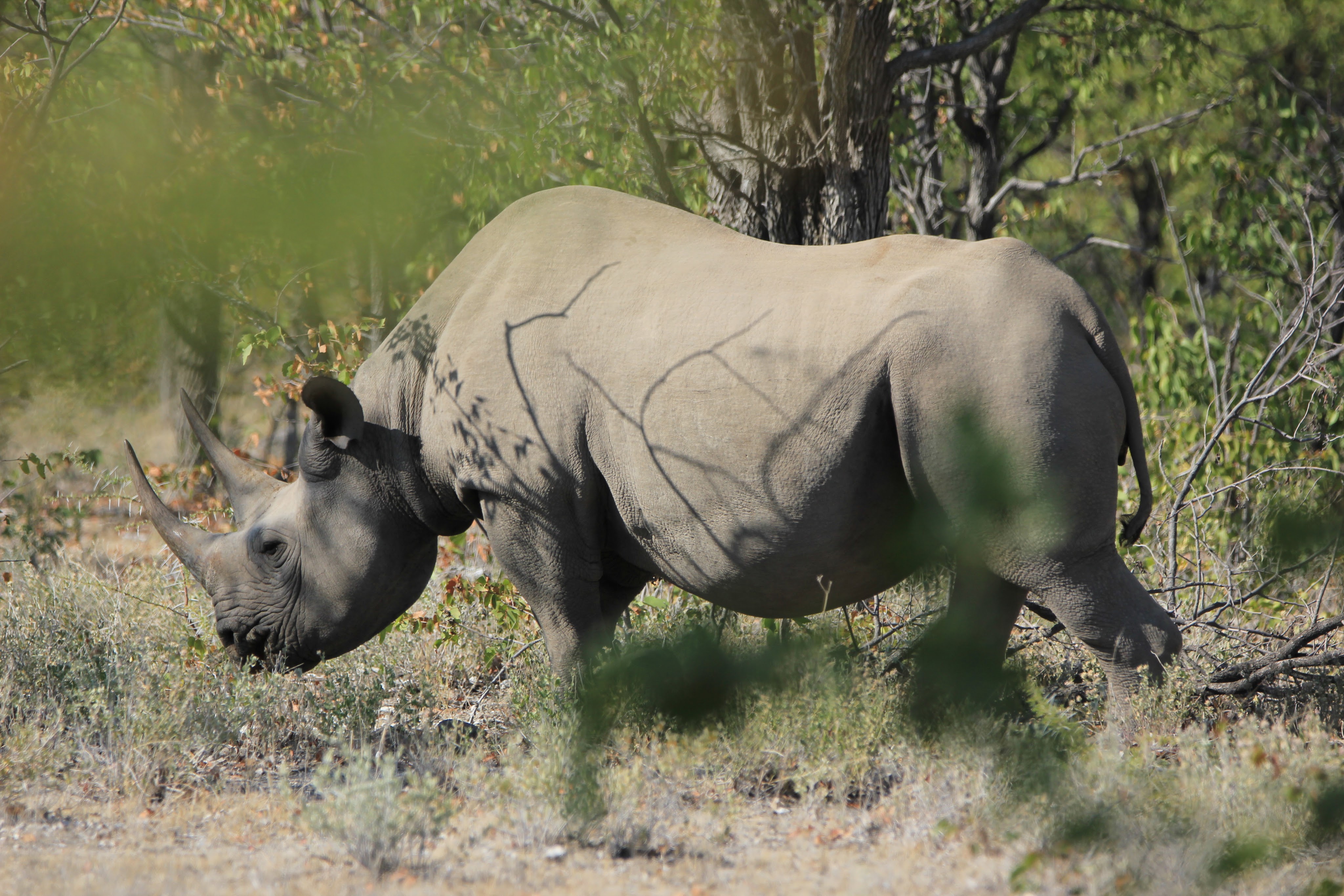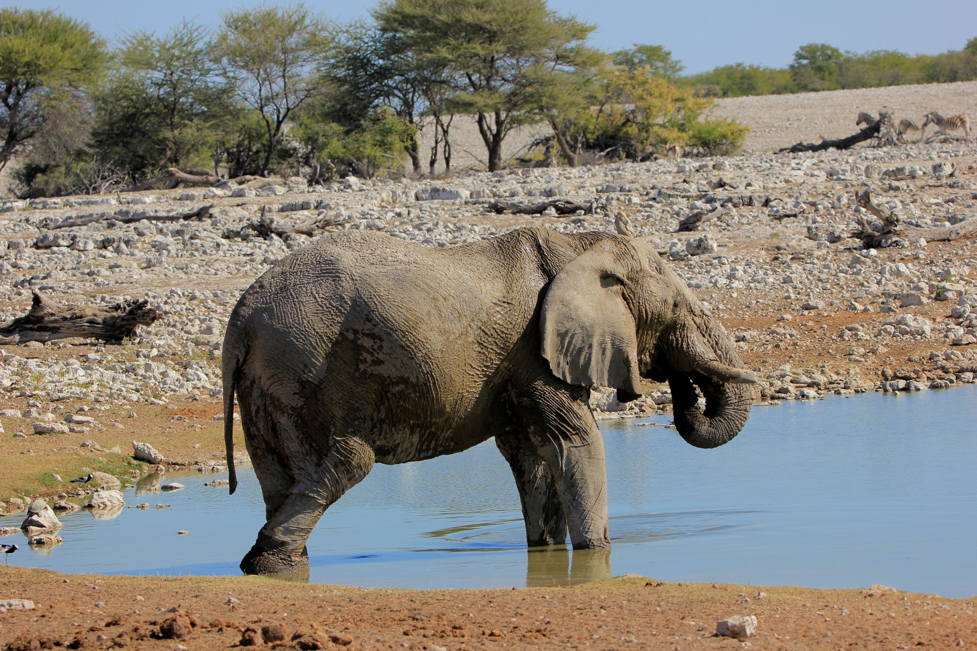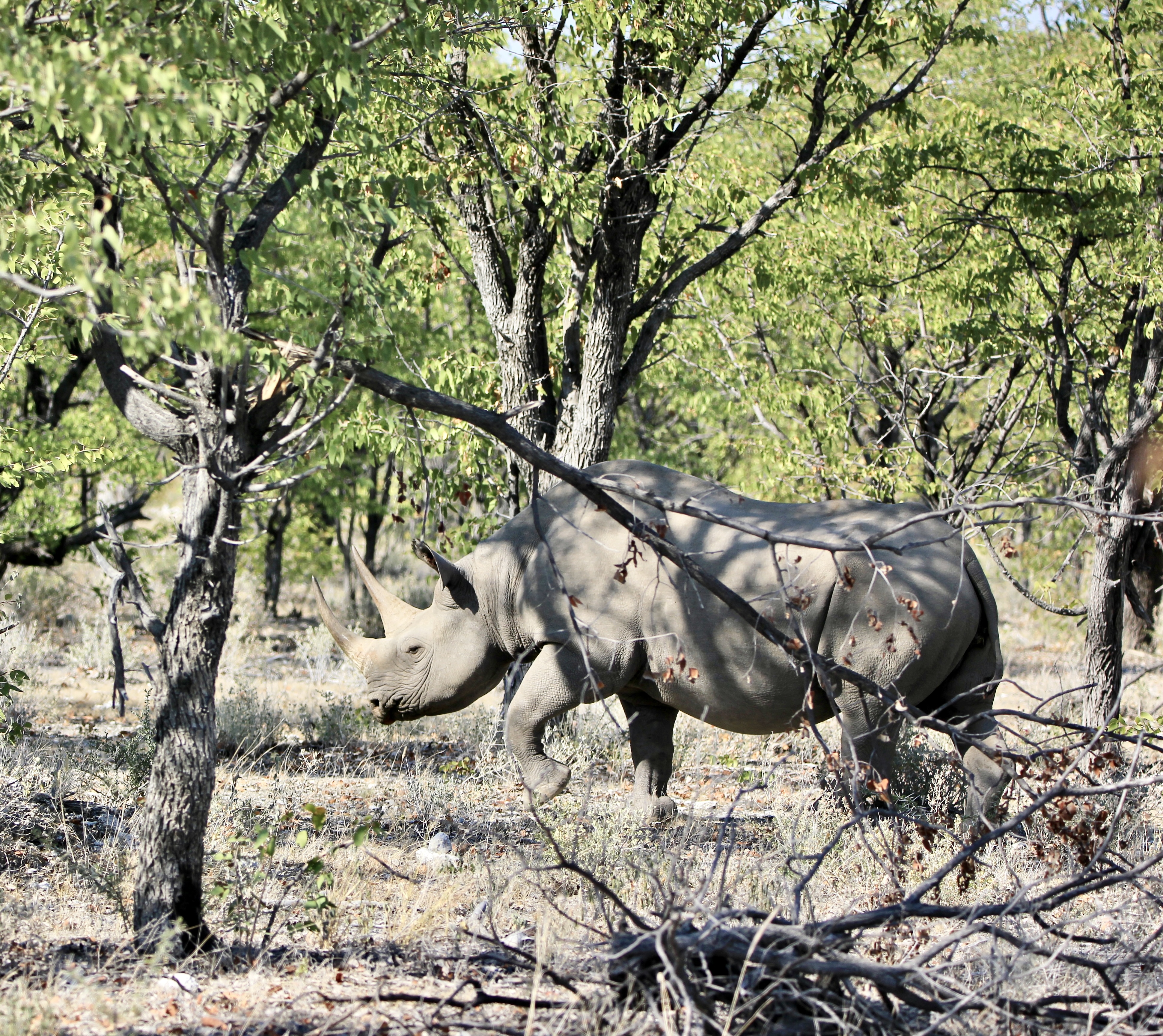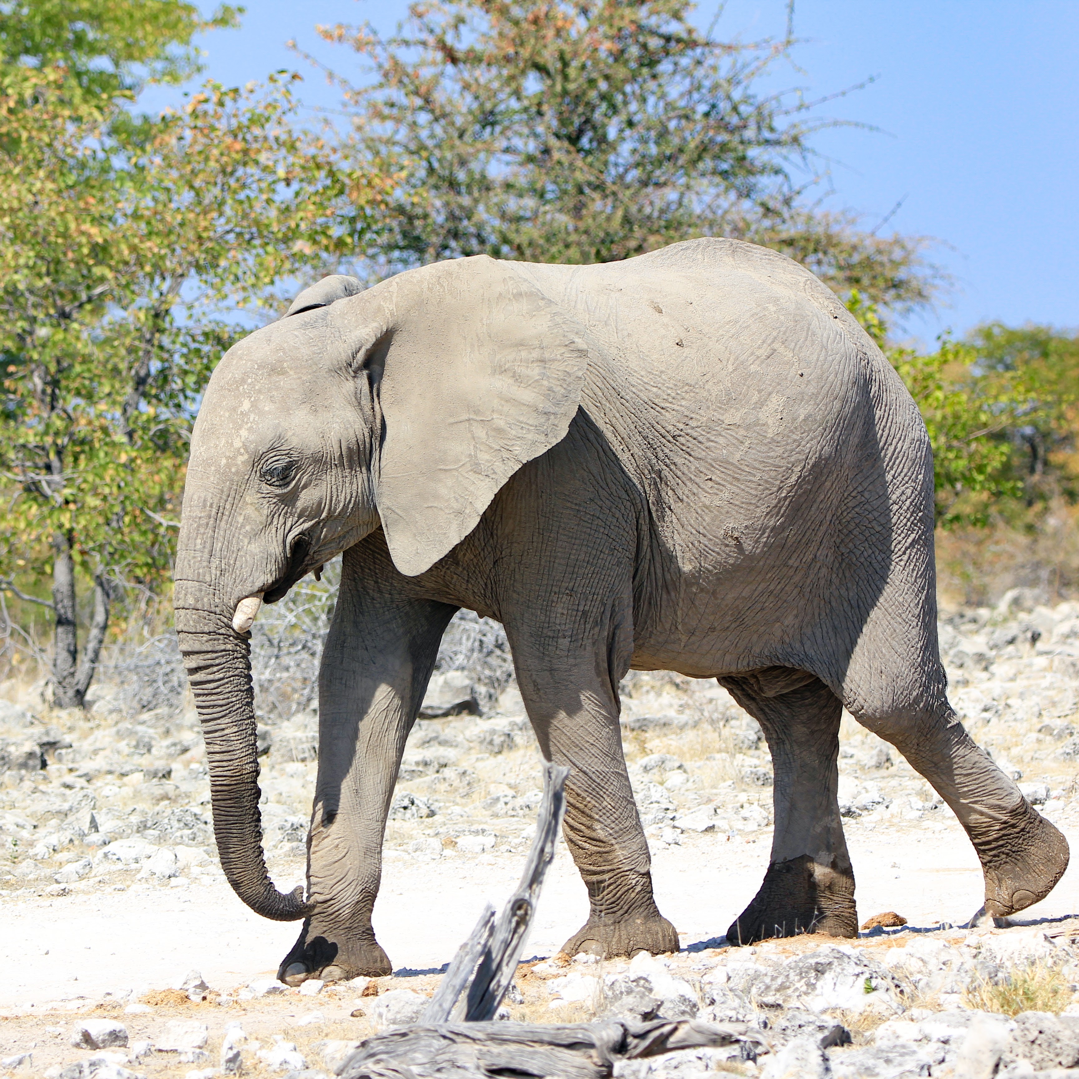 Le parc fait 20’000km2 et en son centre se trouve l’Etosha Pan qui s’étend sur une surface de 5’000km2, c’est un lac salé asséché qui donne ce contraste blanc au milieu du bush.