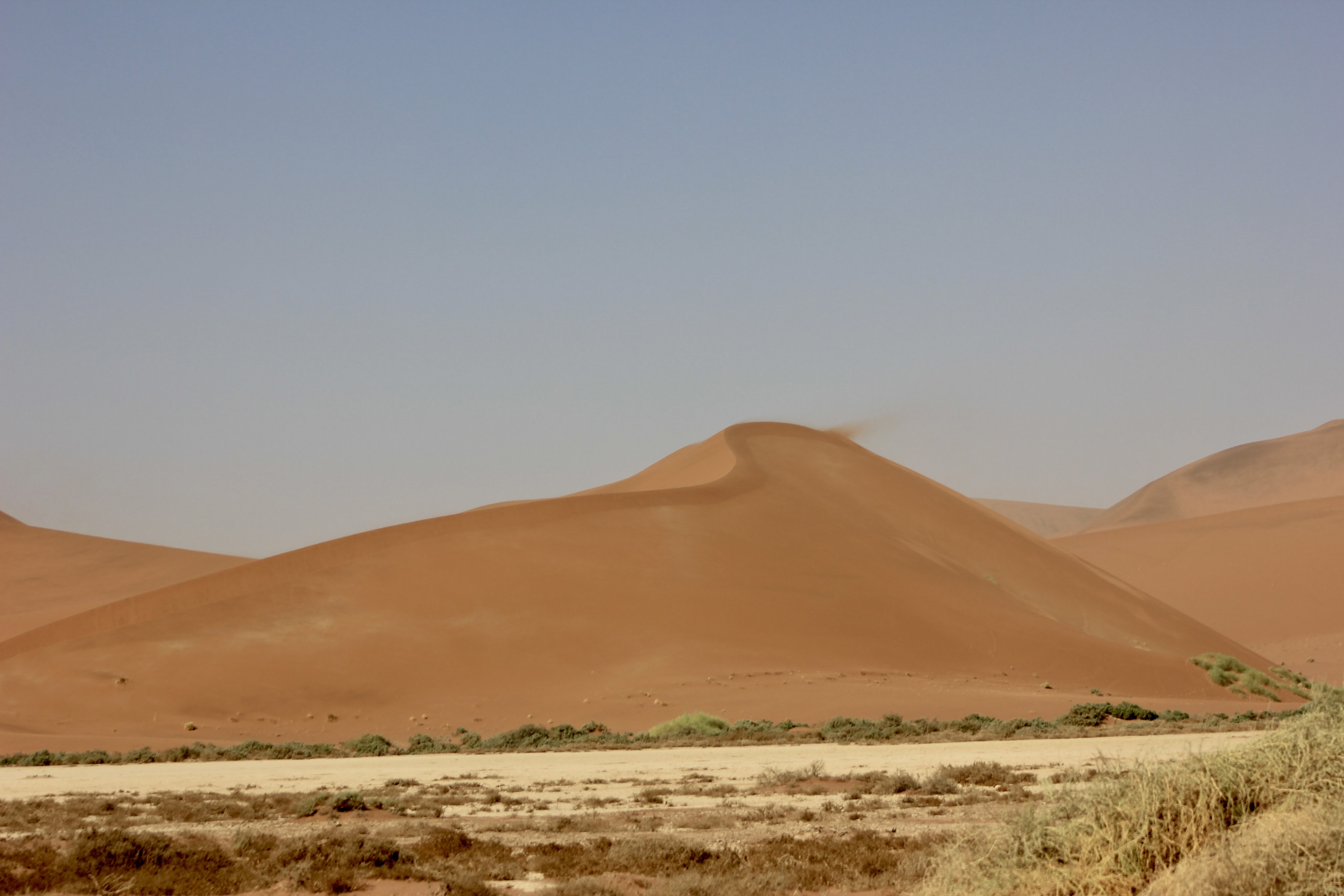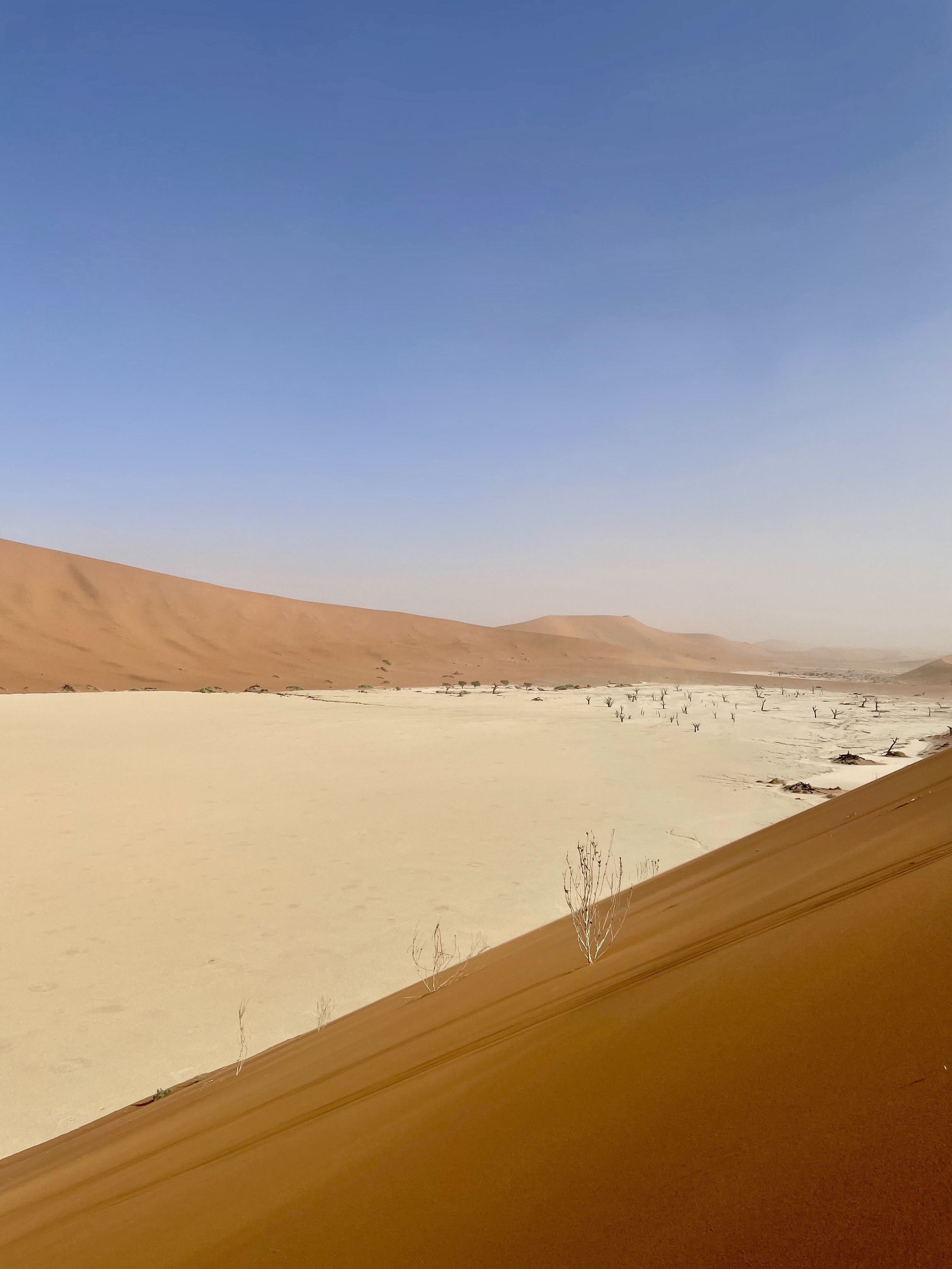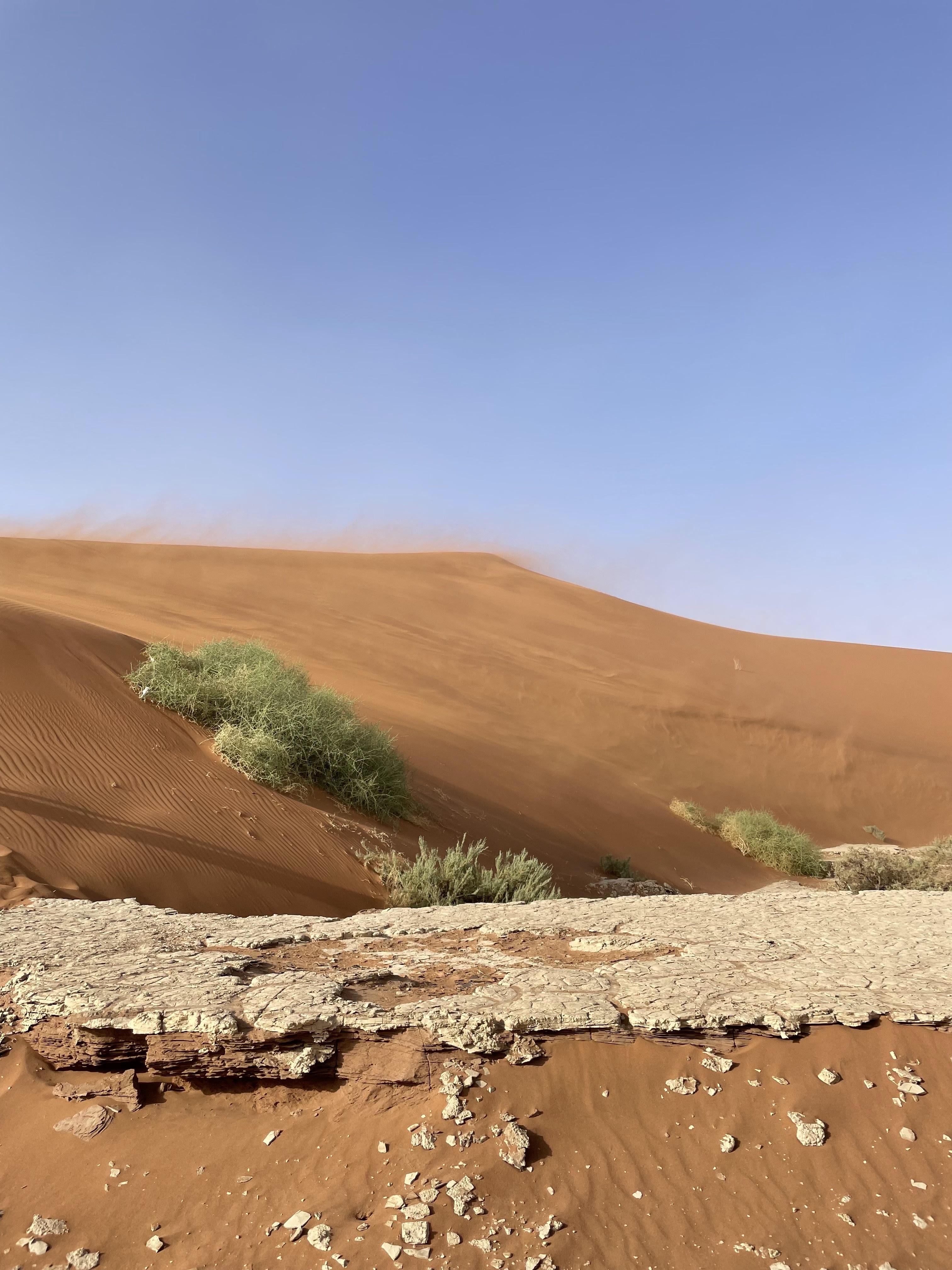 Les vents étaient vraiment violents, on tenait juste debout, on a donc mis foulards, casquettes, lunettes et nous sommes partis à l’assaut de la Dune Big Daddy. Je ne suis pas arrivée en haut, mais la vue à mi-chemin est déjà incroyable, surtout quand le vent est tombée et que le soleil est arrivé.