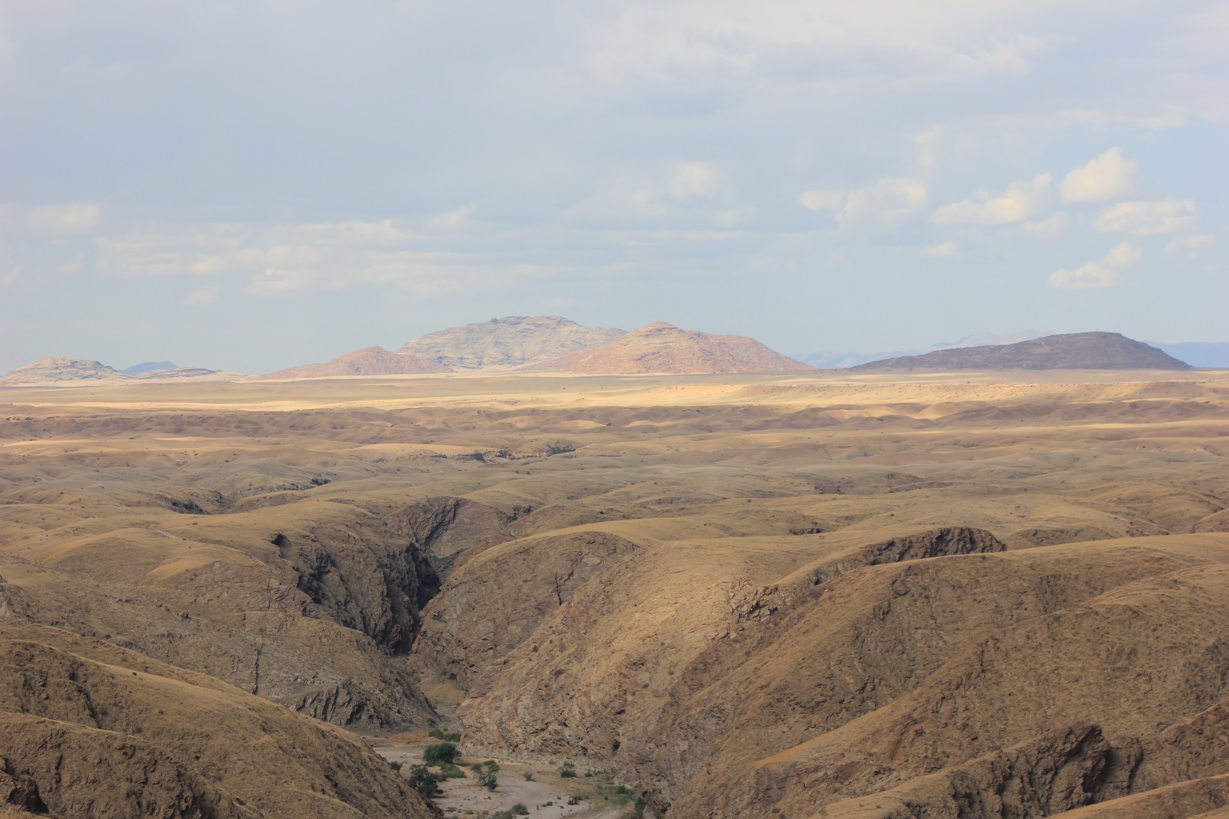 Nous traversons ensuite le Kuiseb Canyon, la route ressemble à celles que nous connaisons dans les Alpes, nous faiosns plusieurs stop photos et profitons aussi du magnifique paysage pour y pique-niquer. Ce canyon a été creusé par la rivière Kuiseb qui est asséchée une bonne partie de l’année à cause de forts vents qui soufflent sur les dunes en direction du Nord et qui remplissent de sable de lit de la rivière. Cette rivière lorsqu’elle est en crue atteint l’océan entre Sandwich Harbor et Walvis bay.