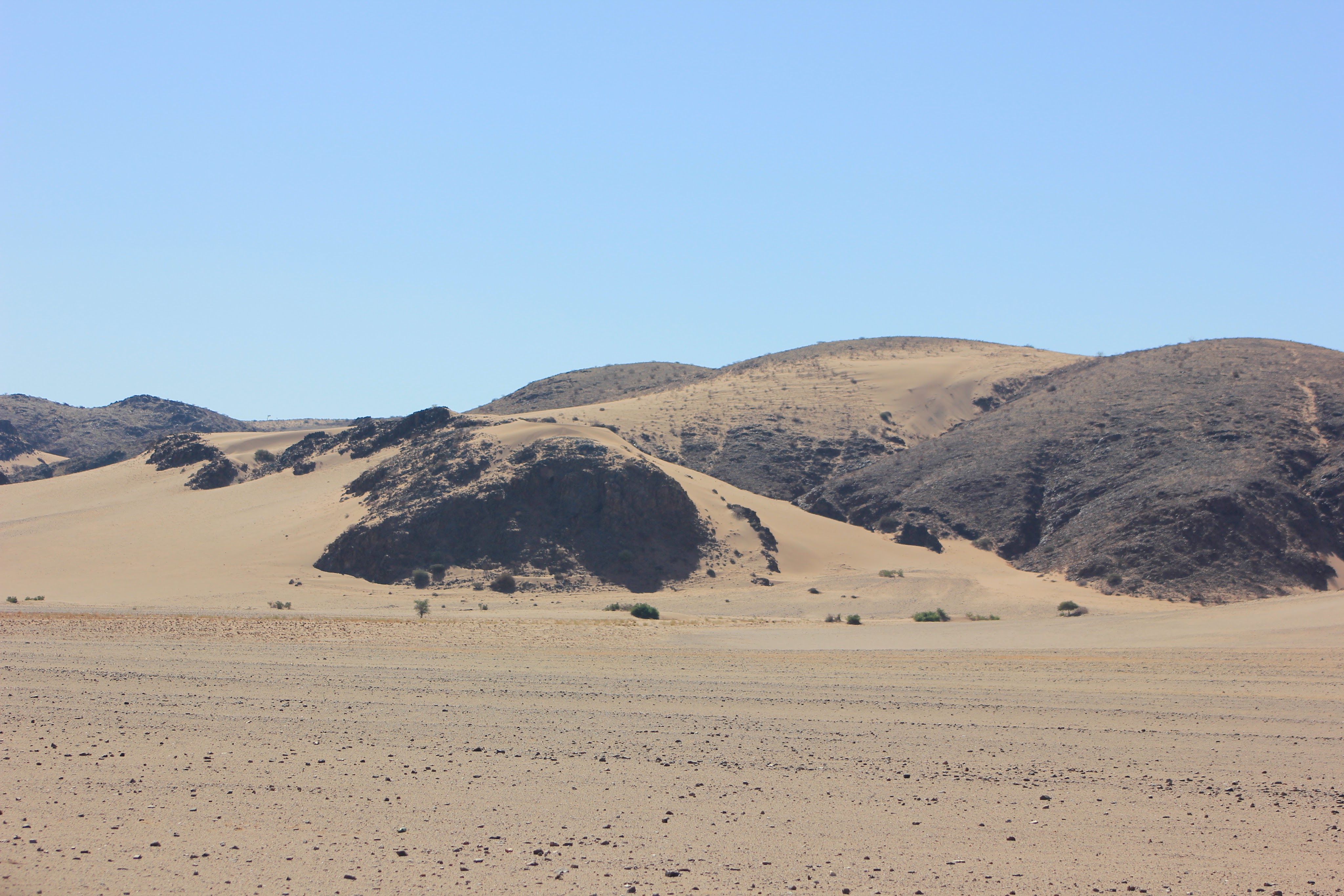 Nous passons par la Gate pour payer le parc et roulons en direction du Cayon de Sesriem. Nous avions envisagé de faire la visite du canyon mais avons loupé la piste alors ce sera pour une autre fois.