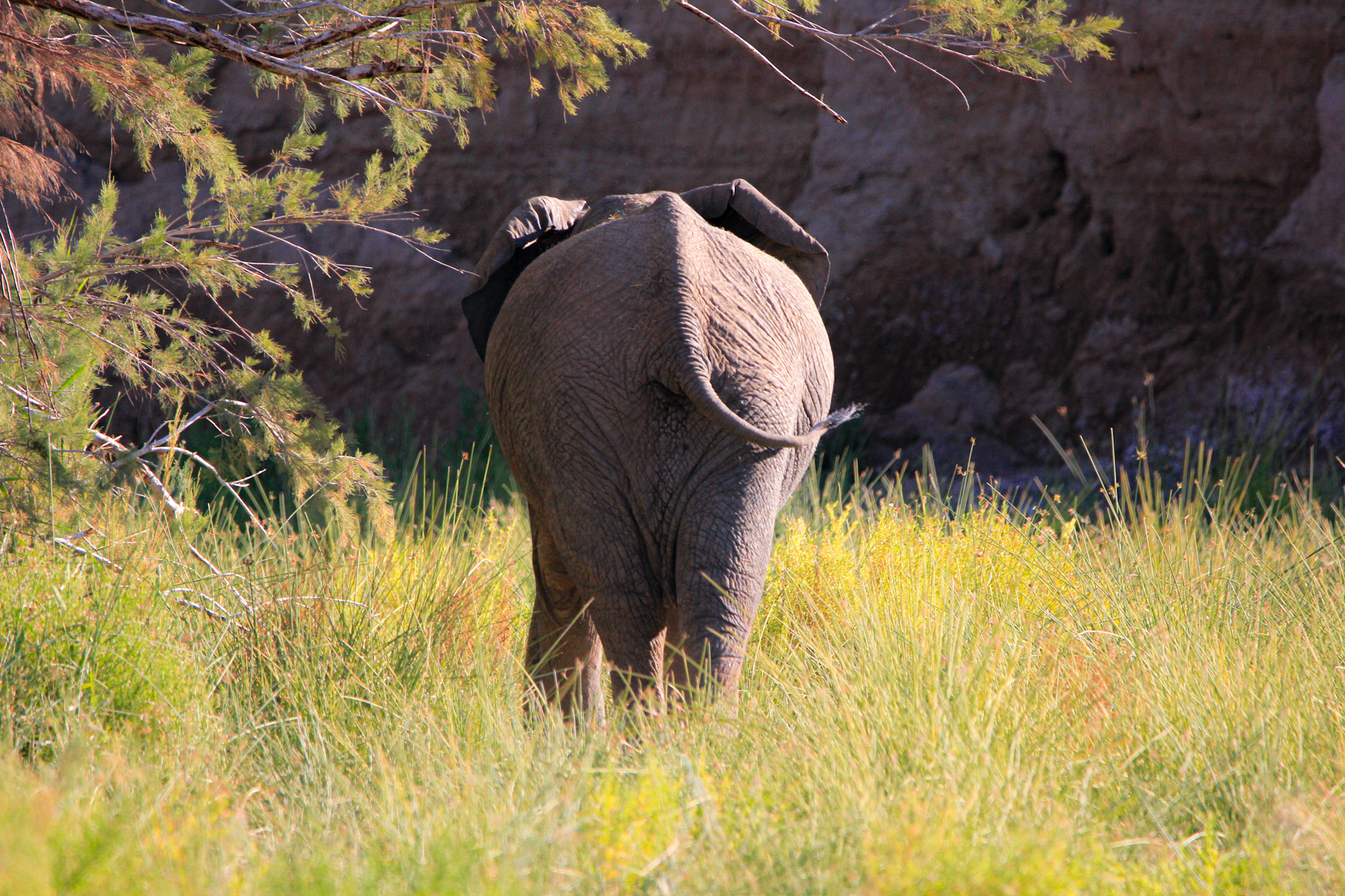 Nous pique-niquons au lodge et nous nous équipons (chaussures, gourde, chapeaux ) pour une balade jusqu’au fond de la vallée. Nous décidons de partir au pied des falaises sur la gauche et empruntons la Porkupine Highway. Nous admirons les formes de granit rouge ainsi que cette magnifique végétation, au niveau des animaux nous verrons uniquement des singes et des oiseaux.