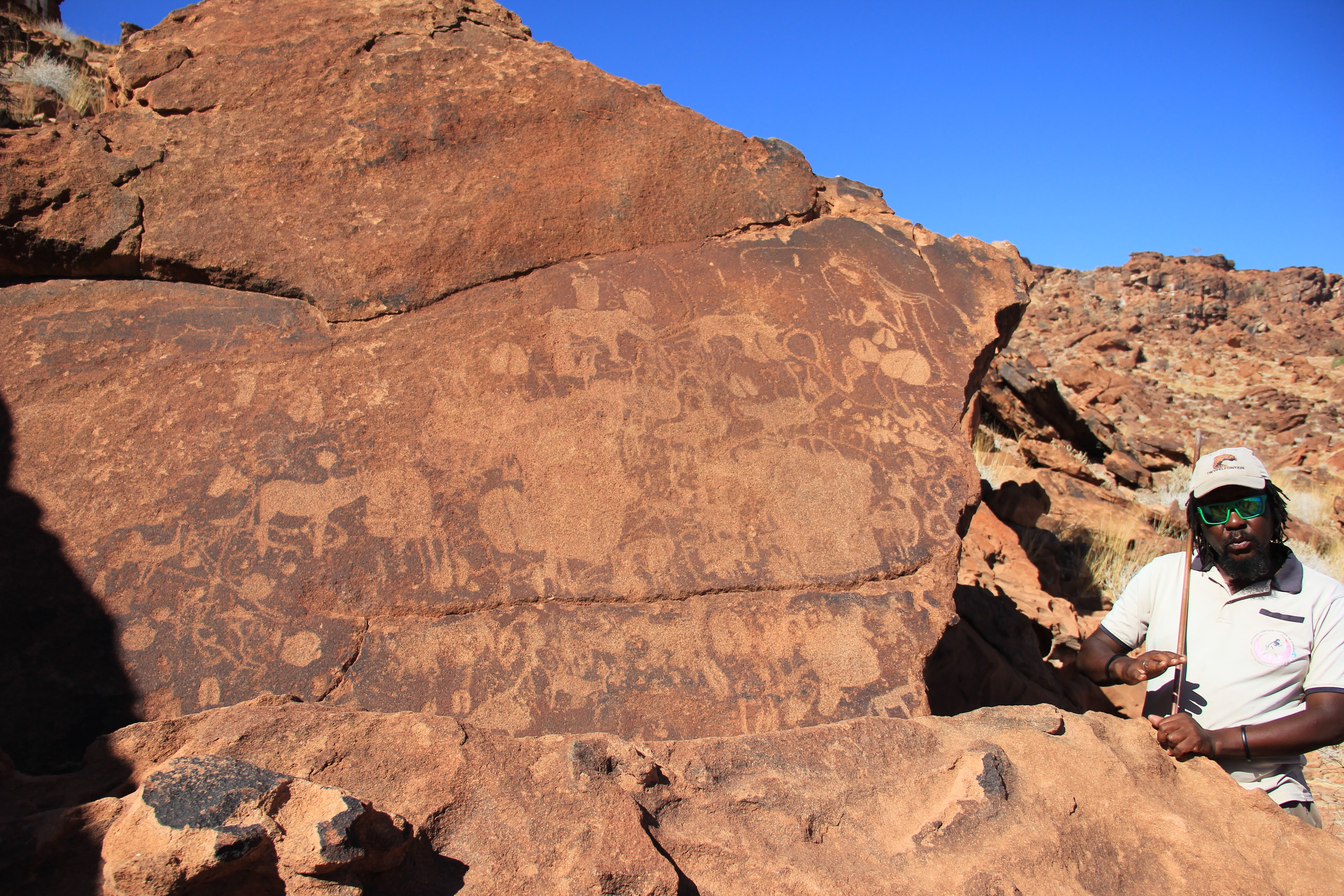 Après un magnifique petit-déjeuner, nous quittons à regret notre magnifique lodge. Nous nous rendons sur le site de Twyfelfontein, fontaine capricieuse en africaans. Vous trouverez en arrivant un immense parking et en suivant le sentier, une boutique de souvenirs avec la réception.