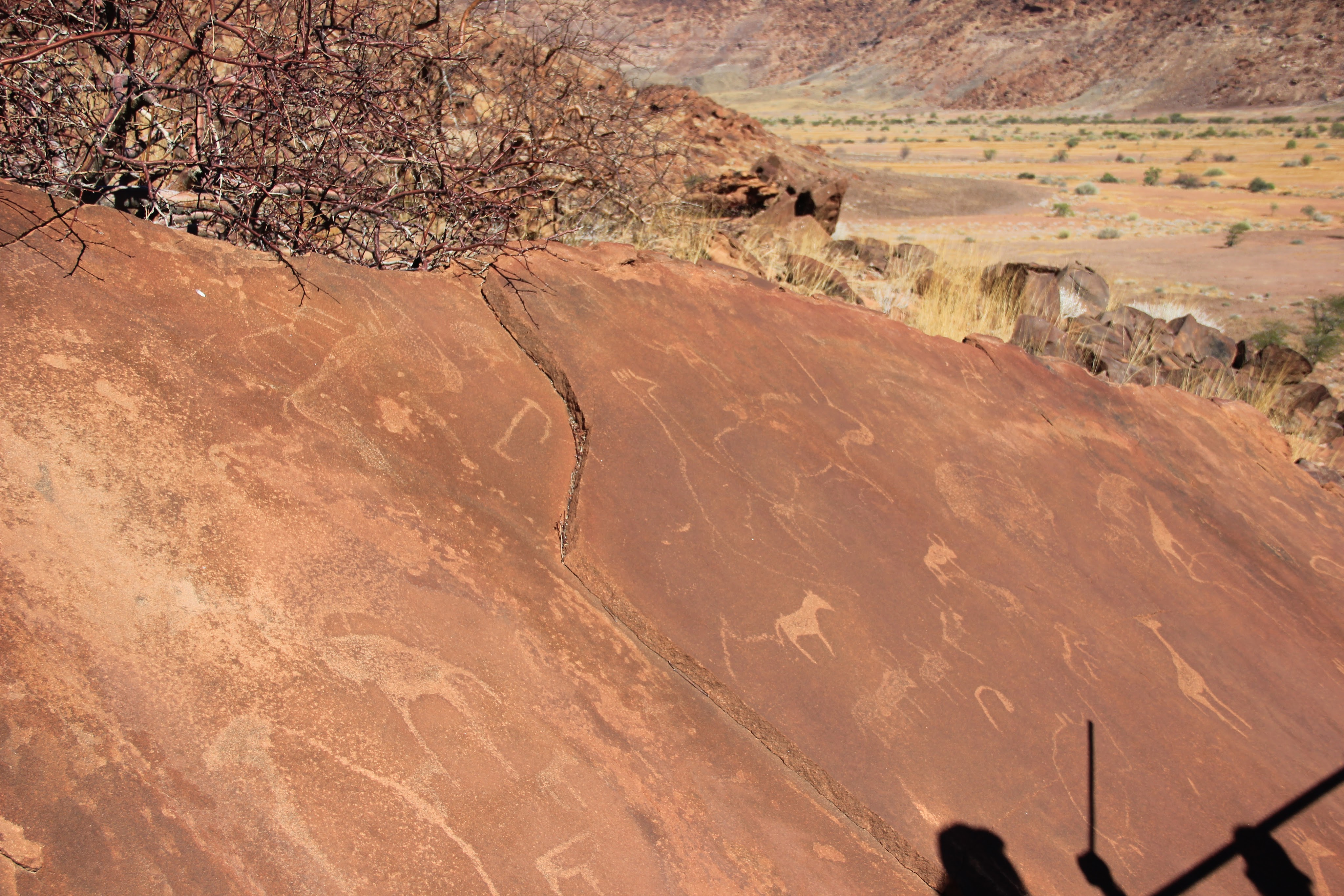 Selon notre guide, des fermiers blancs allemands fuyant la guerre se sont installés dans la vallée en 1947, mais ils ont été déçus de constater que la rivière s’asséchait souvent, de ce fait ils ont nommé le lieu Twyfelfontein.
