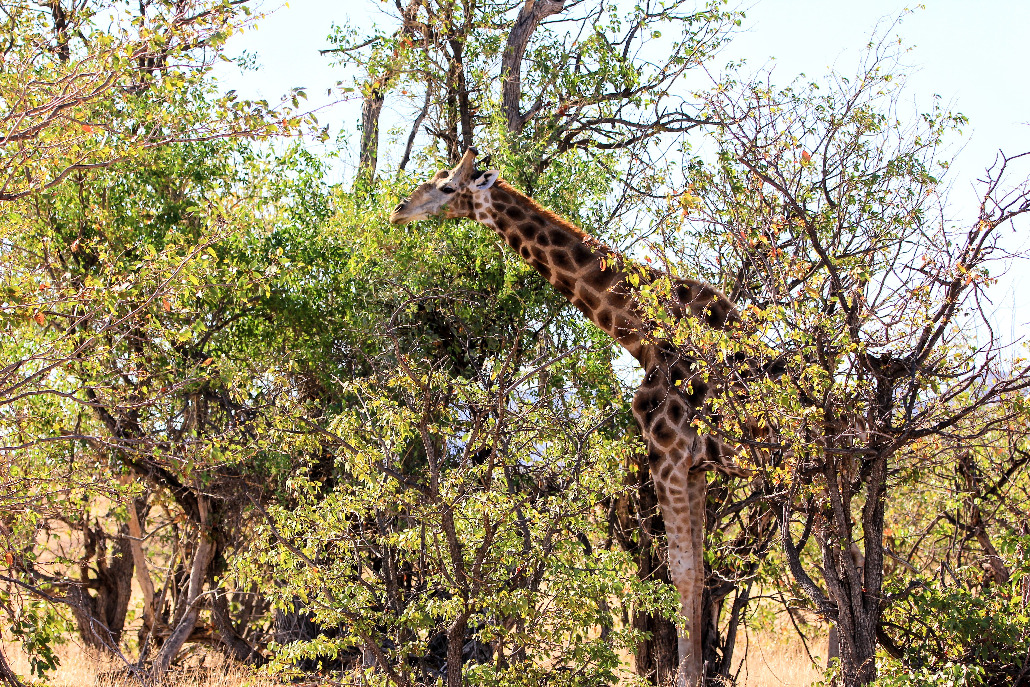 Nous laissons les éléphants, un petit coucou à un troupeau de girafes et nous faisons la longue ligne droite qui longe le Pan, direction la sortie du parc.