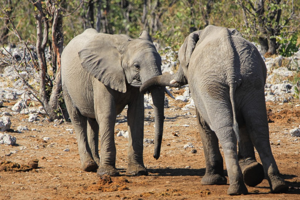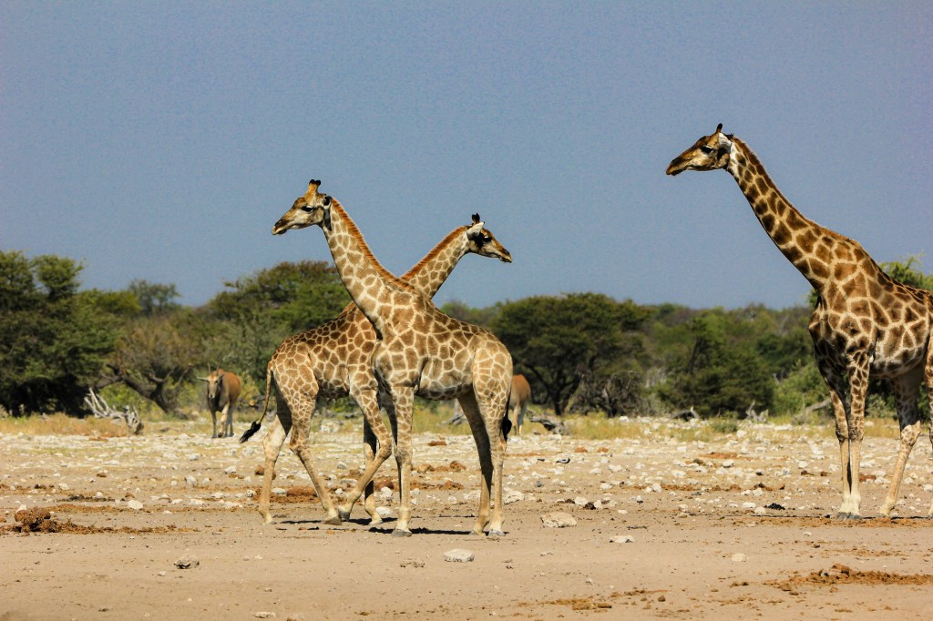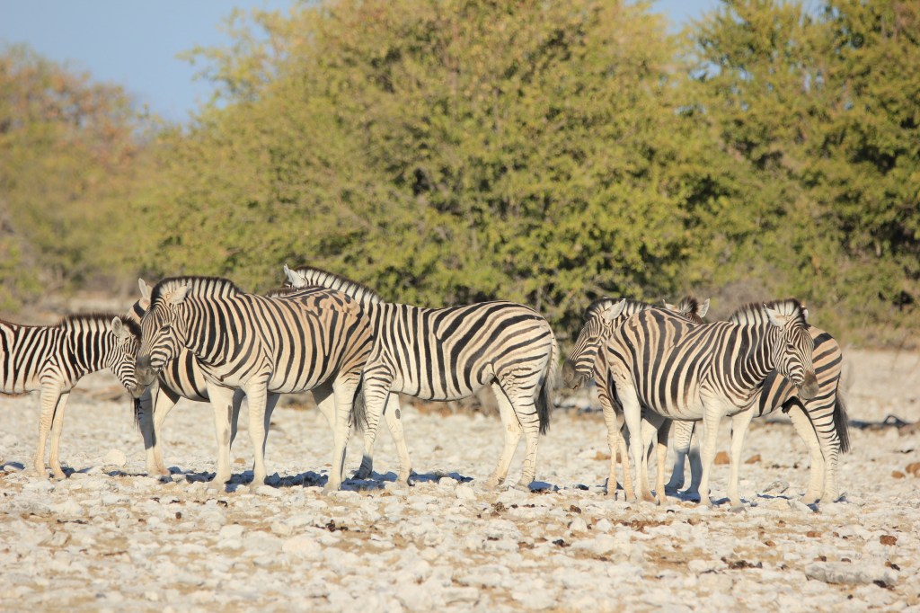 Il y a 3 grands repères dans le parc qui sont aussi des hôtels de la chaine NWR ( Namibien wildlife resorts) qui appartiennent à l’état, soit Okaukuejo – Namutoni – Halali . Le premier à l’ouest, le deuxième au sud et le troisième à l’est.