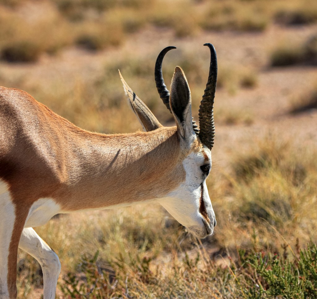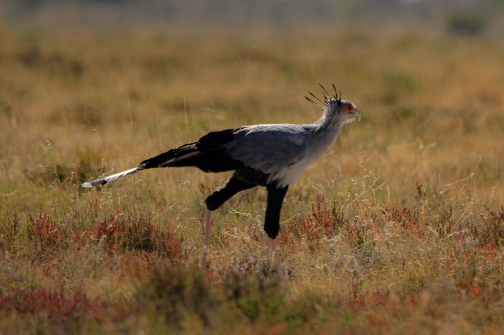Nous tentons un waterhole au bord du pan et une immense colonie de springboks nous attend, mais pas de fauve, nous nous consolons avec notre premier secretary bird et un magnifique paysage.