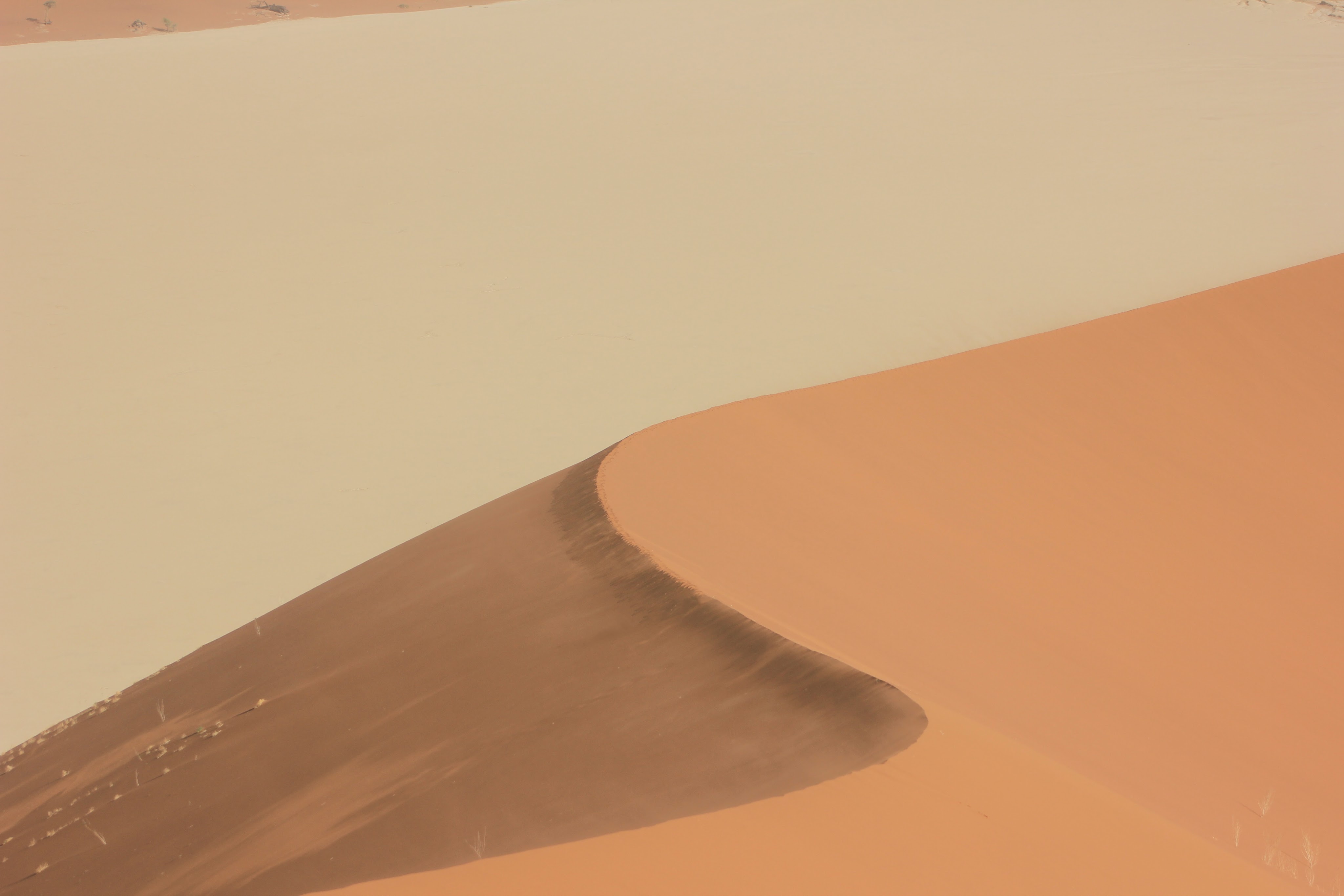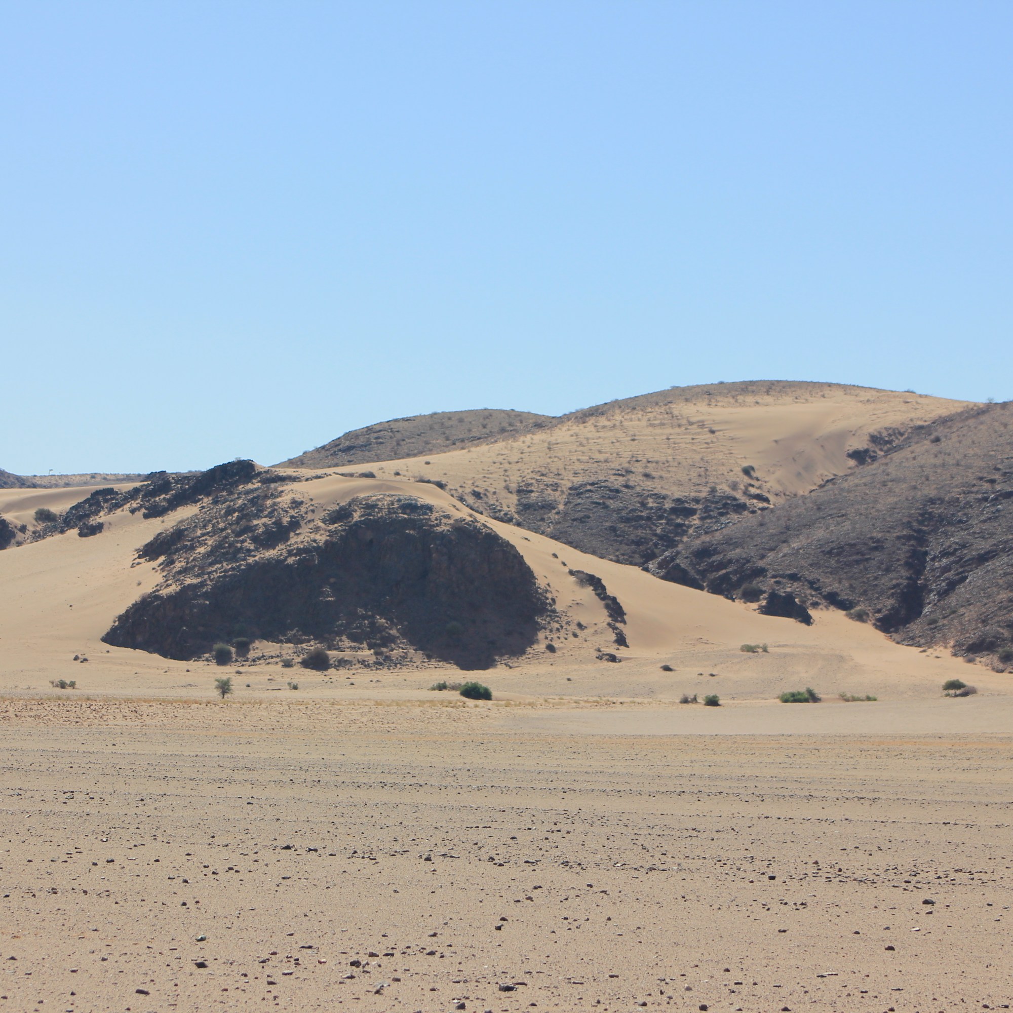 Ensuite nous changeons de route et nous partons en droite ligne direction l’ouest, l’océan et des dunes jaunes cette fois apparaissent progressivement. Elles sont en formation et progresse en direction de l’océan de 2m par an. Ce qui repousse au fil du temps Sandwich Harbour et le verra peut-être un jour disparaître.