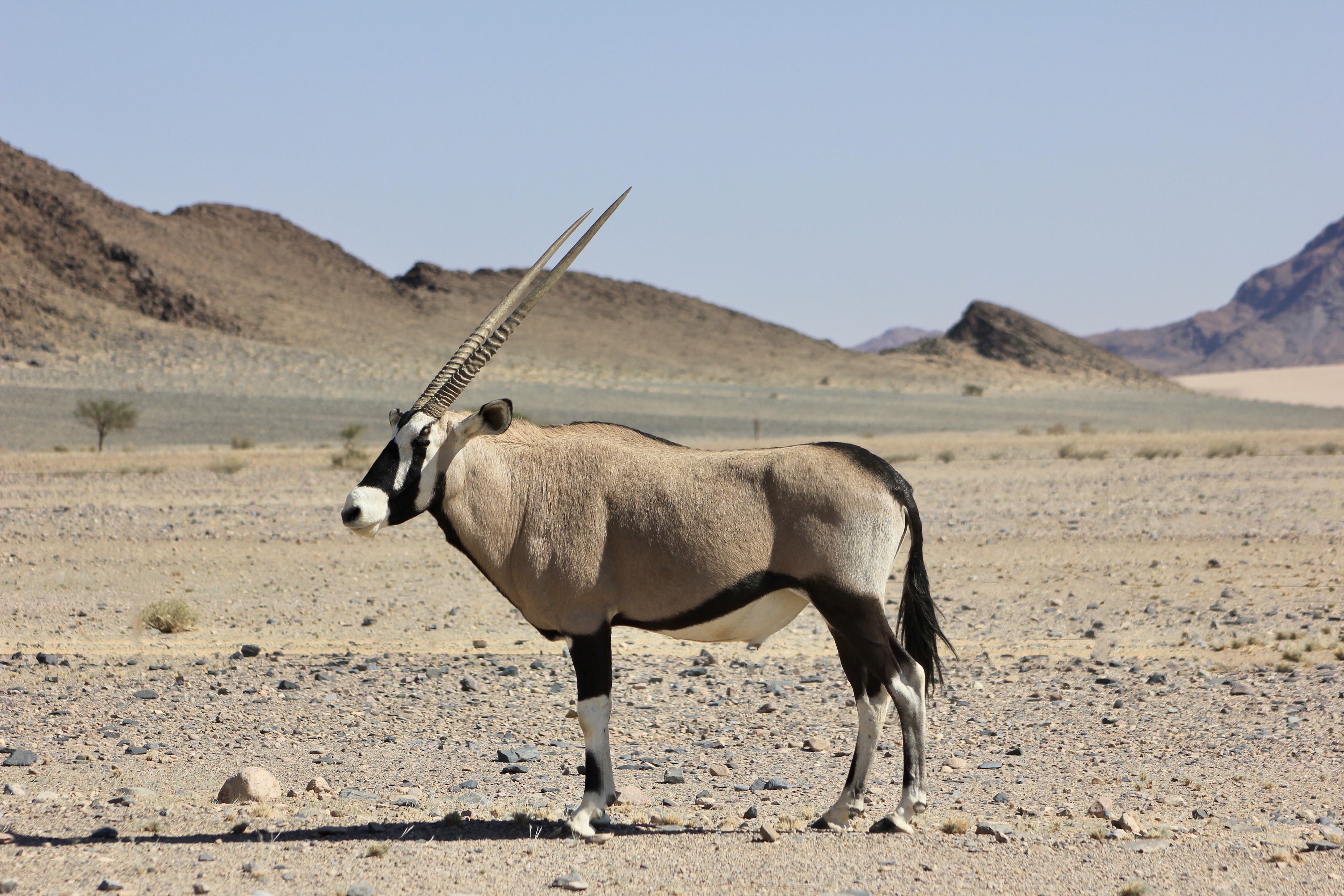 Départ pour le Mirage, un fort au milieu du désert du Namib, en route nous croisons notre premier oryx, qui a pris un malin plaisir à poser…
