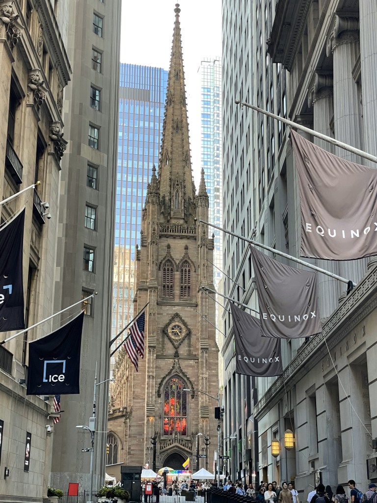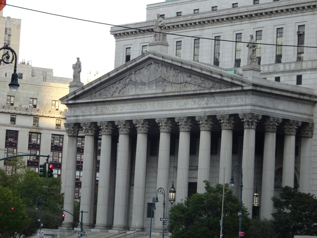 Nous décidons de prendre le bateau pour traverser l’Est River et nous faisons un petit détour pour se rendre devant le bâtiment de Wall Street, en remontant Manhattan nous passons devant la Trinity Church, Le Tribunal Pénal de l’Etat de New-York .