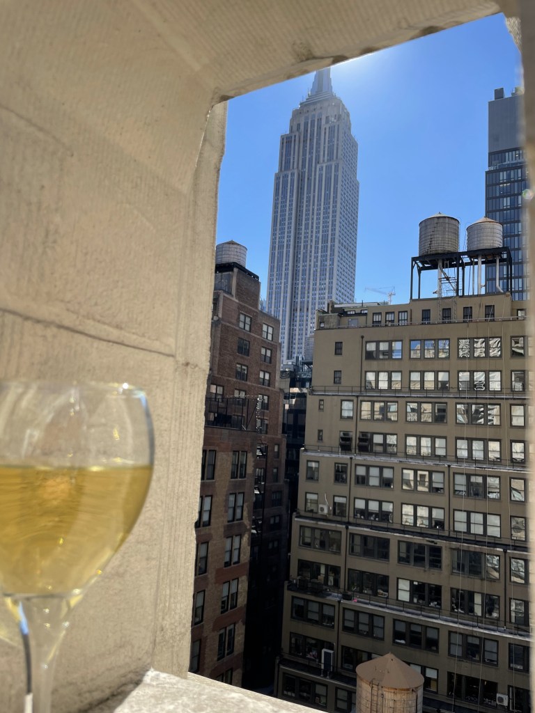 Nous avoisinons encore les 28’000 pas et décidons d’aller se poser sur un rooftop, nous choisissons le : https://230-fifth.com/ et c’était un excellent choix, vue imprenables sur l’Empire State Building. Petit vin blanc excellent avec tapas sympas, cela nous suffira pour passer une belle soirée!