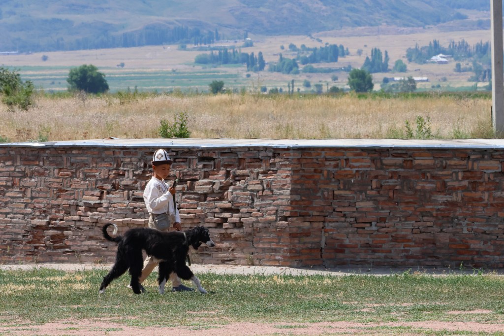 Puis c’est au tour des chiens kirghizes adaptés à la montagne et pouvant courir à plus de 60km/h, de vrais chasseurs mais des chiens super gentils, de faire le show.
