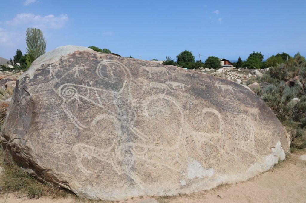 Mais avant de découvrir cette station balnéaire, un arrêt au musée ouvert de pétroglyphes qui s’étend sur 42 hectares où vous aurez le loisir d’admirer des pierres, des tombeaux, de balbals et divers pétroglyphes. Certains de ces pétroglyphes datent de la fin de l’âge du bronze soit 2’000 ans avant notre ère mais la plupart sont issus des tribus Saka-Usun et datent du VIII ème siècle.