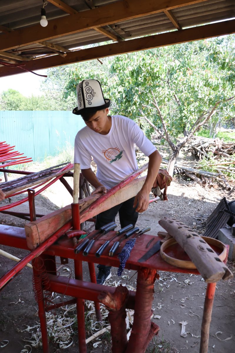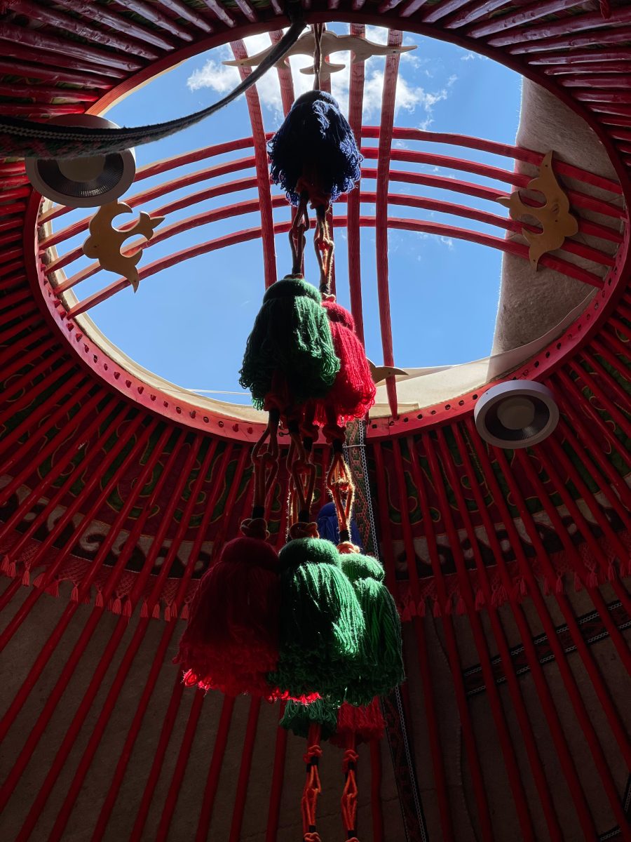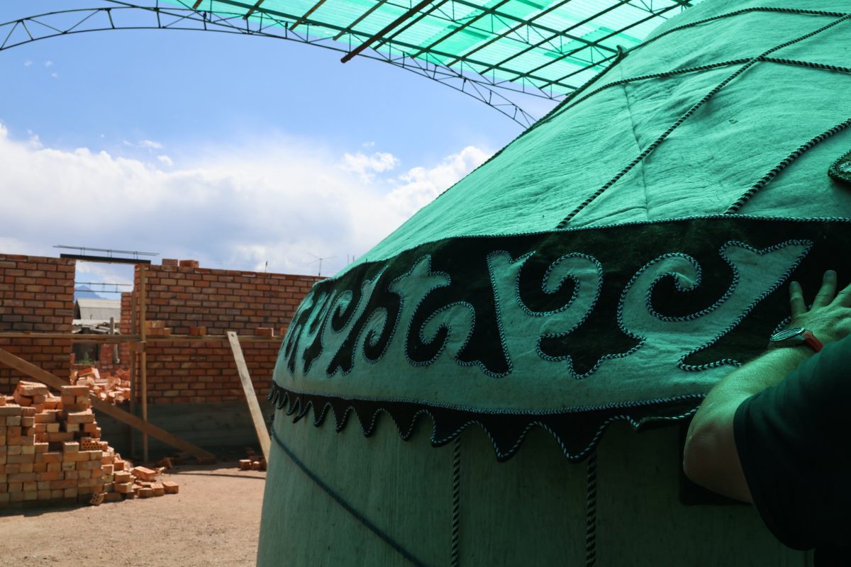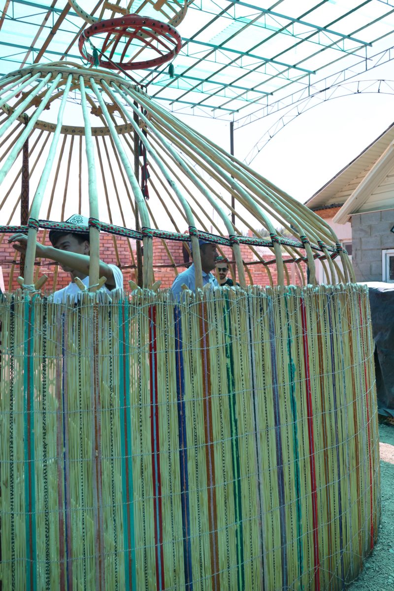 Cet après-midi sera sous le signe de la construction, au départ un jeune garçon nous explique comment on fabrique les pièces en bois, en cuir ou en laine qui constituent une yourte. C’était vraiment super intéressant ce savoir faire inchangé depuis des décennies (uniquement pour les yourtes traditionnelles, car maintenant il se fait de plus en plus de yourte avec une ossature métallique.) et ensuite nous avons tous monté les 150 pièces pour obtenir une belle yourte.