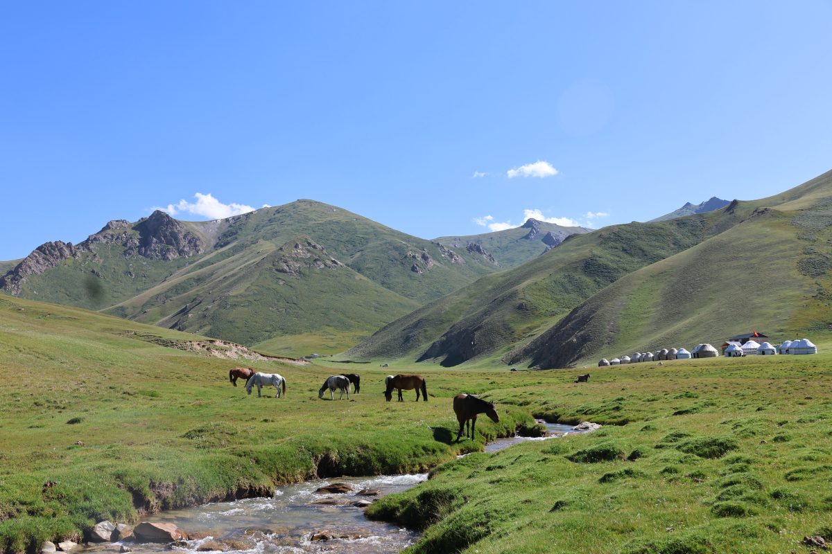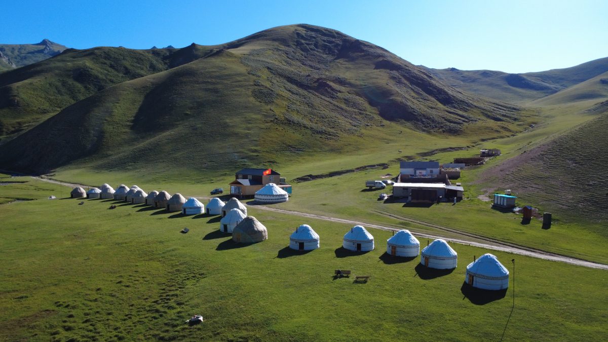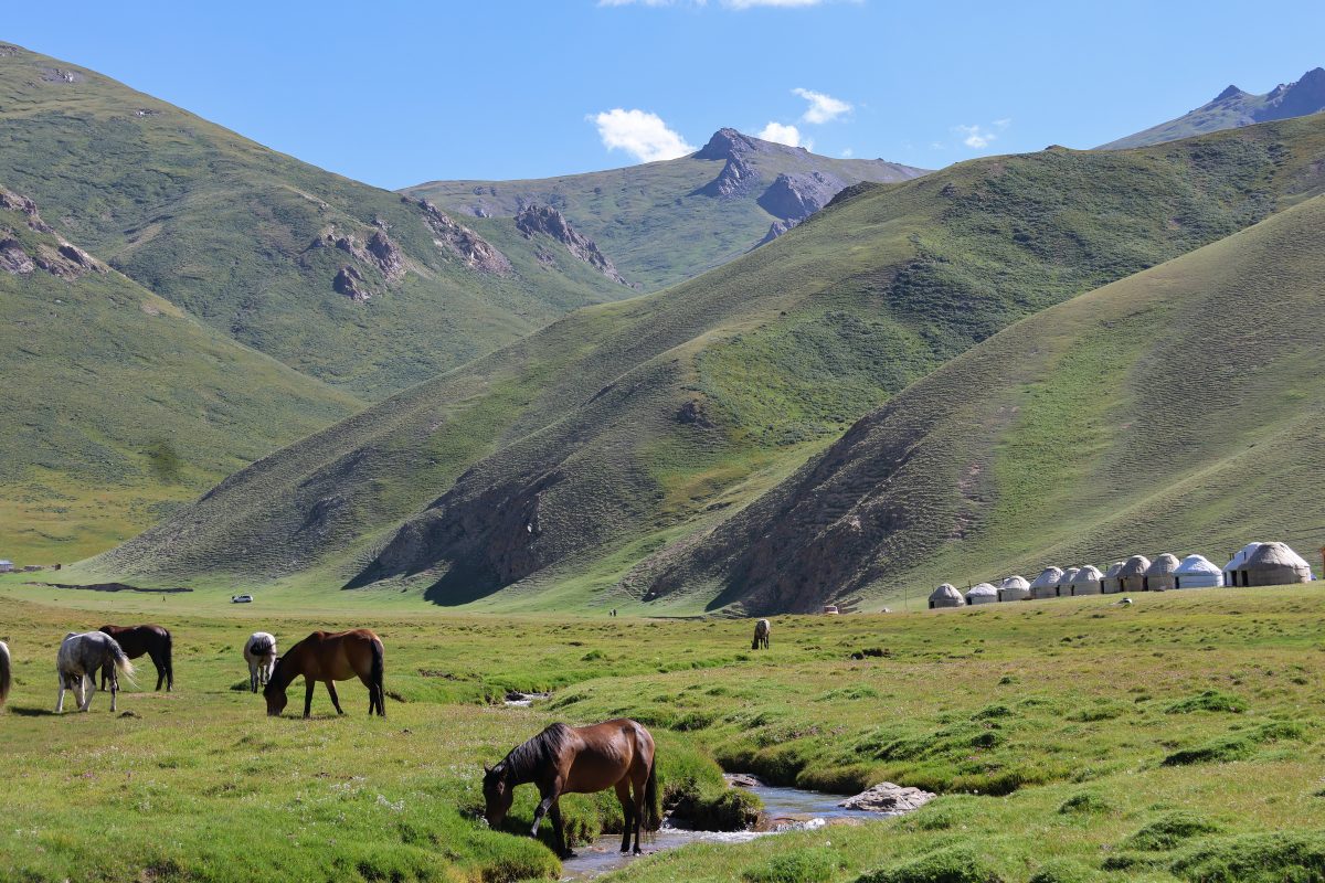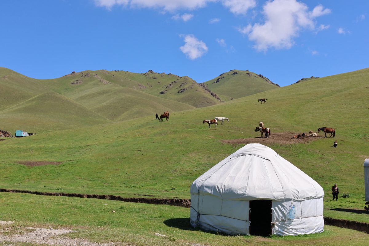 Le 90 % du territoire se situe à plus de 1’500m d’altitude, la chaine montagneuse du Tian Shan ajoute un magnifique arrière plan aux panoramas spectaculaires.