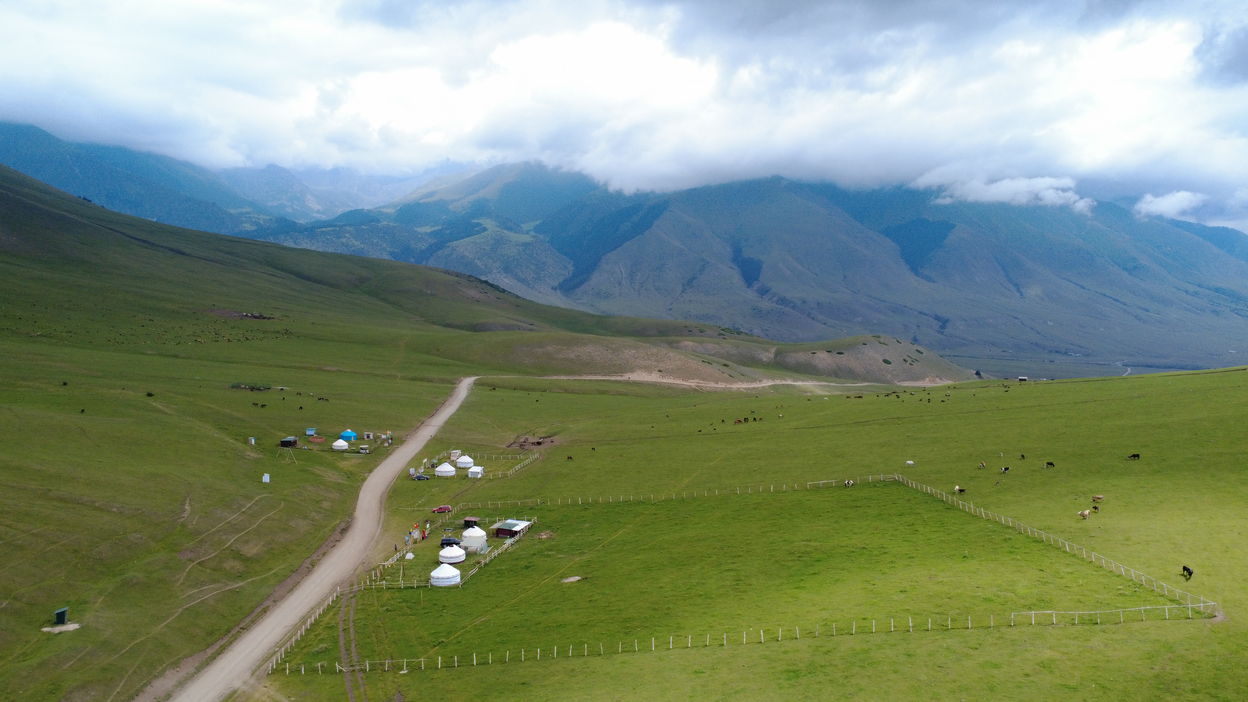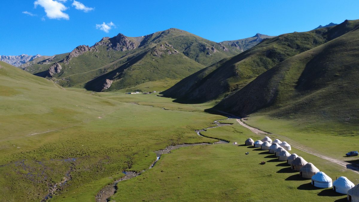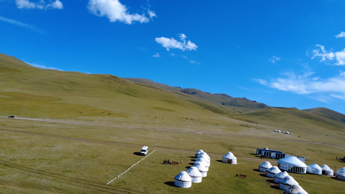 Le 90 % du territoire se situe à plus de 1’500m d’altitude, la chaine montagneuse du Tian Shan ajoute un magnifique arrière plan aux panoramas spectaculaires.