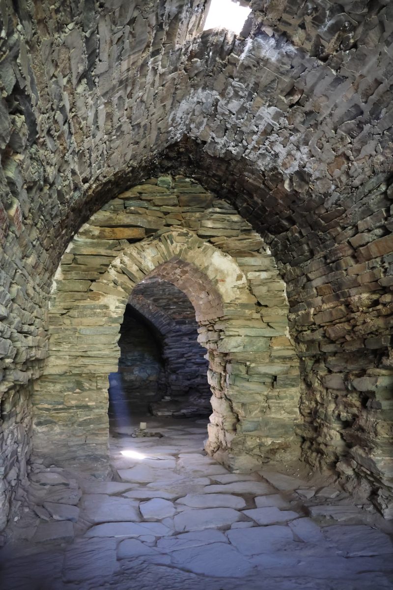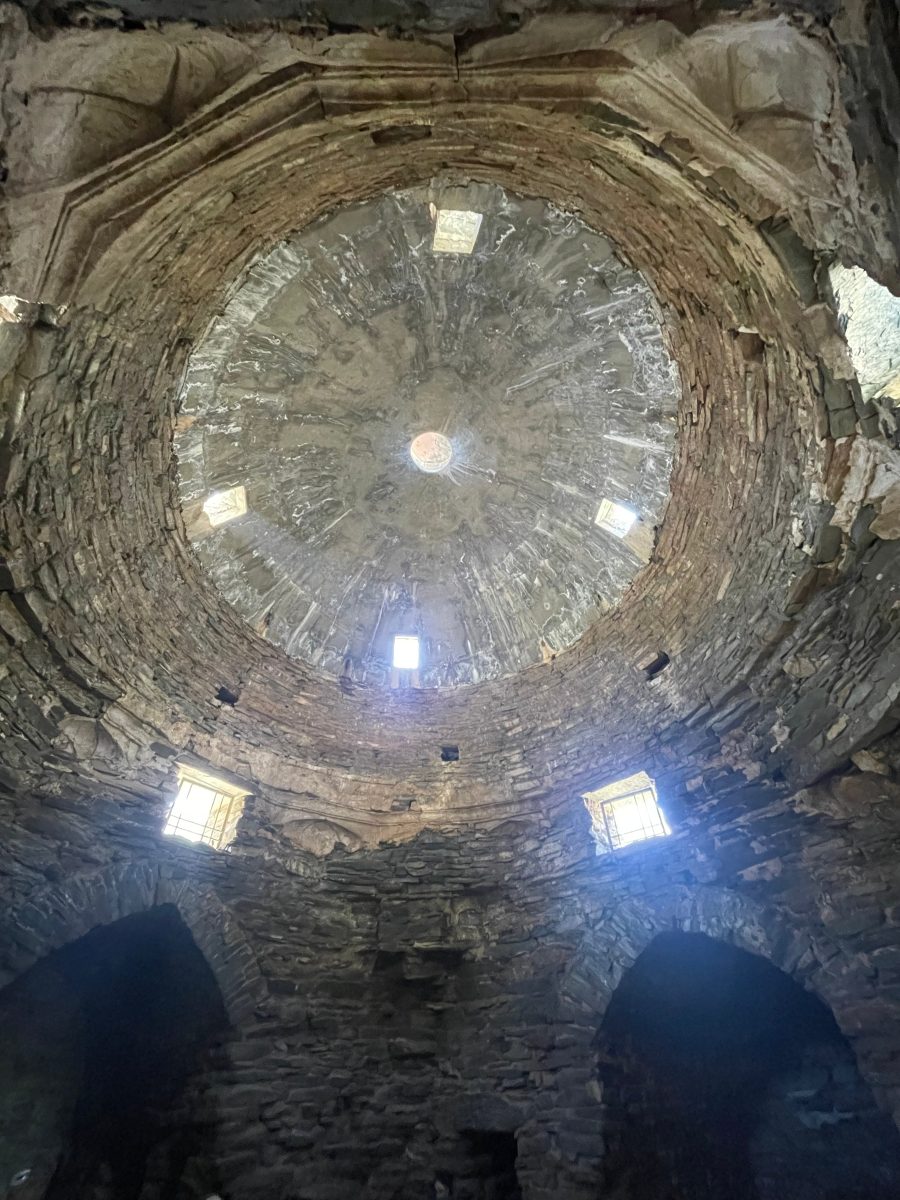 C’est une construction en pierres avec une grande pièce voûtée entourée de 30 pièces. Il est partiellement encastré dans la montagne, ce qui le rend particulièrement impressionnant. Ce lieu était une halte pour les voyageurs qui se rendaient d’Asie en Europe, ils s’y reposaient, se soignaient et faisaient du commerce.