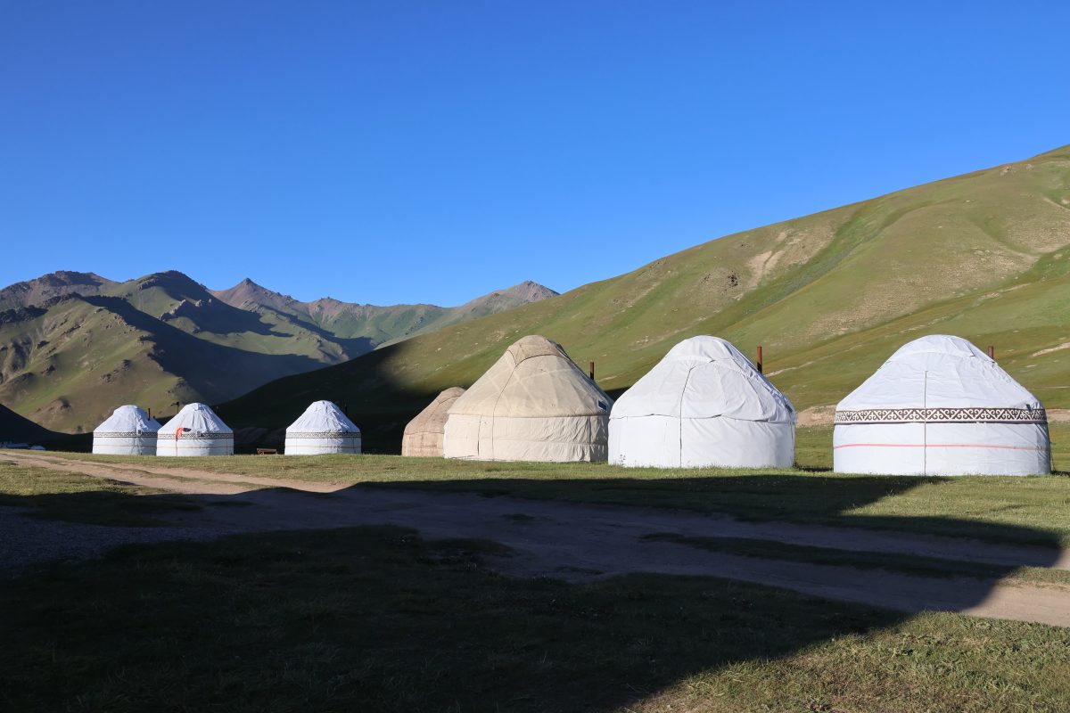 Toutes ces dominations ont laissé leurs empreintes tant sur la culture, le mélange dans la population que dans l’architecture. Traditionnellement les kirghizes vivent dans des yourtes, ce qui est encore le cas dans les montagnes, mais à contrario dans les grandes villes, nos yeux se heurtent à des monuments au style brutaliste soviétique. Souvent construits en béton, les théâtres, immeubles résidentiels, bâtiments gouvernementaux font la part belle à la fonctionnalité et au monumentalisme lié à l’image de l’URSS. Donc dire que les villes kirghizes sont belles seraient exagéré de mon point de vue mais elles sont intéressantes car elles reflètent à merveille l’histoire de son pays.
