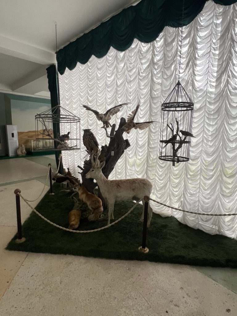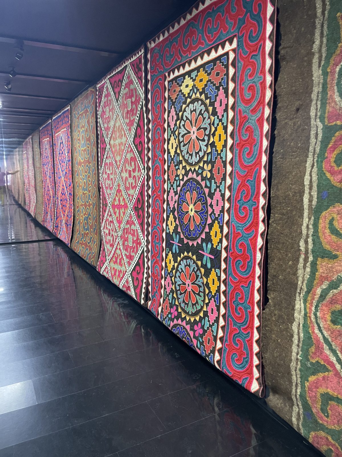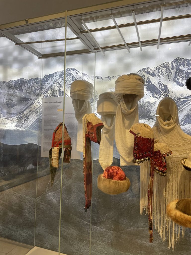 Longeant le parc un bâtiment imposant tranche la verdure et s’impose devant les sommets enneigés c’est le Musée d’Etat kirghize. Il contient des milliers d’objets exposés datant de l’Antiquitié à nos jours et retraçant le patrimoine culturel du peuple kirghize.