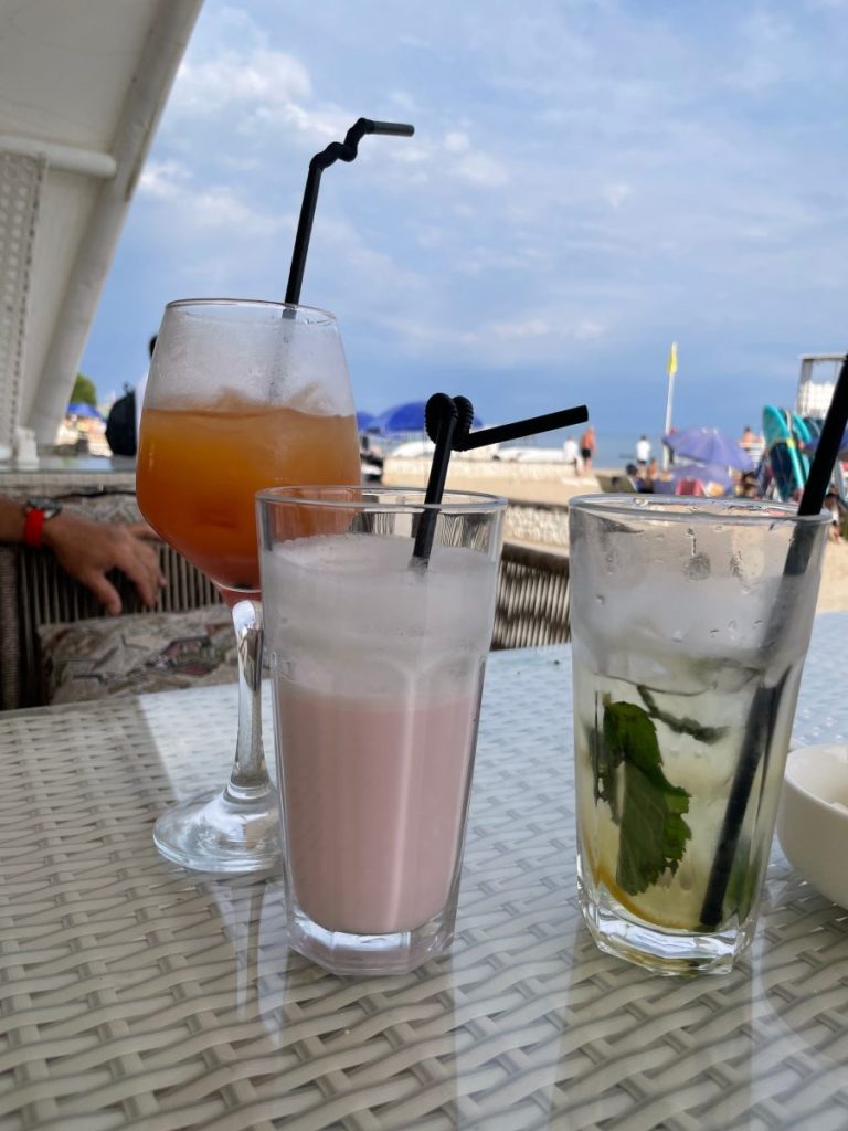PARCE QUE L’ON SE DIT TOUT on a voulu commander des cocktails, bhein oui l’ambiance s’y prêtait. Nous n’avons sans doute pas les codes, car après 10 min à attendre notre table en regardant les 5 serveurs discuter, j’ai tenté de demandé une carte. Ils m’en ont tendue 2 mais uniquement en cyrillique… heureusement j’avais des données à l’étranger et google … alors je repère mon cocktail 1ère ligne gauche, le deuxième est à la seconde colonne 5ème et les pistache sur l’autre page dernière ligne…je vais passer ma commande avec des gestes et mon décompte.