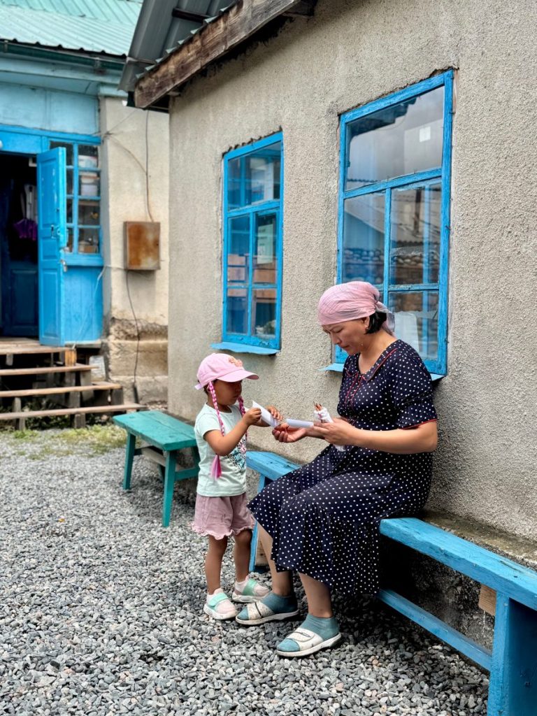 Quelle journée de fou … on a adoré tous ces moments departage et d’enchantement face aux beautés de la nature. Nous nous rendons à Kolchkor où nous passerons la nuit à la Guest house Mira. Nous avons bien mangé comme toujours, certains ont discuté avec une équipe de tournage d’une émission d’aventure, d’autres se sont lancés sur la confection d’avions en papier pour les enfants de la guesthouse. Ils ont ensuite passé un long moment à jouer et essayer de casser des bulles de savon avec leurs avions. Quelle belle soirée …