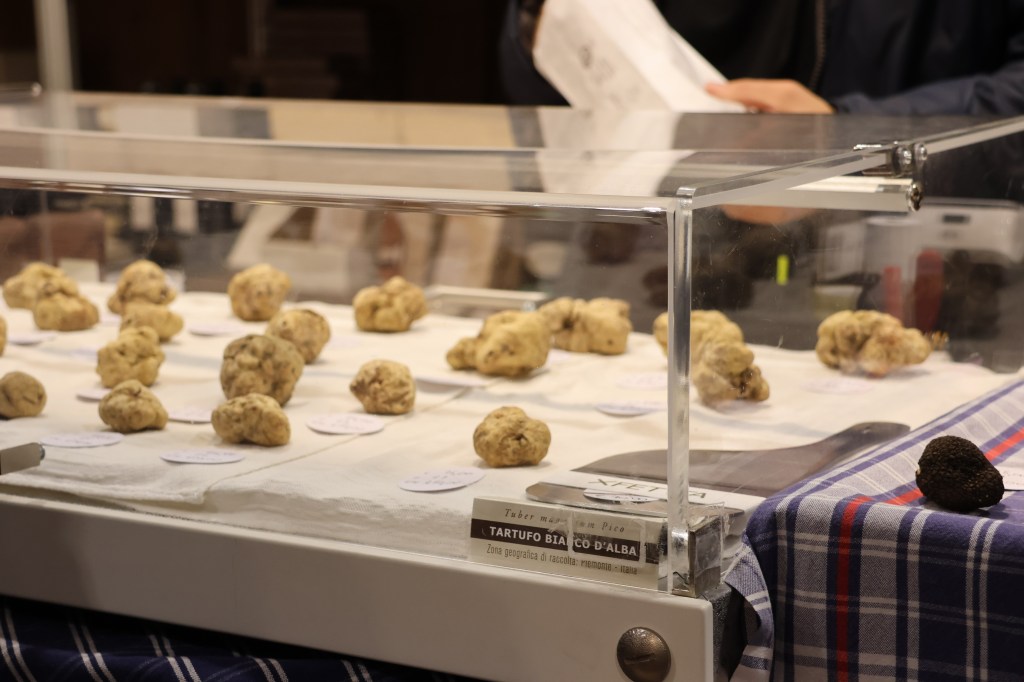 En allant au marché aux truffes, je vous conseille un petit détour par le Marché de la Terra qui a lieu le jeudi et le samedi sur la piazza Senatore Osvaldo Cagnasso. Vous y trouverez des fruits et des légumes mais aussi un excellent miel et les fameuses noisettes du Piémont que vous pourrez acheter directement du producteur. Elles seront moins chères que dans le marché aux truffes ou lors des dégustations de vins.