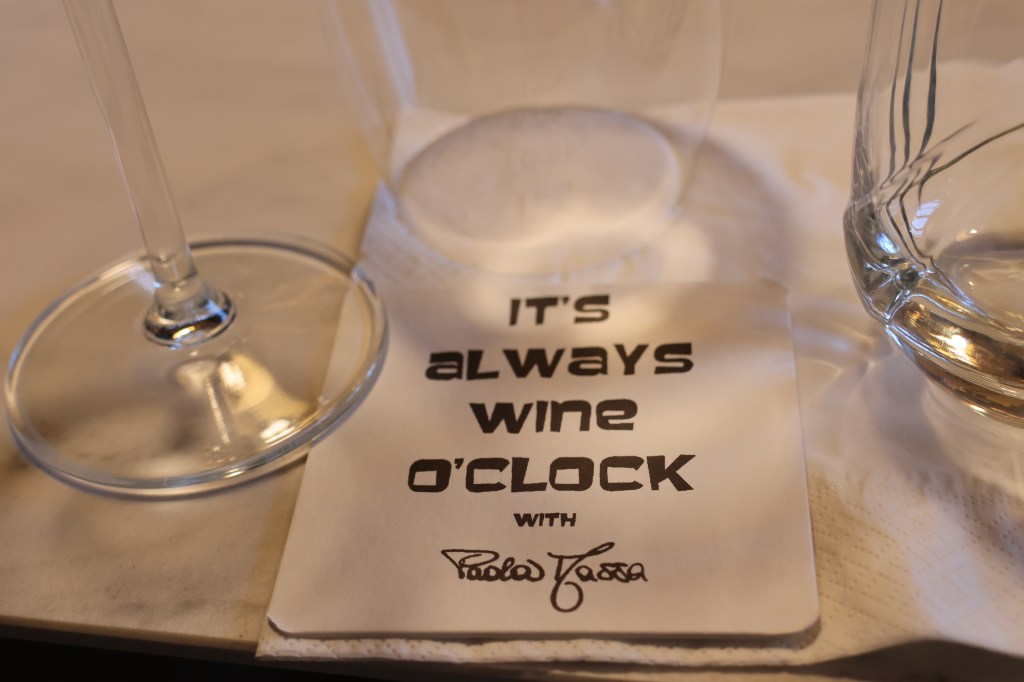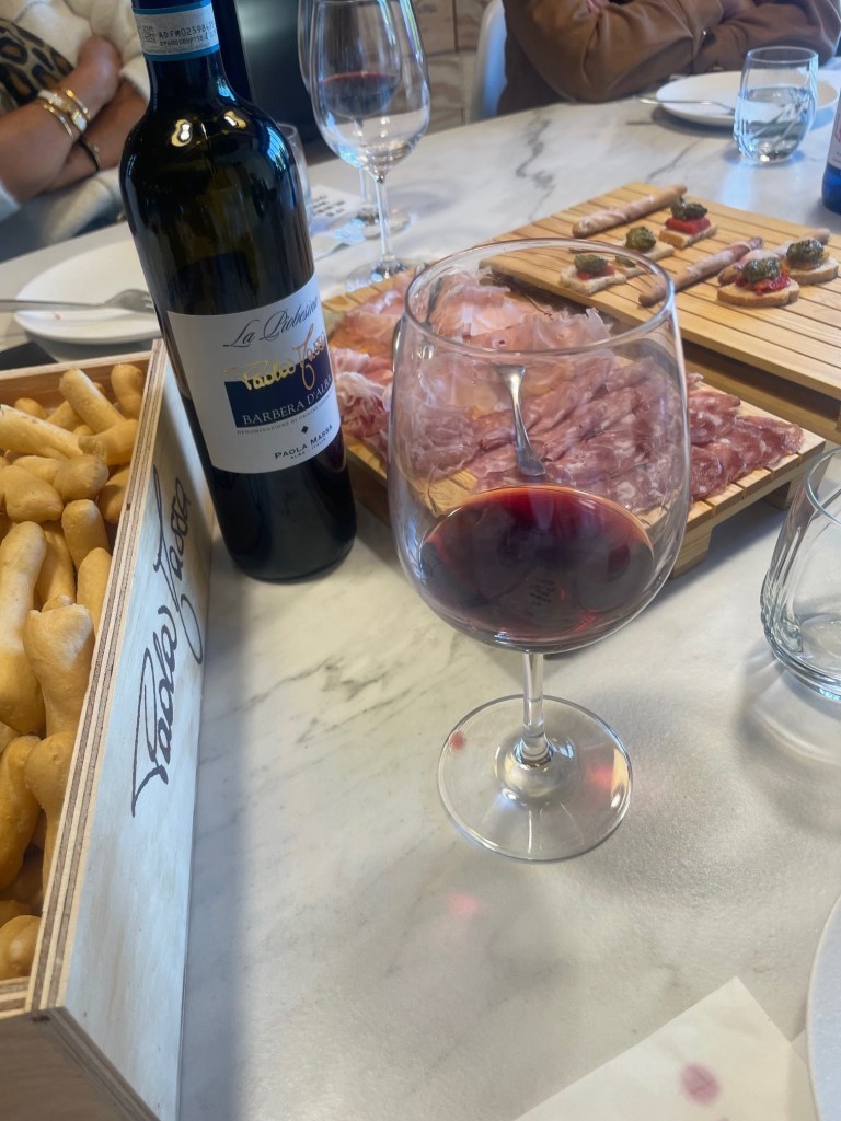 Les vins rouges tous accompagné de leurs amuse-bouche commencent par le dolcetto, le vin de tous les jours, puis le Barbera, le Nebbiolo ouvre les papilles des connaisseurs en attendant la star de la région le Barolo, on va finir par une touche sucrée pour adoucir la fin de la dégustation avec un Moscato d’Asti.