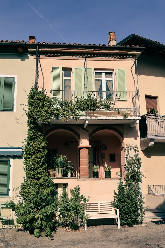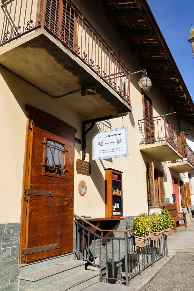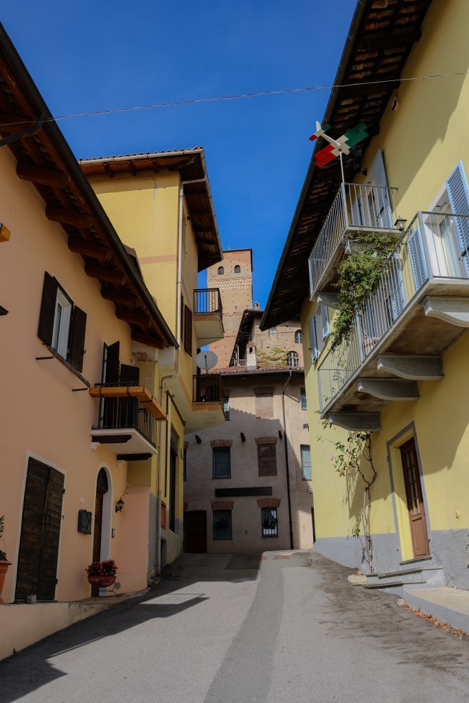 Nous nous rendons à la cave PIRA à Serralunga d’Alba, pendant que mes compagnons de voyage dégustent le vin, je pars en bonne compagnie me promener autour du village médiéval pittoresque de cette région du Piémont, au coeur des Langhe. Il domine un magnifique paysage que j’ai pu découvrir le jour d’avant lors de ma balade et qui est inscrit au patrimoine mondial de l’UNESCO.