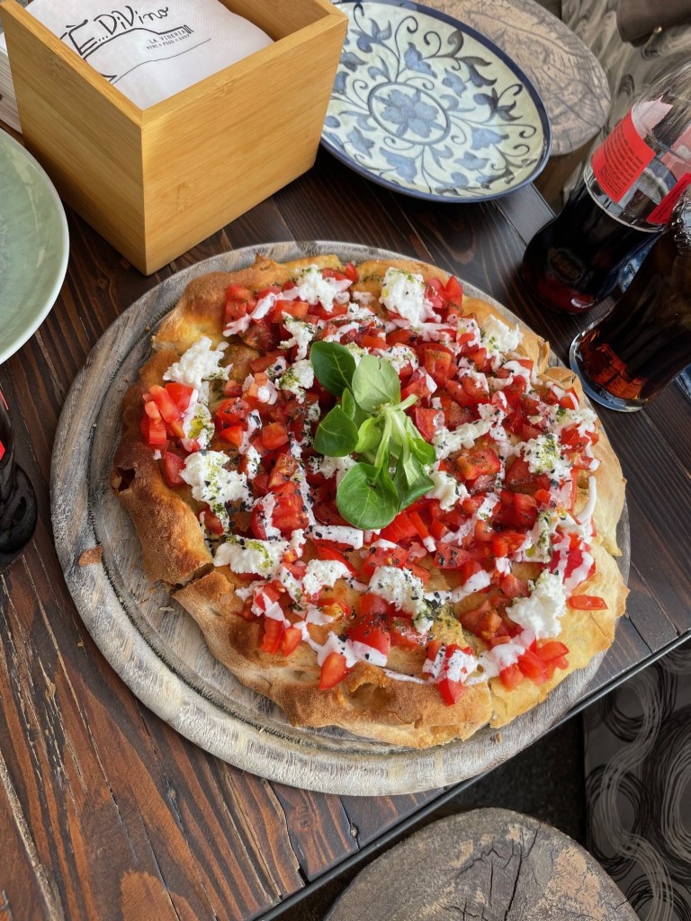 quelle région magnifique et quel soleil, monter dans les chemins argileux des coteaux est épuisant, une petite pause au milieu du village dans un bar à vin typique de la région, le E…DI VINO la Vineria. Et nous nous laissons tenter par une foccacia maison … un moment parfait…
