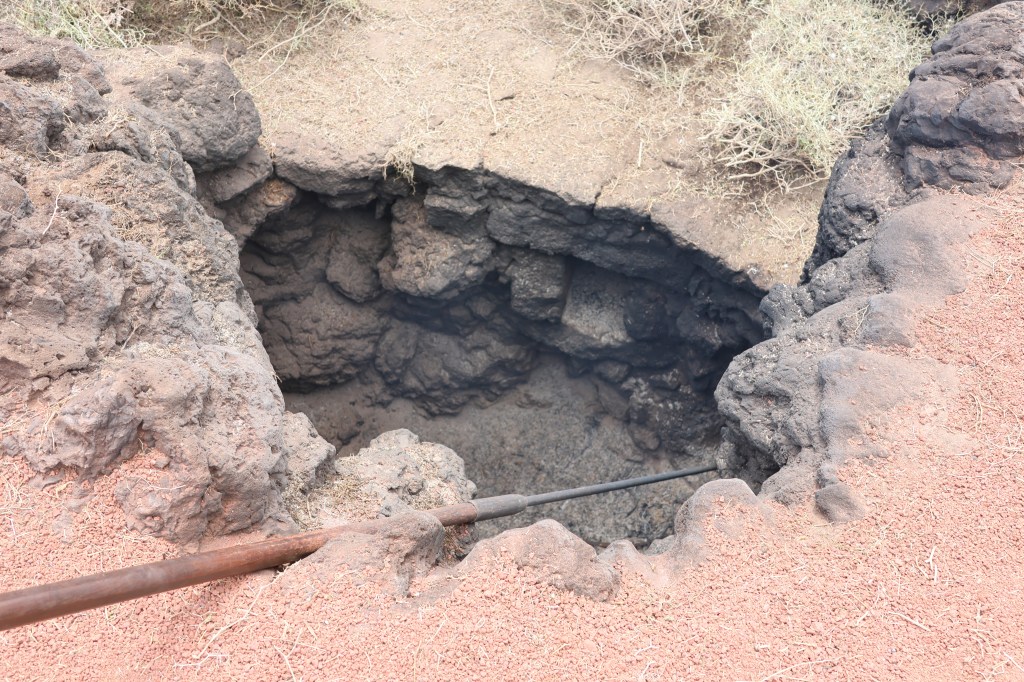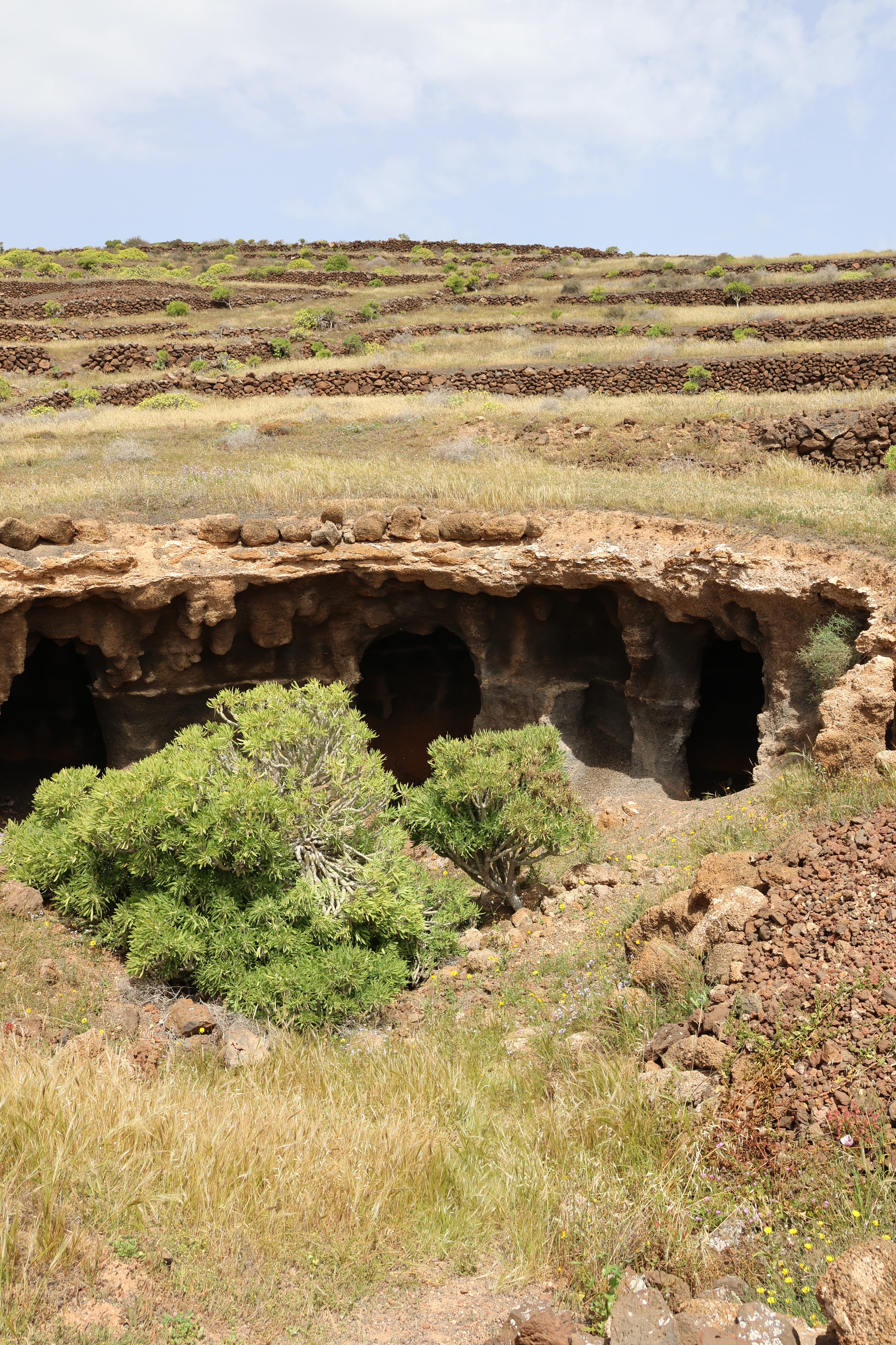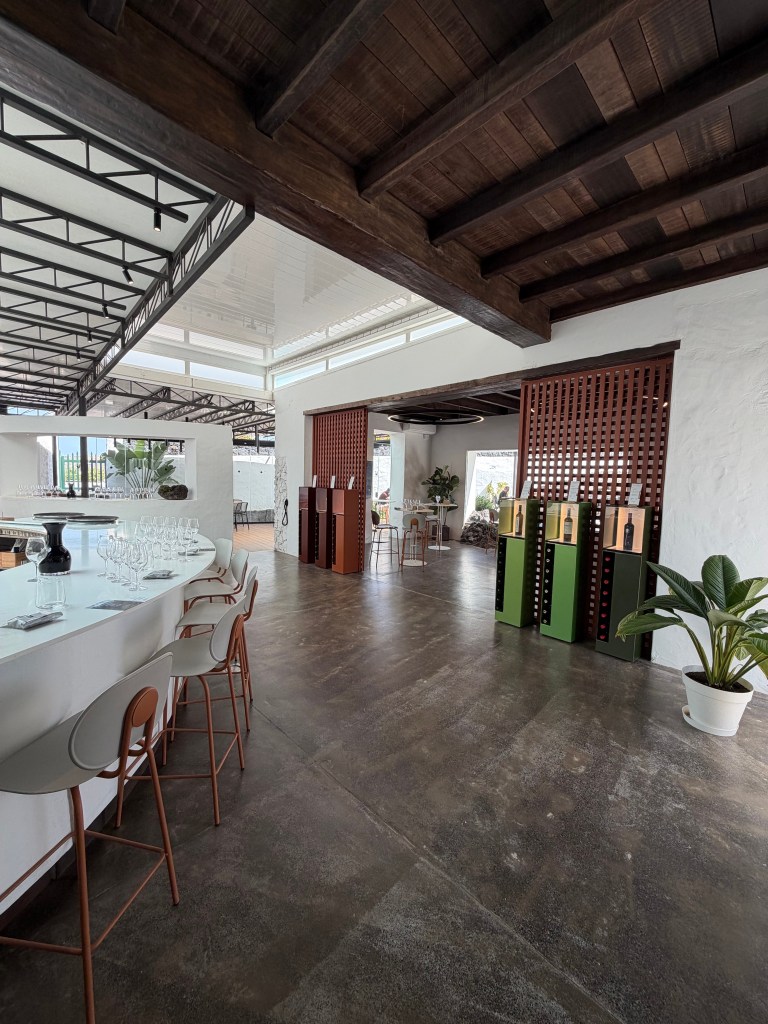 Nous avions ensuite rendez-vous dans une bodega au coeur de la Geria pour une dégustation de vin. Vous pouvez (si vous avez plus de temps que nous) vous arrêter à la Caldera colorada ou à la Caldera de los Cuervos, un ancien volcan dont on peut facilement en faire le tour à pied, puis entrer à l’intérieur du cratère par une ouverture naturelle. Le contraste entre les pentes sombres, le silence du lieu et la sensation d’être “au cœur du volcan” en font une expérience immersive et assez unique. Malgré l’aridité, une petite vie végétale s’y est installée, preuve de la lente reconquête de la nature après les éruptions.