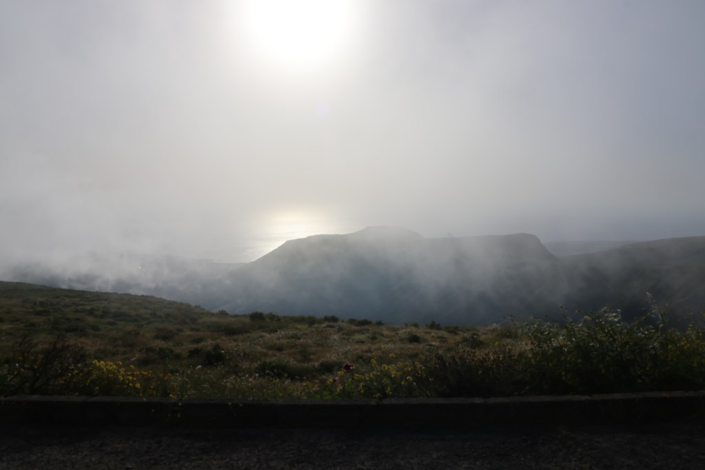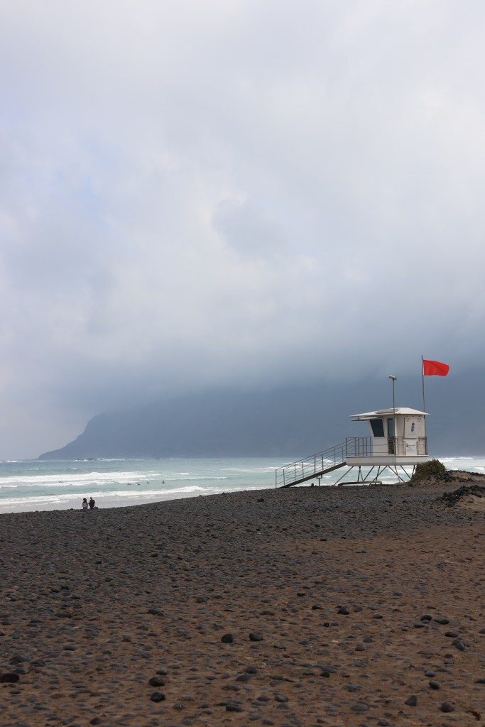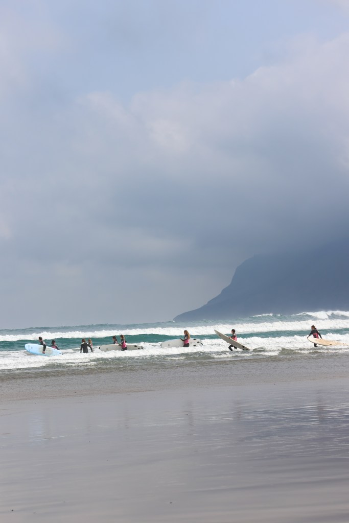 Direction la plage de Famara et ses majestueuses falaises, toujours accompagnées de la brume qui là pour une fois donne une ambiance sympa à la plage remplie d’école de surf.
