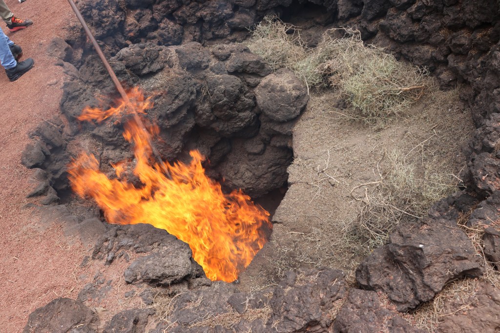 Départ pour le Parc National de Timanfaya et les fameuses Montañas del Fuego. Nous avions décidé de faire le tour en bus avec des explications sur ces volcans ainsi qu’une démonstration de cuisson avec la chaleur géothermique.