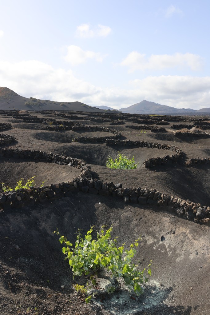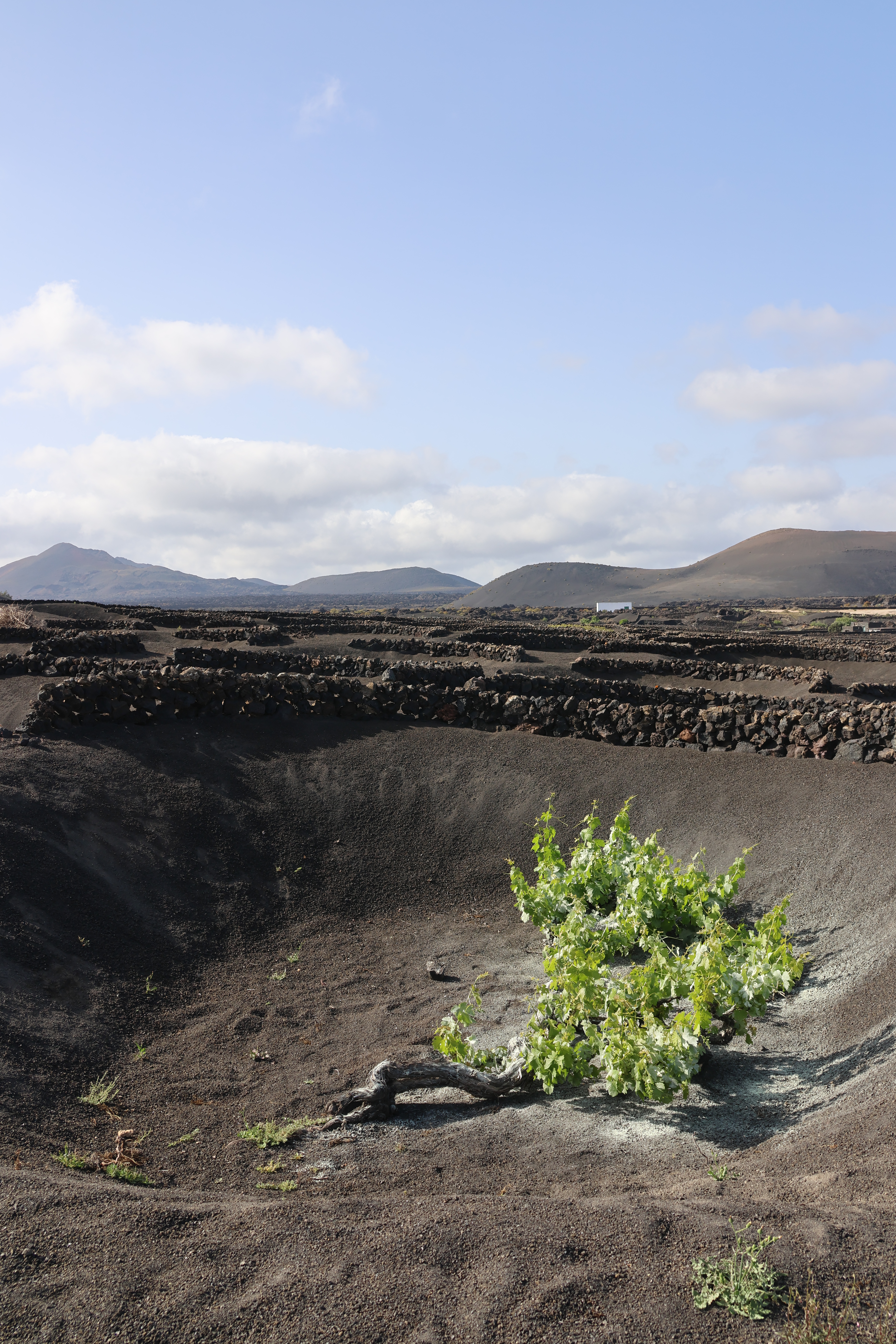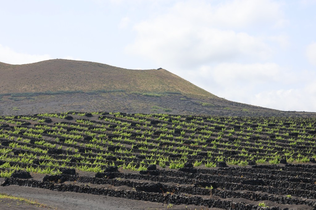 La Geria est une région viticole unique au monde. Elle se distingue par son paysage étonnant de vignes plantées dans des trous creusés dans la cendre volcanique noire, appelés zocos, protégés du vent par de petits murets de pierre.