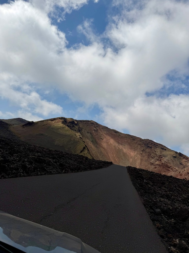 Arrivées enfin au bout de l’heure d’attente , nous parquons et embarquons rapidement dans un bus qui nous emmènent dans le Parc national de Timanfaya qui est l’un des paysages volcaniques les plus spectaculaires d’Europe. Les coulées de laves, dues aux éruptions survenues entre 1730 et 1736, puis en 1824, ont créer des montagnes, des amas et des cratères magnifiques.