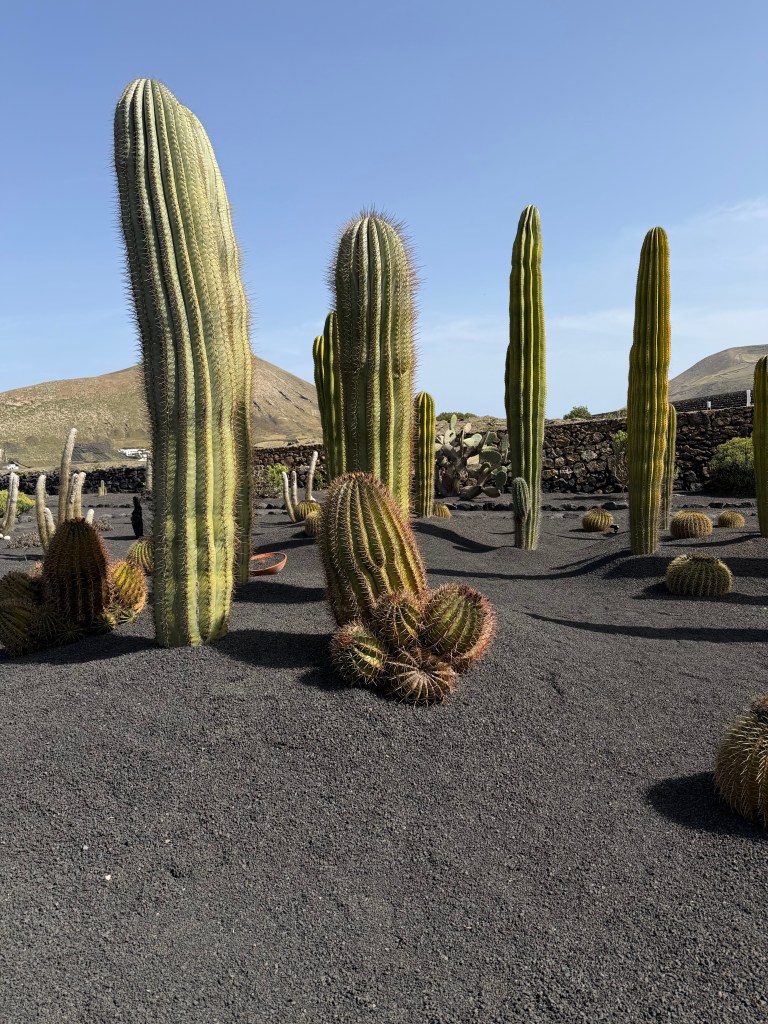Lanzarote est avant tout une île volcanique, façonnée par des éruptions spectaculaires, notamment celles du XVIIIe siècle . Dans le sud, nous avons découvert l’impressionnant Parc national de Timanfaya, où les champs de lave s’étendent à perte de vue. On y ressent encore la puissance des volcans : la terre y est chaude, sombre, presque irréelle, comme si elle venait tout juste de se solidifier.