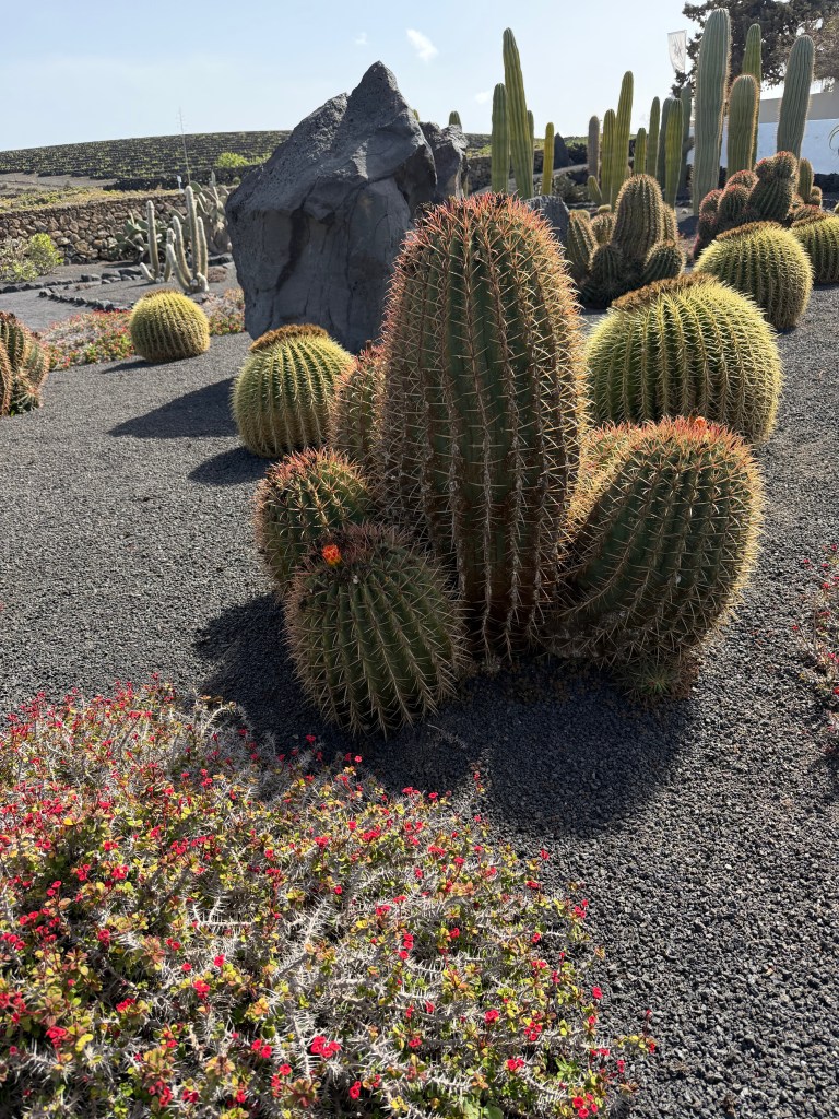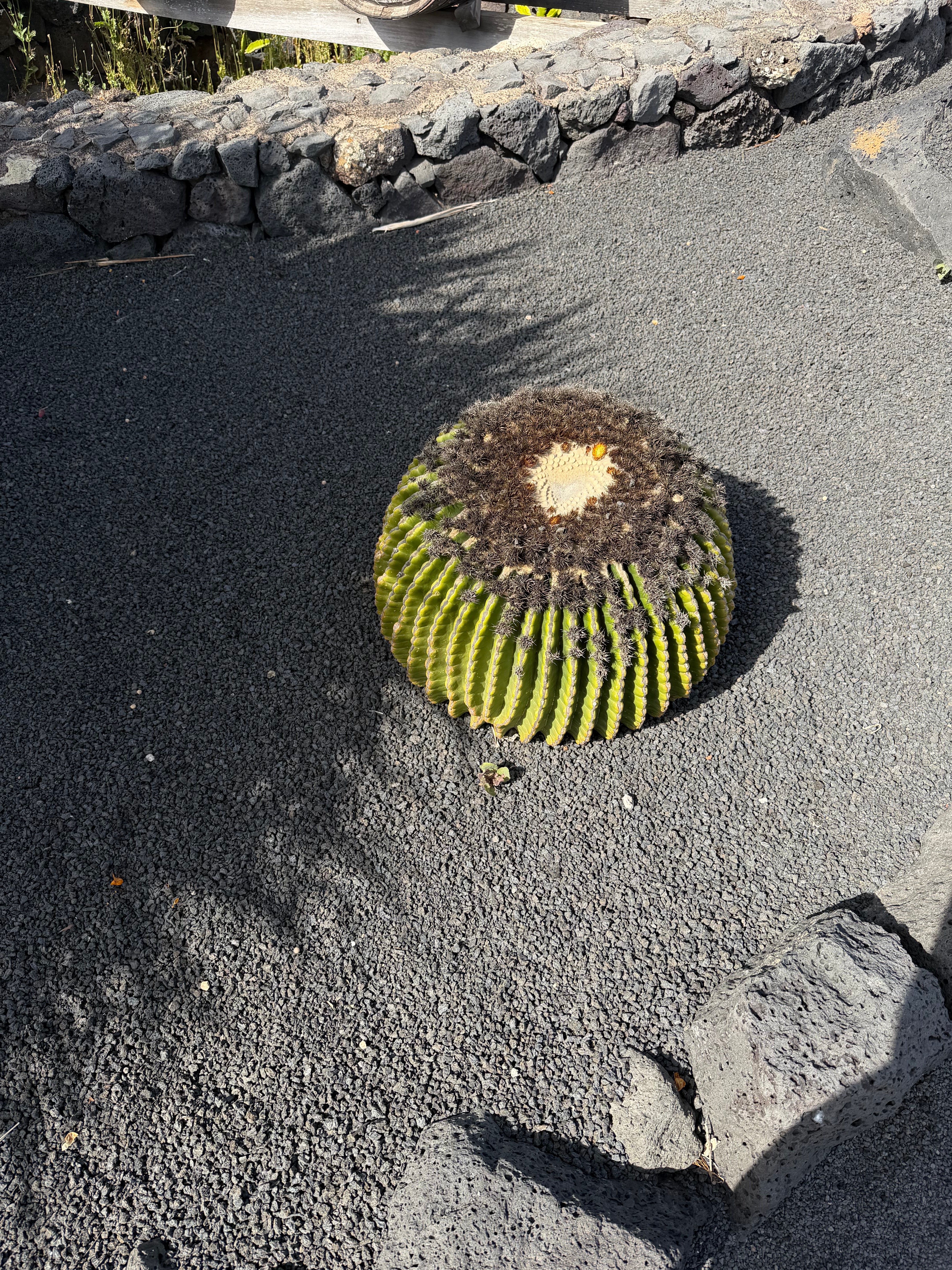 Nous redescendons et décidons de nous arrêter au Jardin des Cactus … malheureusement en période de fêtes les horaires subissent des changements que même Google ne connait pas … Lanzarote outre ses paysages volcaniques est aussi l’île aux cactus .