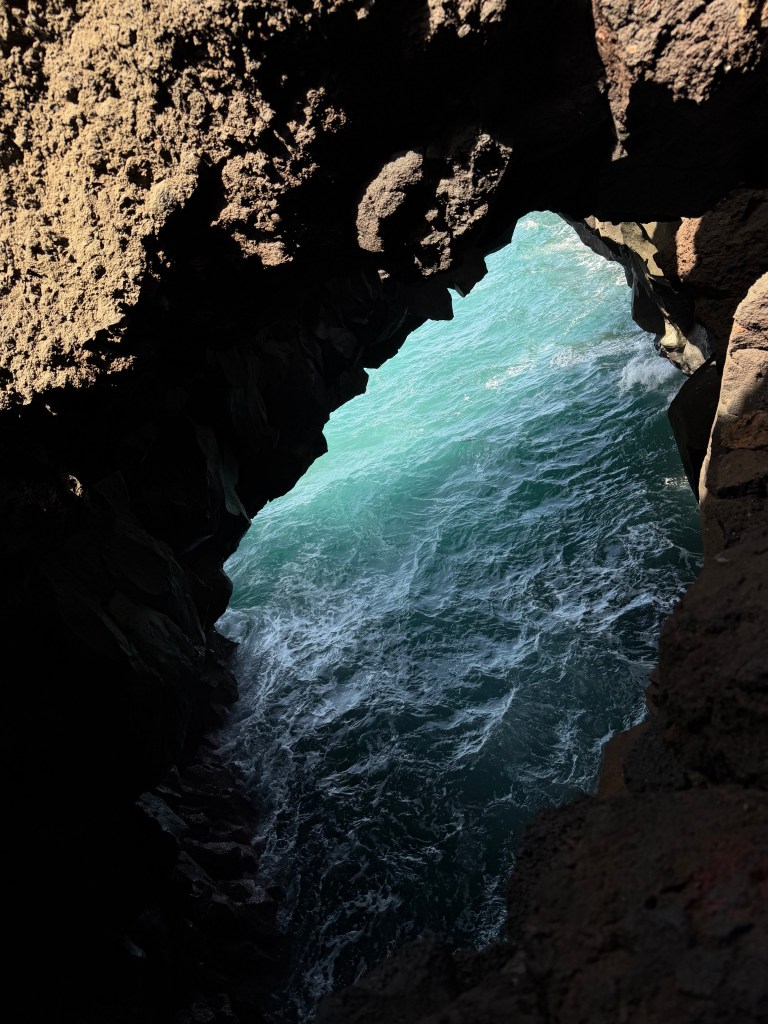 La couleur verte distinctive de l’eau provient de la présence de microalgues qui prospèrent dans cet environnement particulier. Ces algues, combinées à la composition chimique de l’eau, produisent cette teinte émeraude unique. La couleur est d’autant plus frappante au soleil, et le contraste avec le noir de la lave environnante rend le site absolument spectaculaire.
