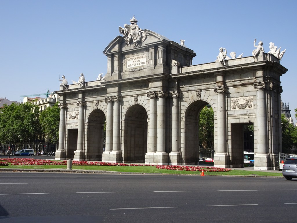 Plaza de la Independencia, avec sa porte d’Alcala en son centre, vous la trouverez au nord ouest du parc Retiro, le poumon vert de Madrid, un lieu paisible où vous trouverez un lac, de magnifiques bâtiments et statues.